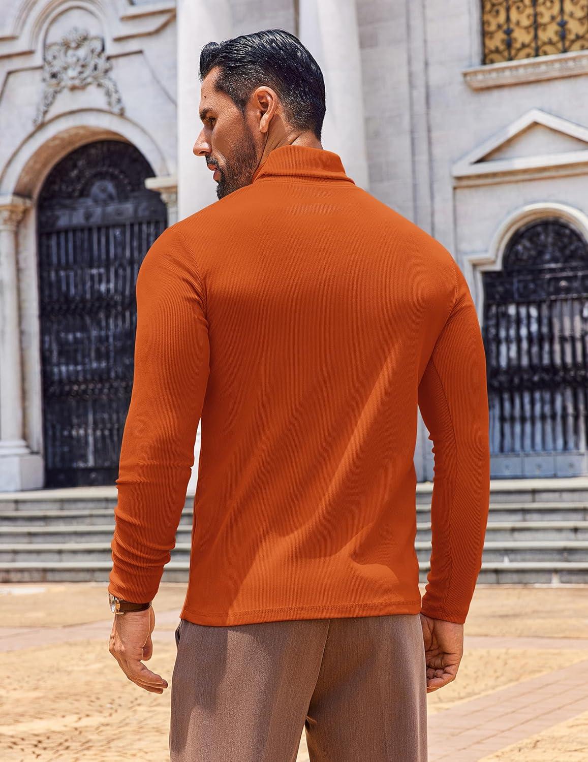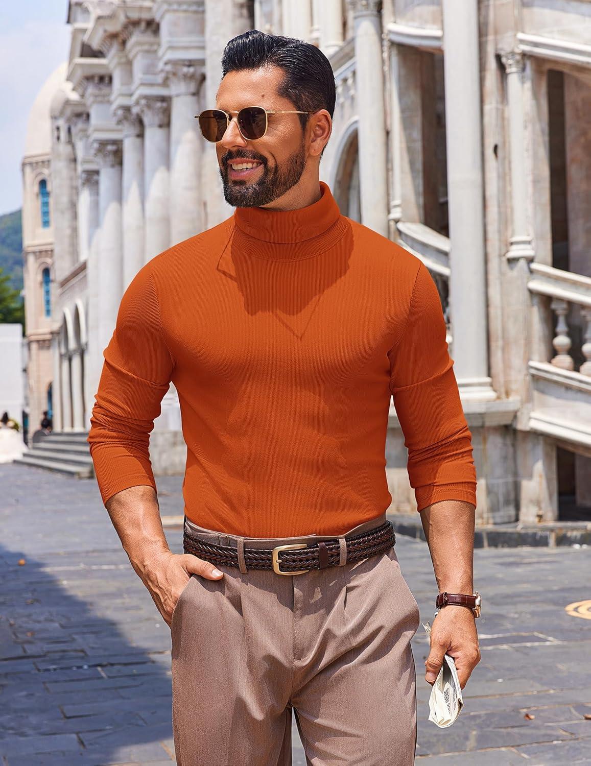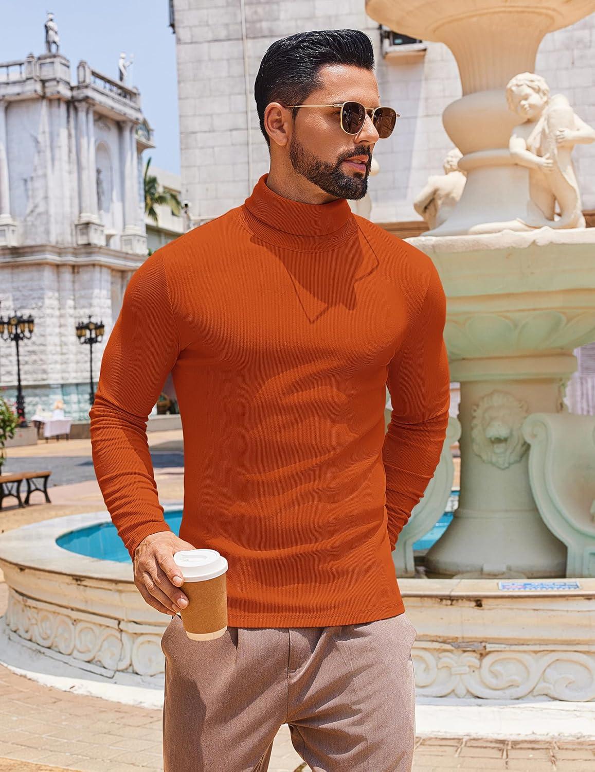 COOFANDY Men's Slim Fit Turtleneck Sweater Long Sleeve Ribbed Turtle Neck Casual Lightweight Basic Pullover Sweaters(Brown)