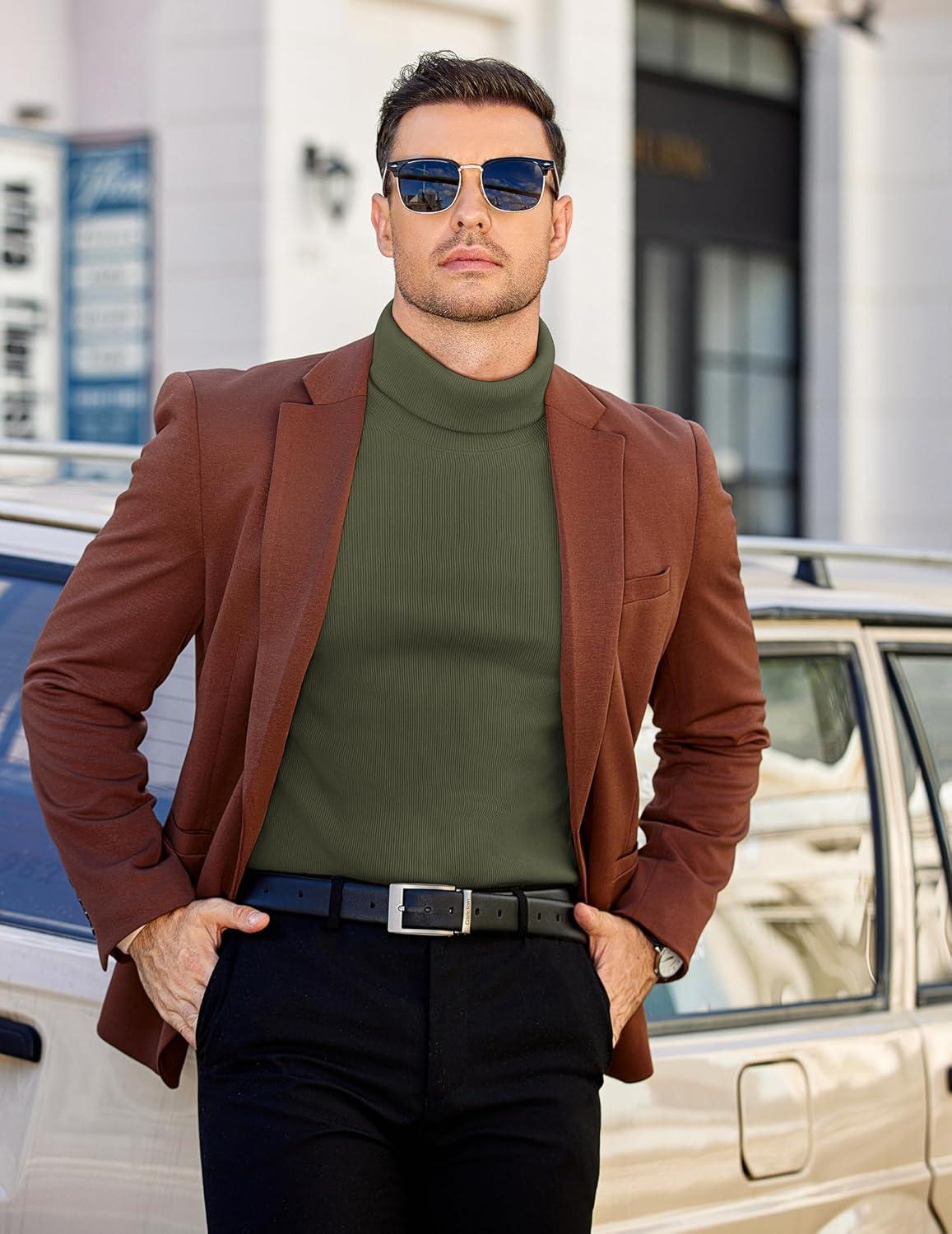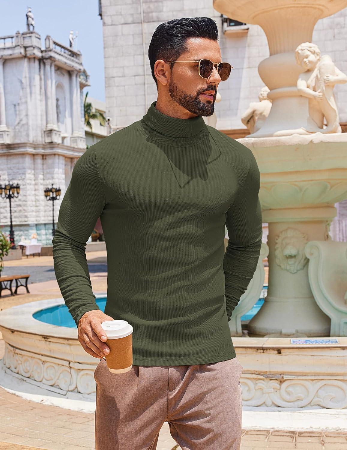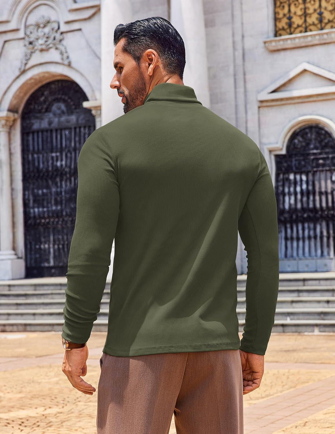 COOFANDY Men's Slim Fit Turtleneck Sweater Long Sleeve Ribbed Turtle Neck Casual Lightweight Basic Pullover Sweaters(Dark Army Green)