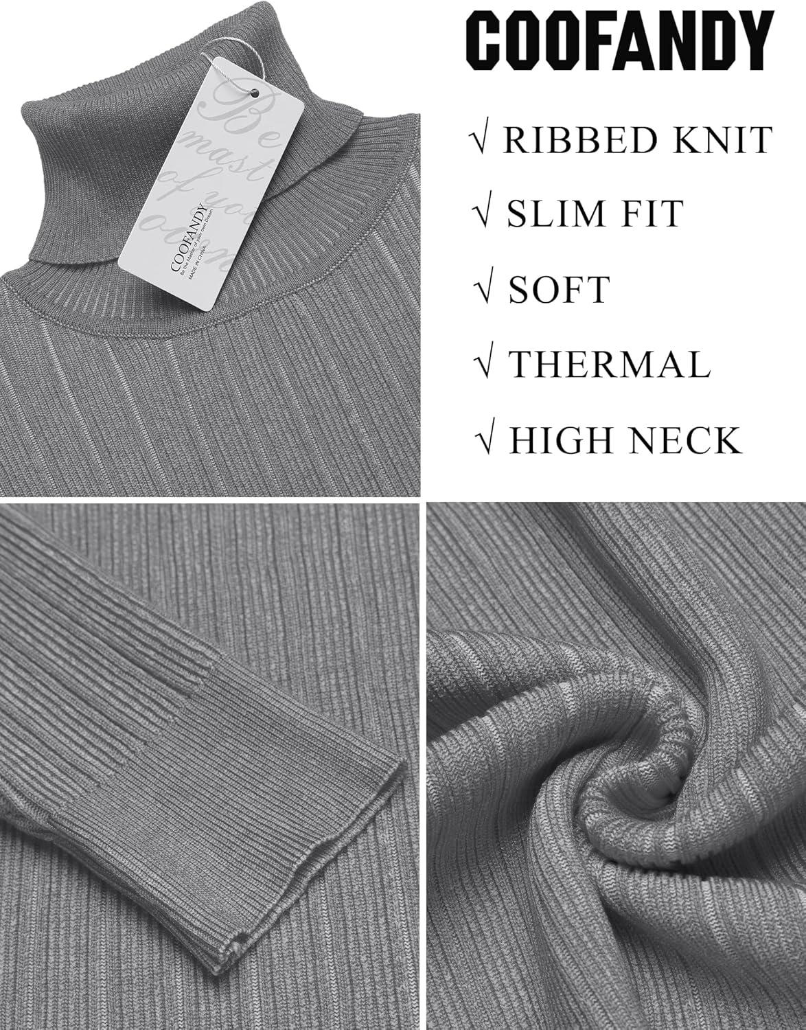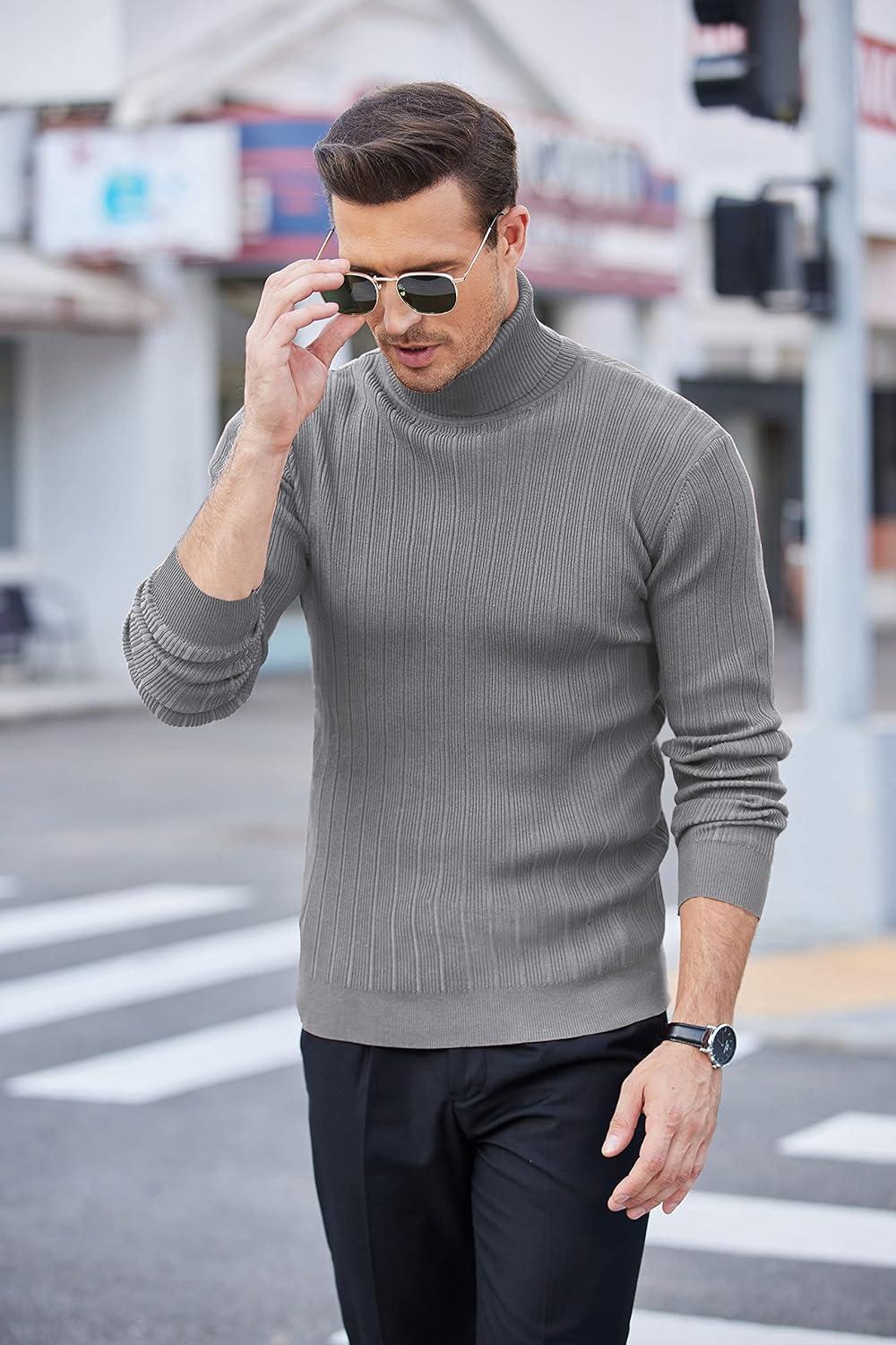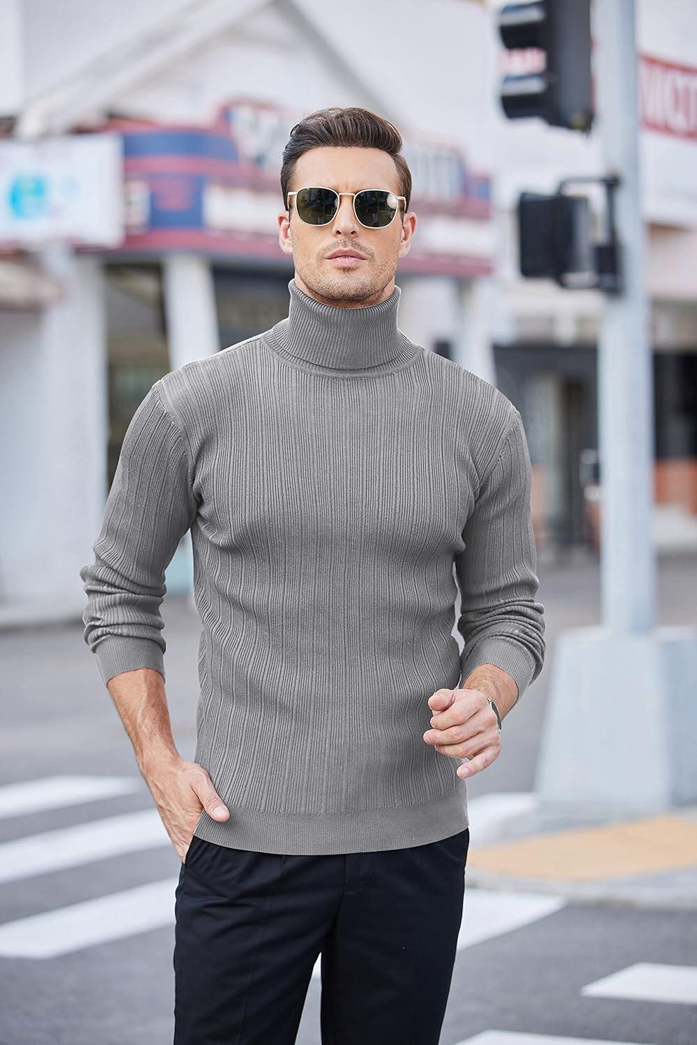 COOFANDY Men's Slim Fit Turtleneck Sweater Ribbed Knitted High Neck Pullover Sweaters(Gray)