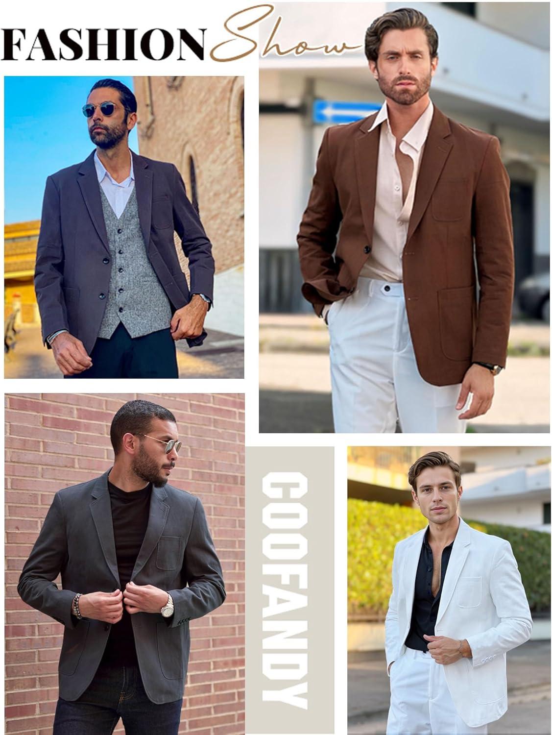 imageCOOFANDY Mens Smart Wash Blazer Regular Fit Cotton Sport Coat Casual Suit JacketBlue