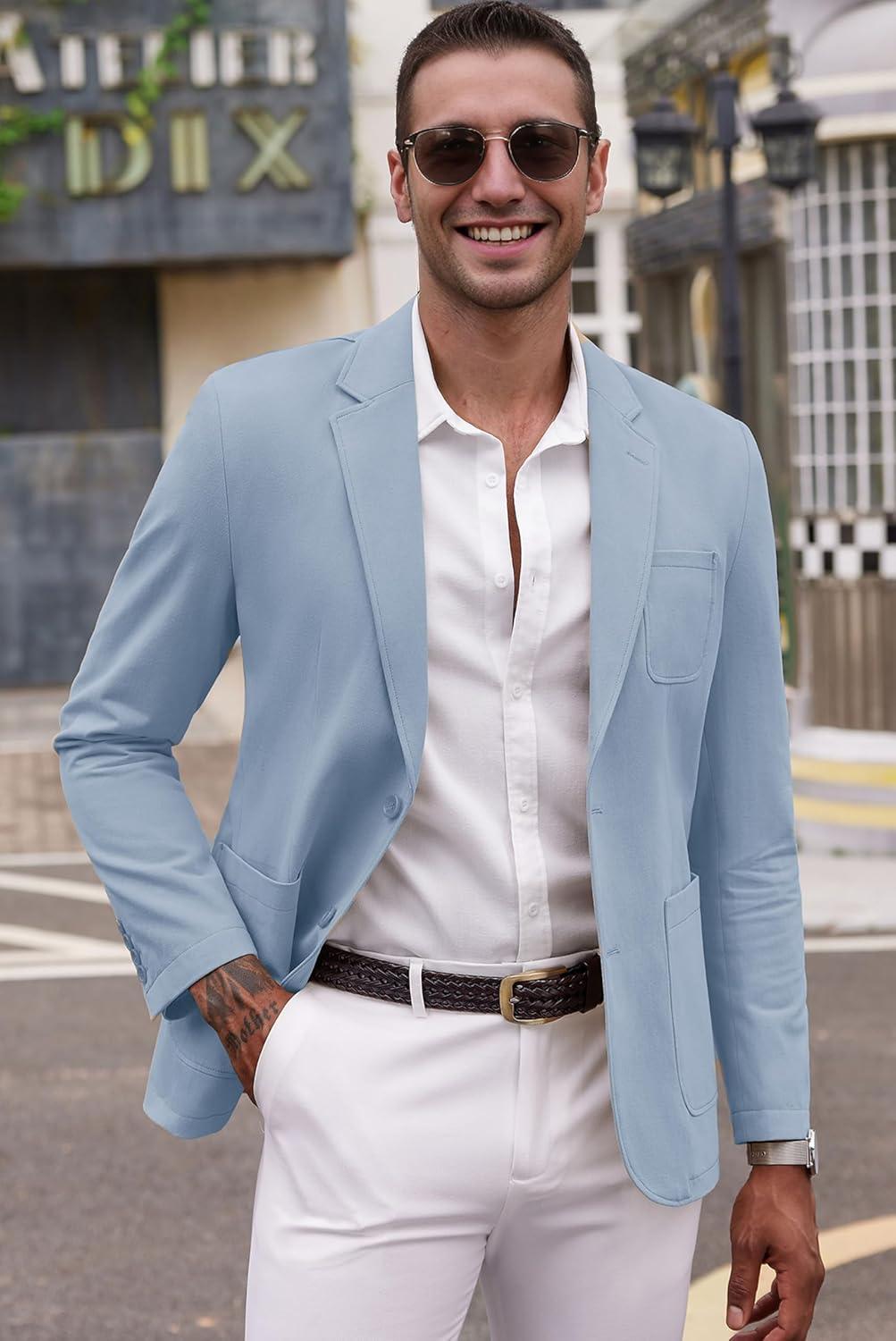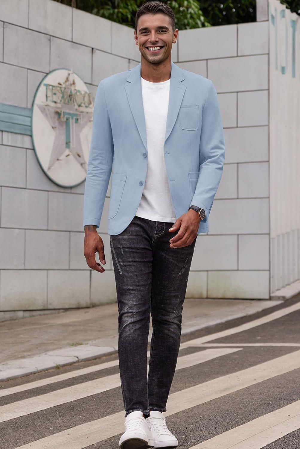 COOFANDY Men's Smart Wash Blazer Regular Fit Cotton Sport Coat Casual Suit Jacket(Blue)
