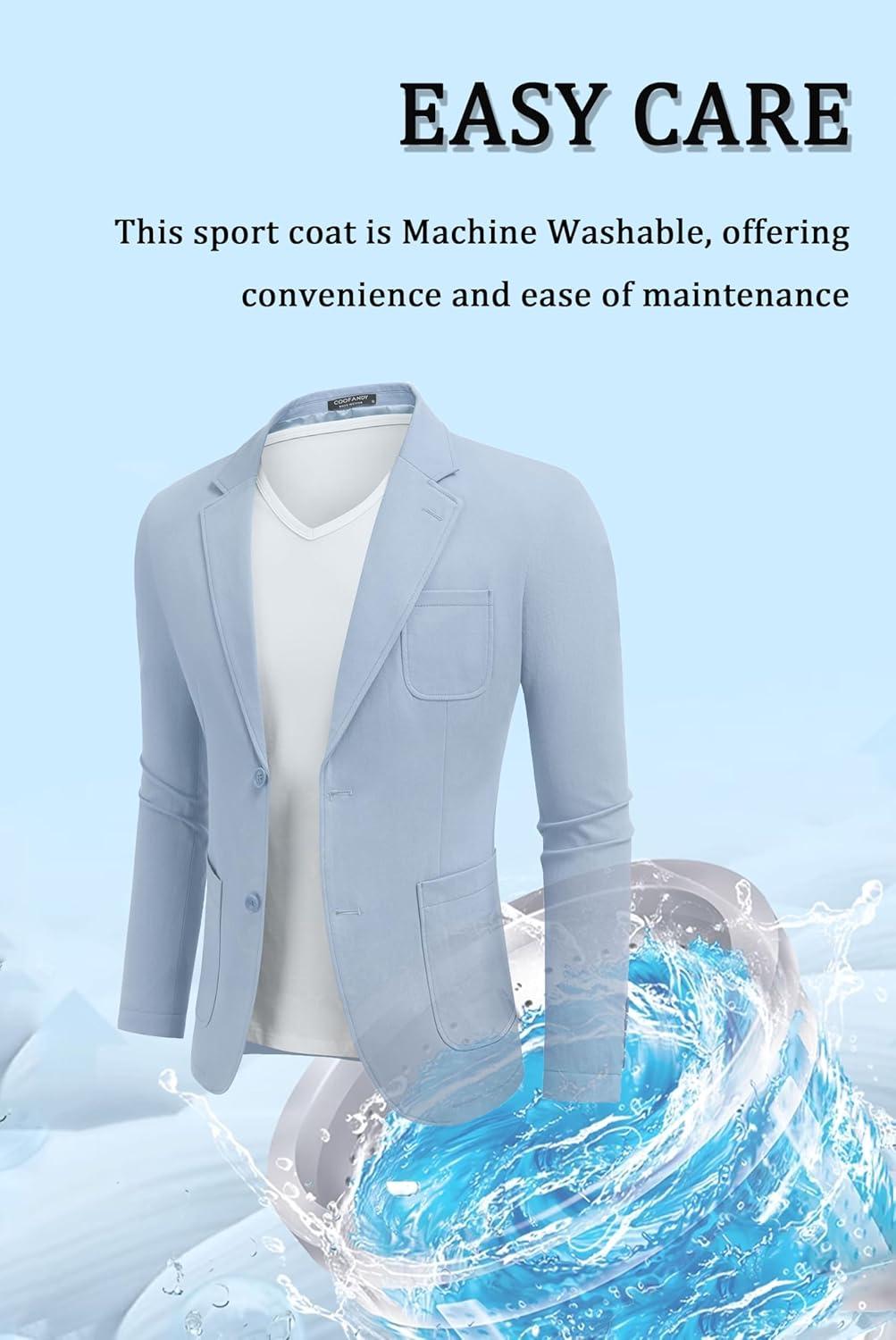 COOFANDY Men’s Smart Wash Blazer Regular Fit Cotton Sport Coat Casual Suit Jacket(Blue)