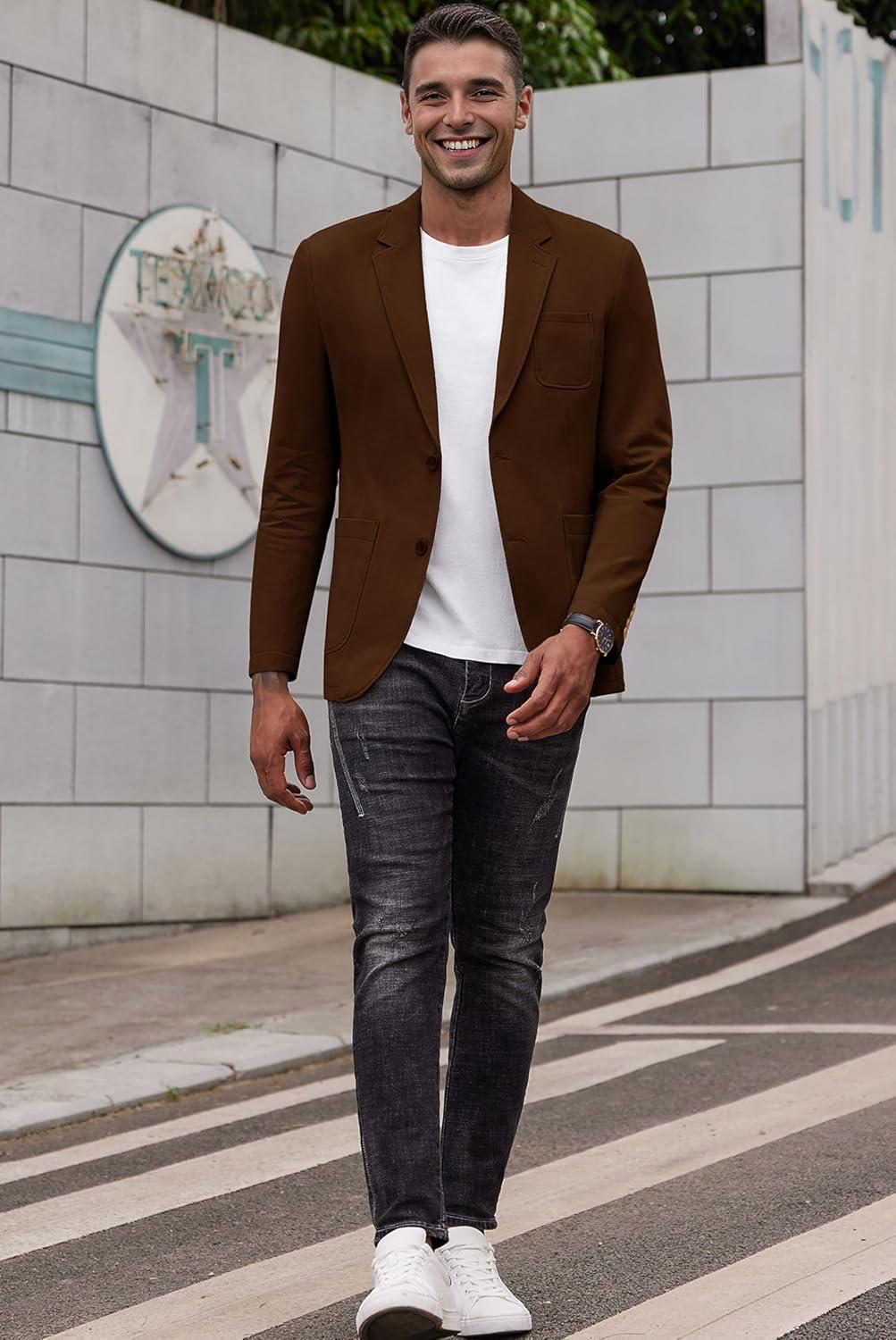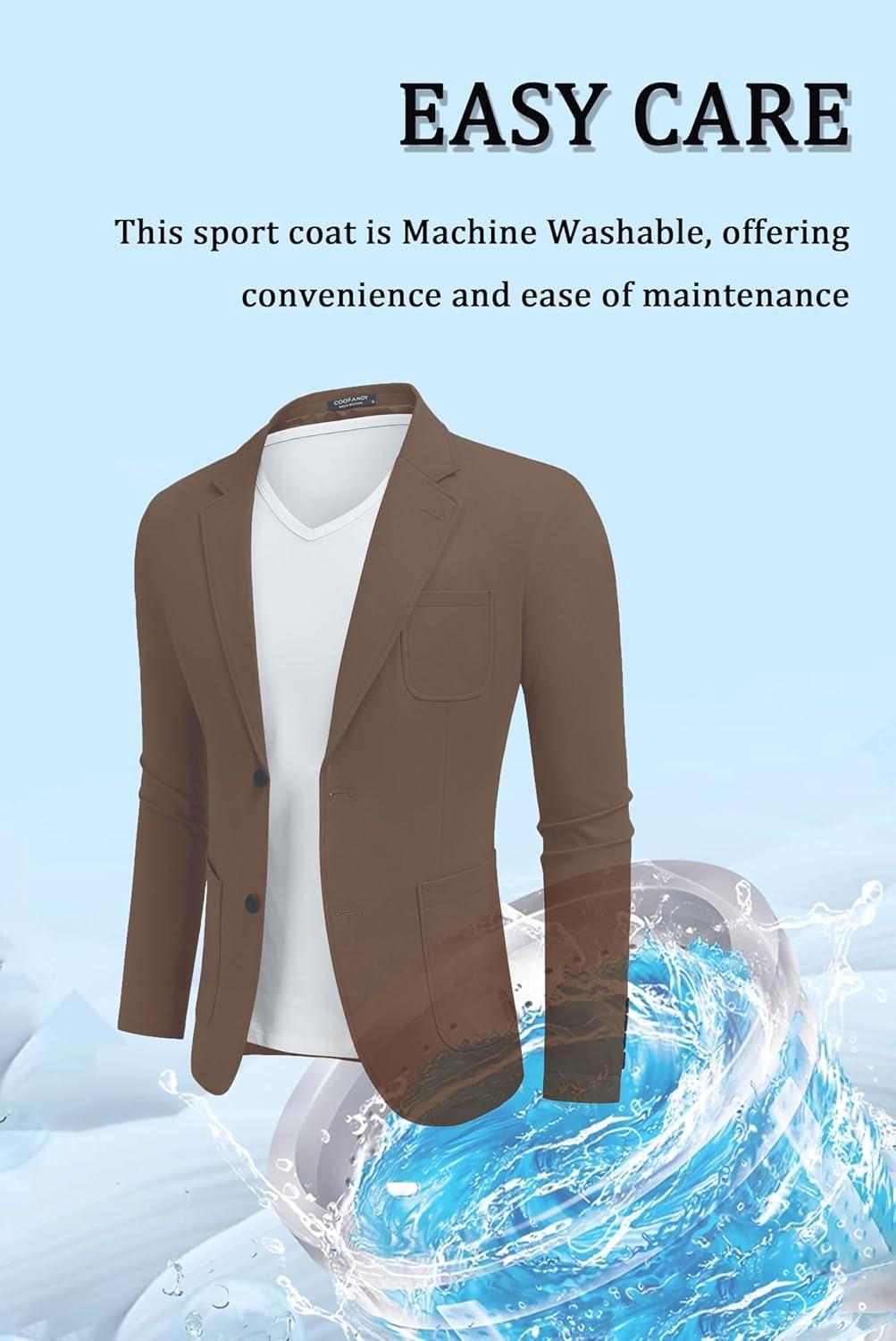 COOFANDY Men's Smart Wash Blazer Regular Fit Cotton Sport Coat Casual Suit Jacket(Brown)