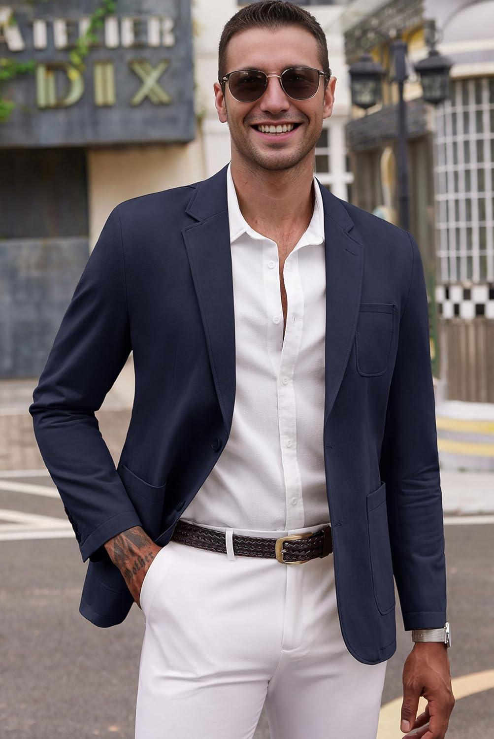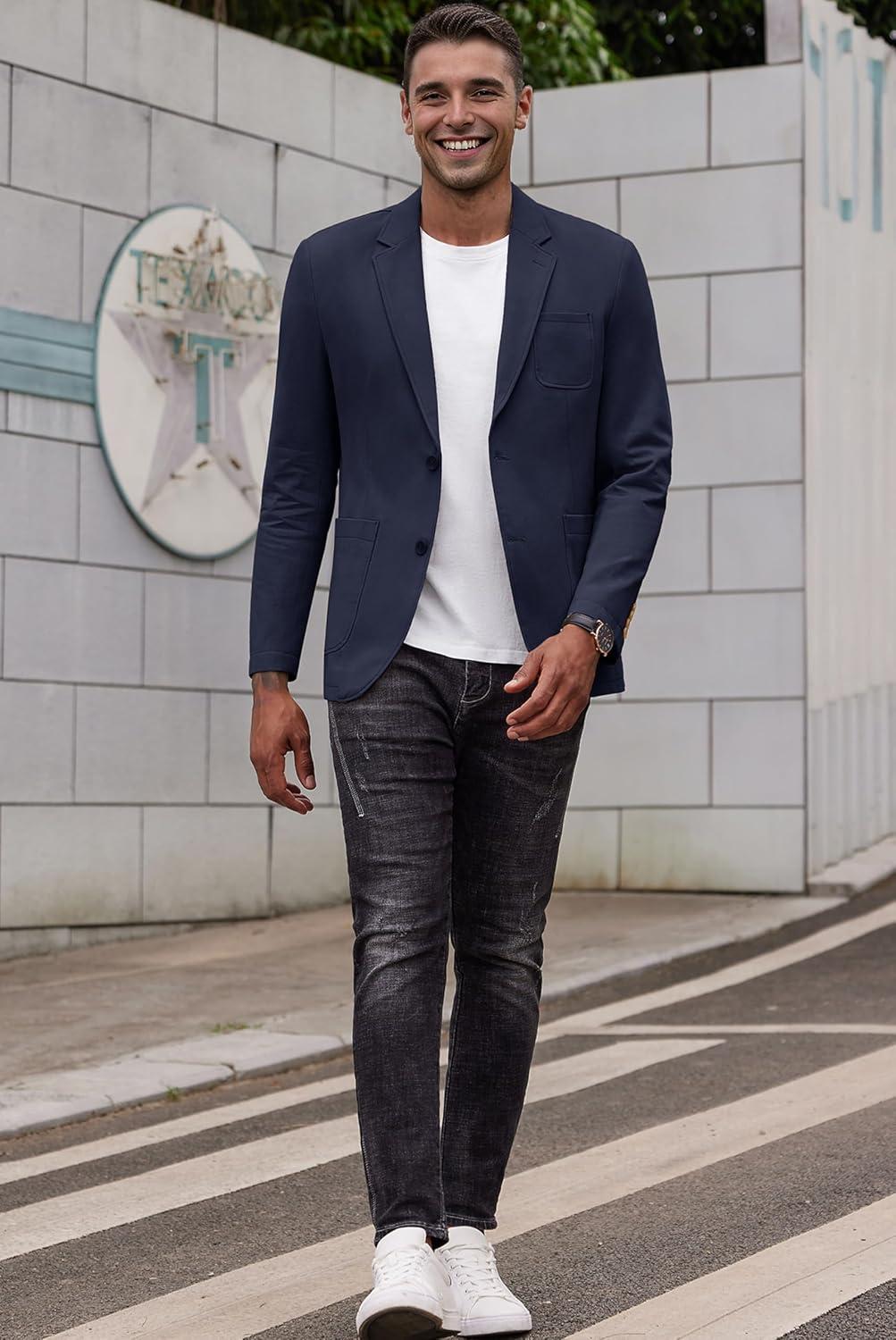 COOFANDY Men's Smart Wash Blazer Regular Fit Cotton Sport Coat Casual Suit Jacket(Navy Blue)