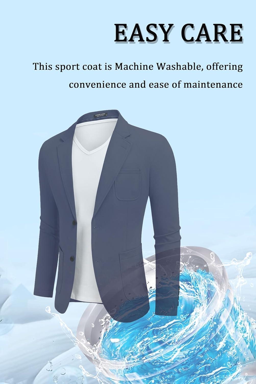 COOFANDY Men’s Smart Wash Blazer Regular Fit Cotton Sport Coat Casual Suit Jacket(Blue)