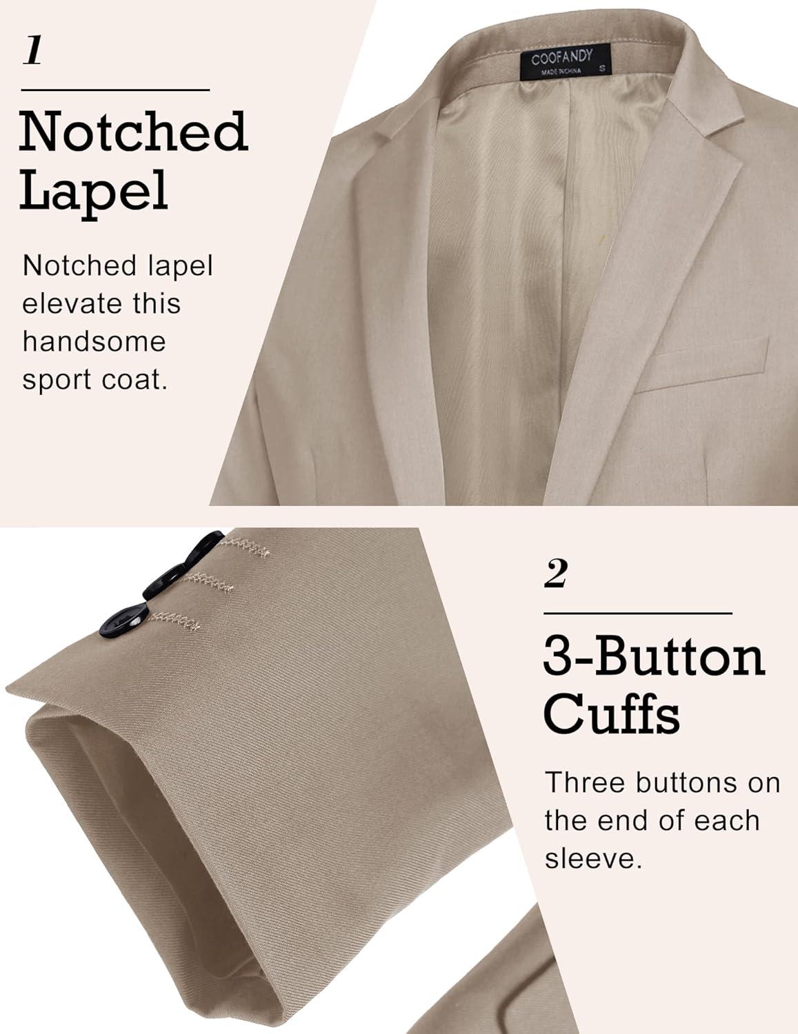 COOFANDY Mens Sport Coat Casual Blazer One Button Business Suit Jacket(Khaki)