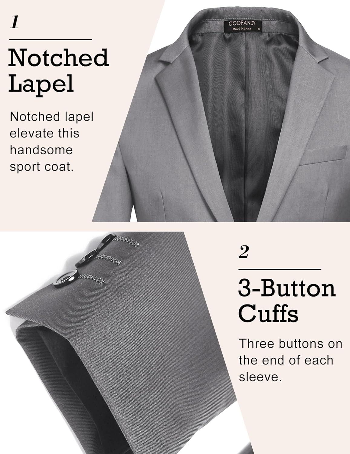 COOFANDY Mens Sport Coat Casual Blazer One Button Business Suit Jacket(Light Grey)