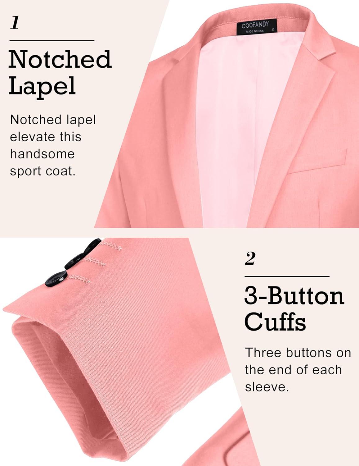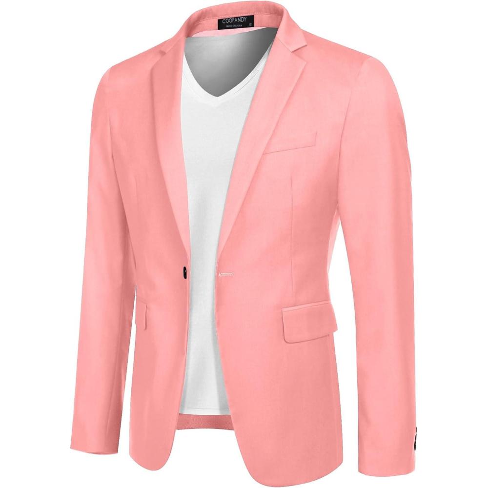 COOFANDY Mens Sport Coat Casual Blazer One Button Business Suit Jacket(Pink)
