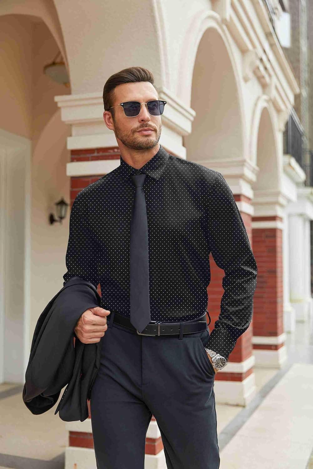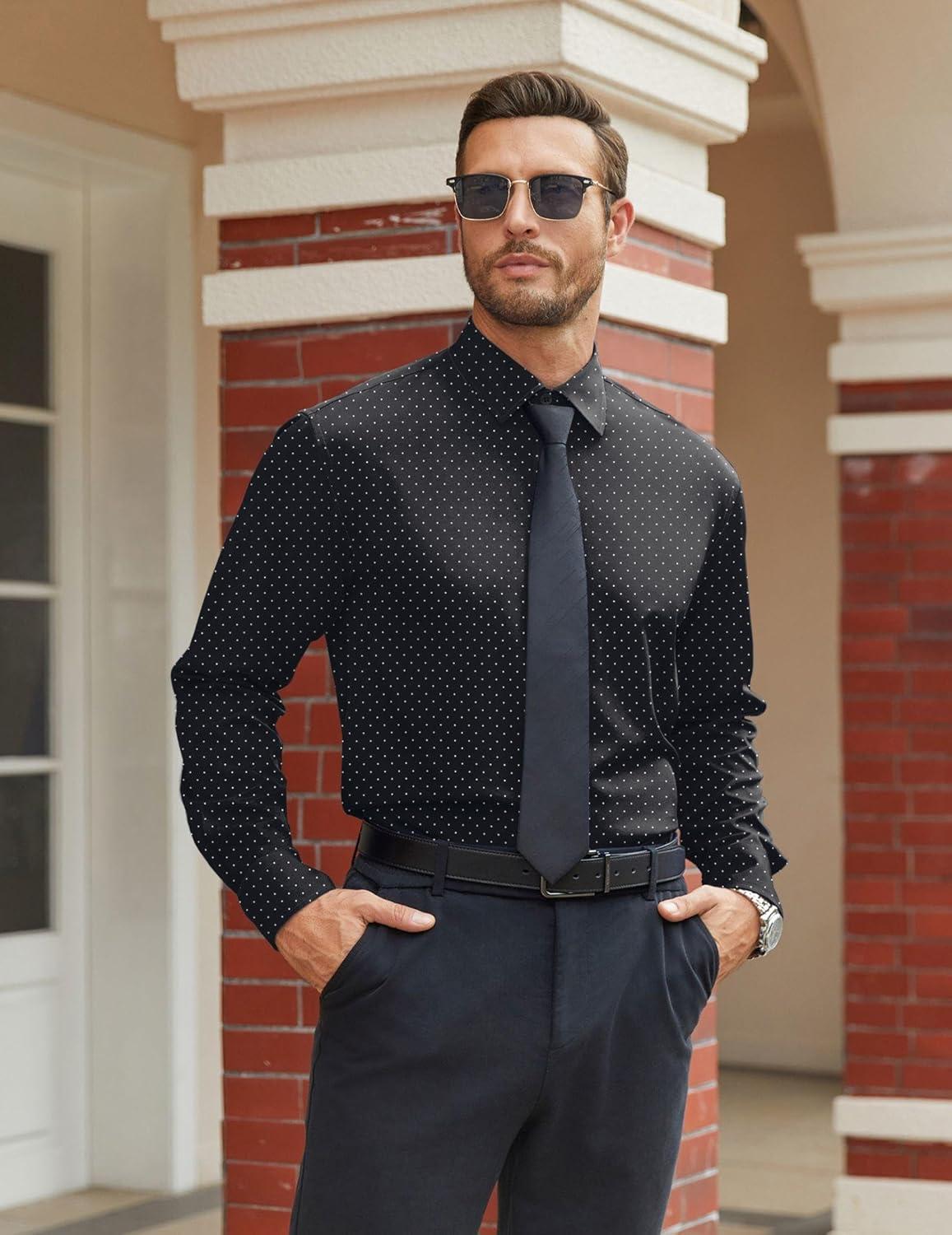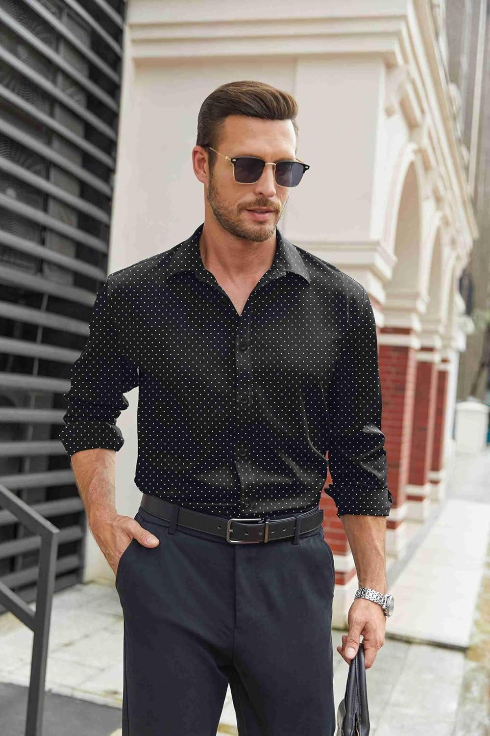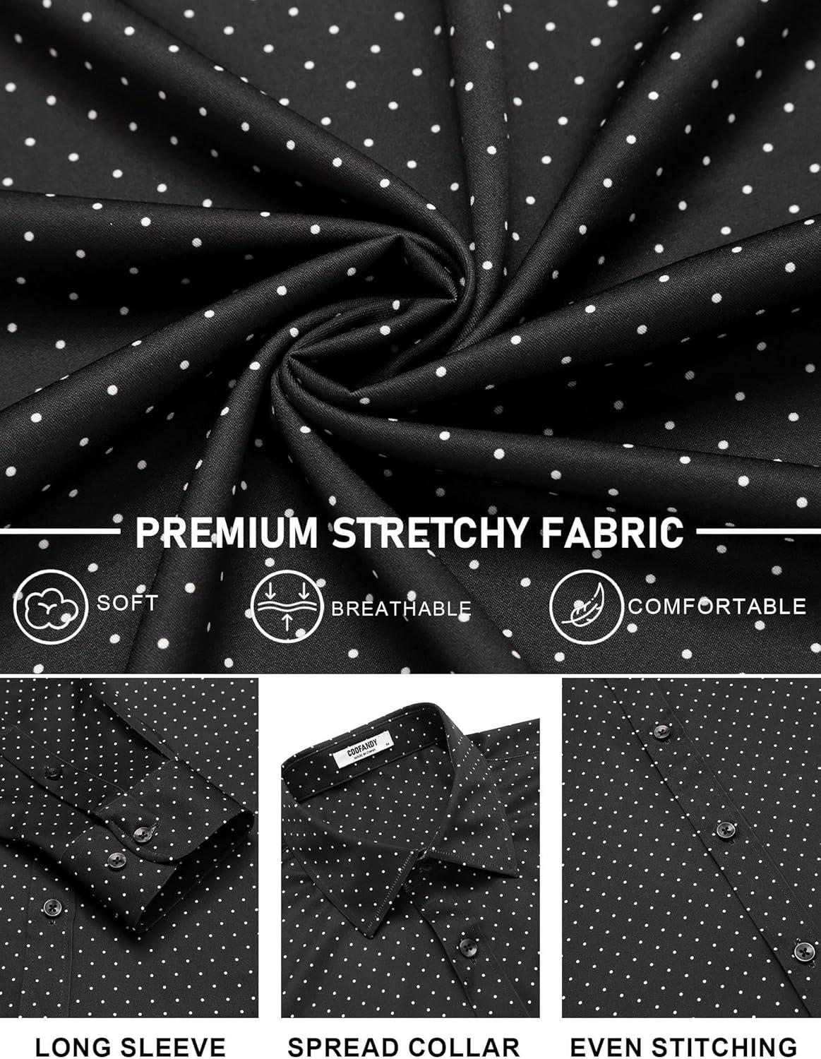 COOFANDY Mens Stretch Dress Shirts Long Sleeve Button Down Shirt Regular Fit Formal Business Shirts(Black-polka Dots)
