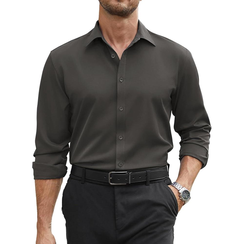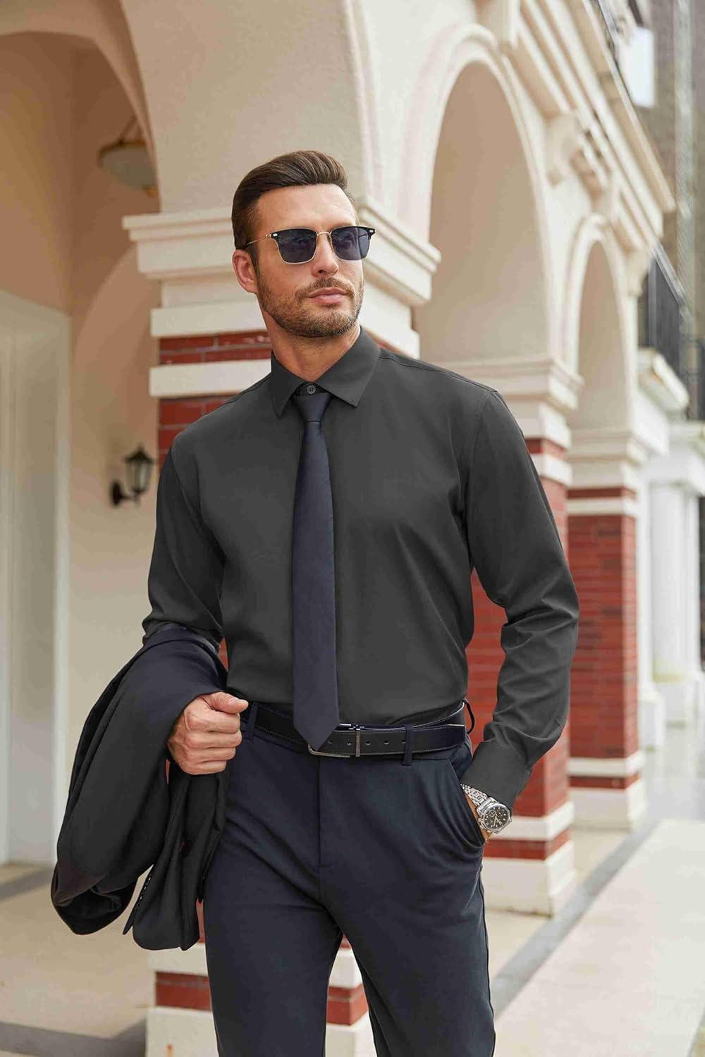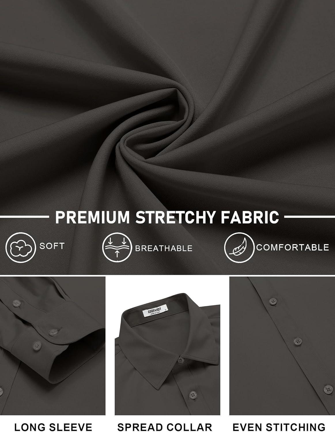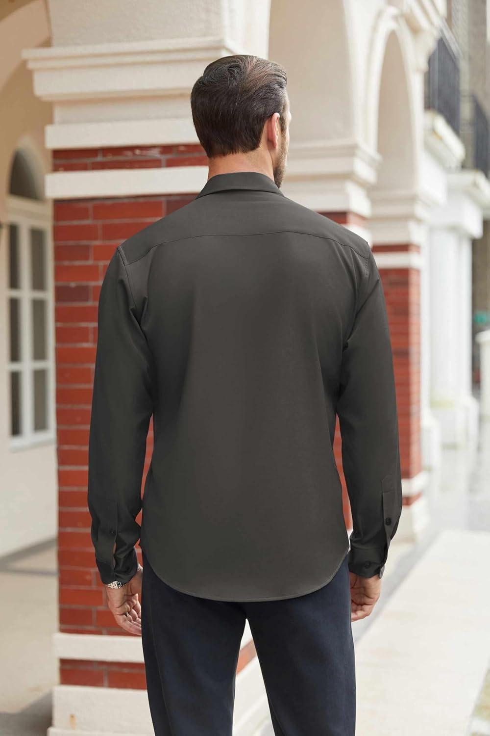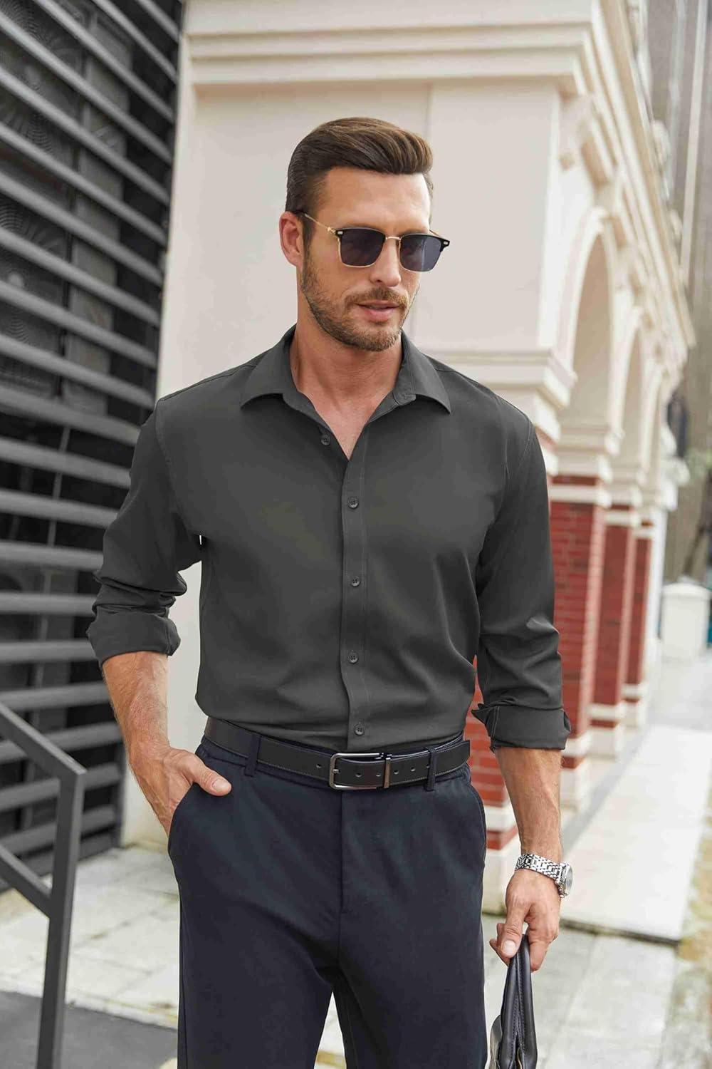 COOFANDY Mens Stretch Dress Shirts Long Sleeve Button Down Shirt Regular Fit Formal Business Shirts(Dark Grey)