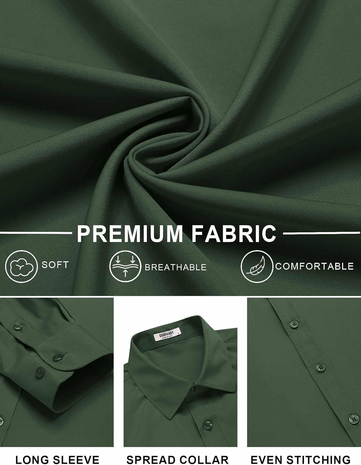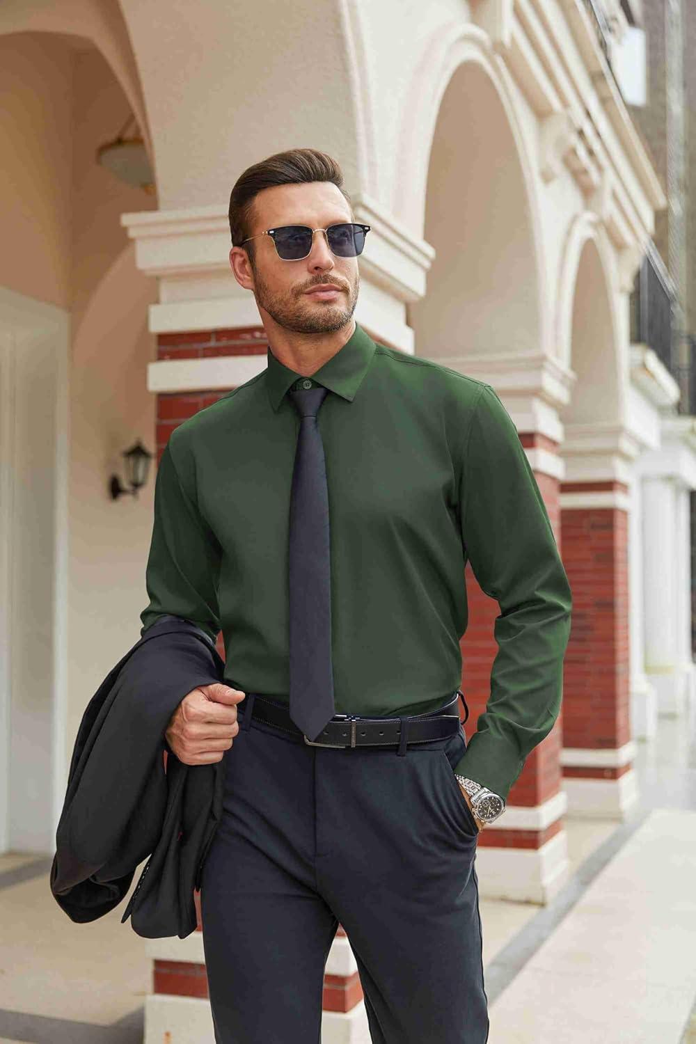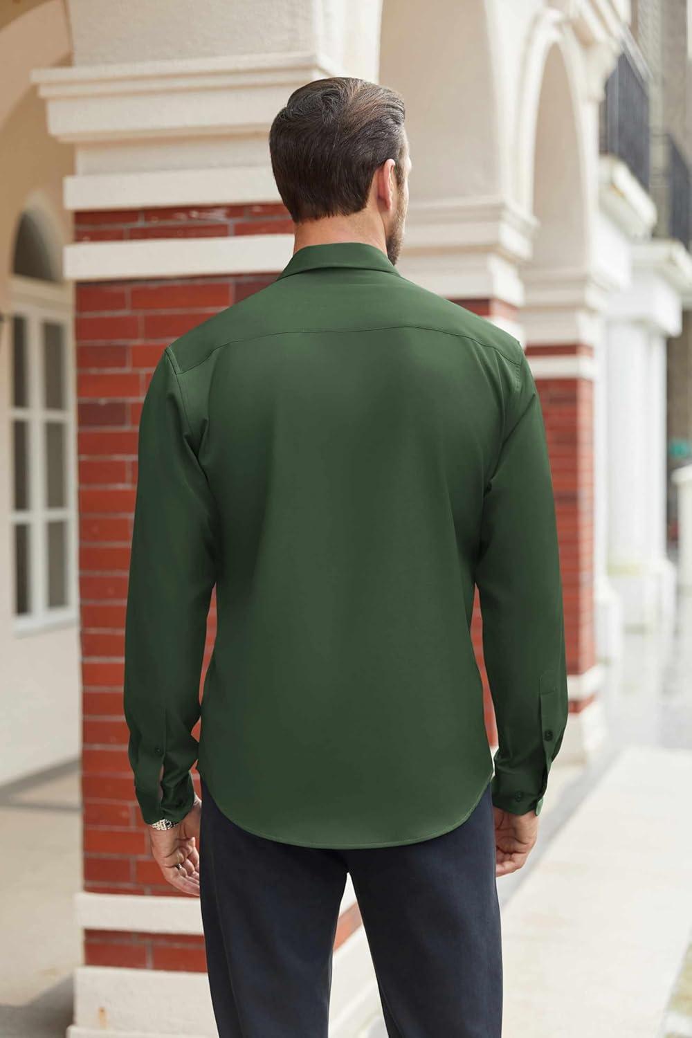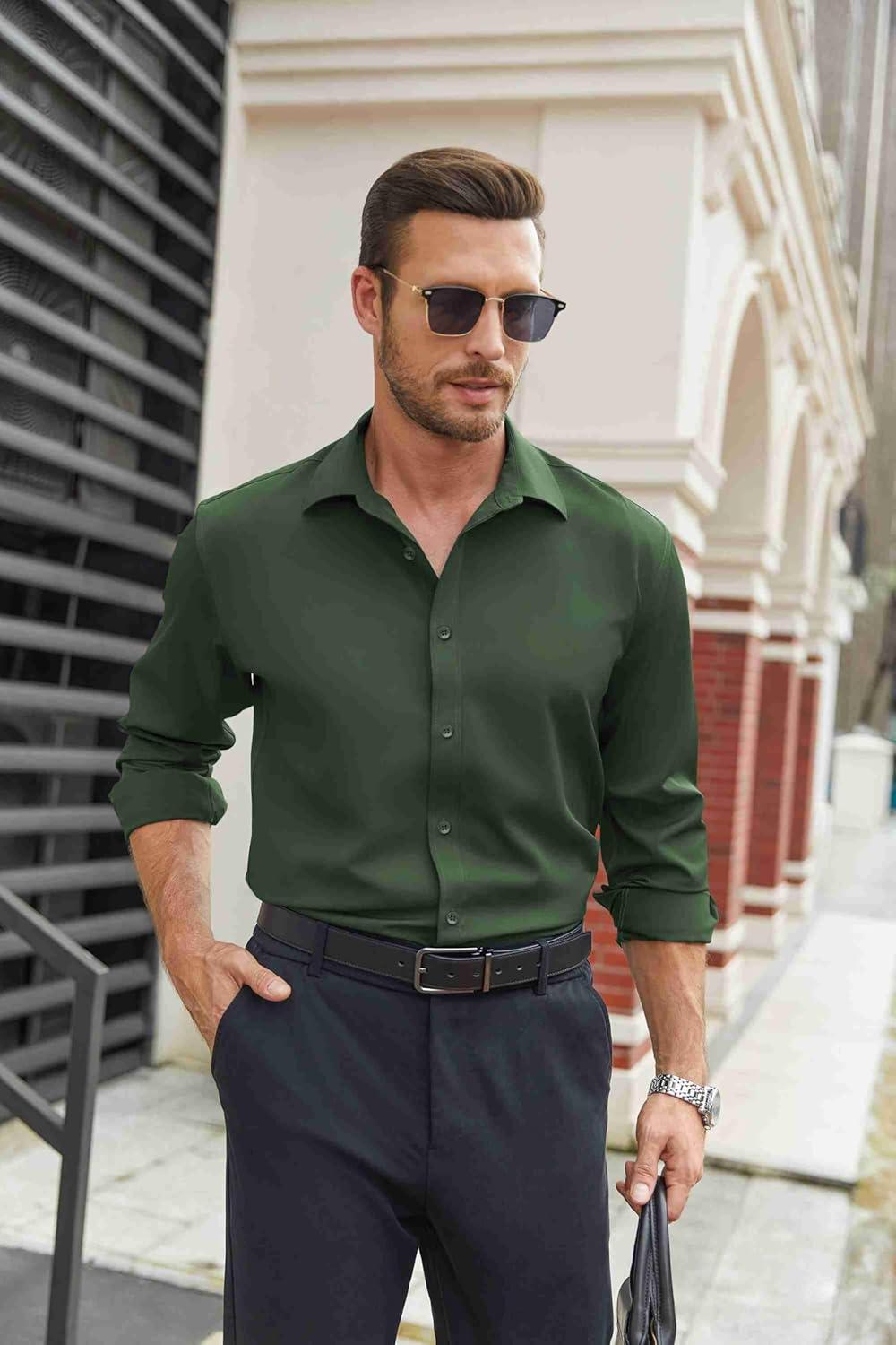 COOFANDY Mens Stretch Dress Shirts Long Sleeve Button Down Shirt Regular Fit Formal Business Shirts(Deep Green)