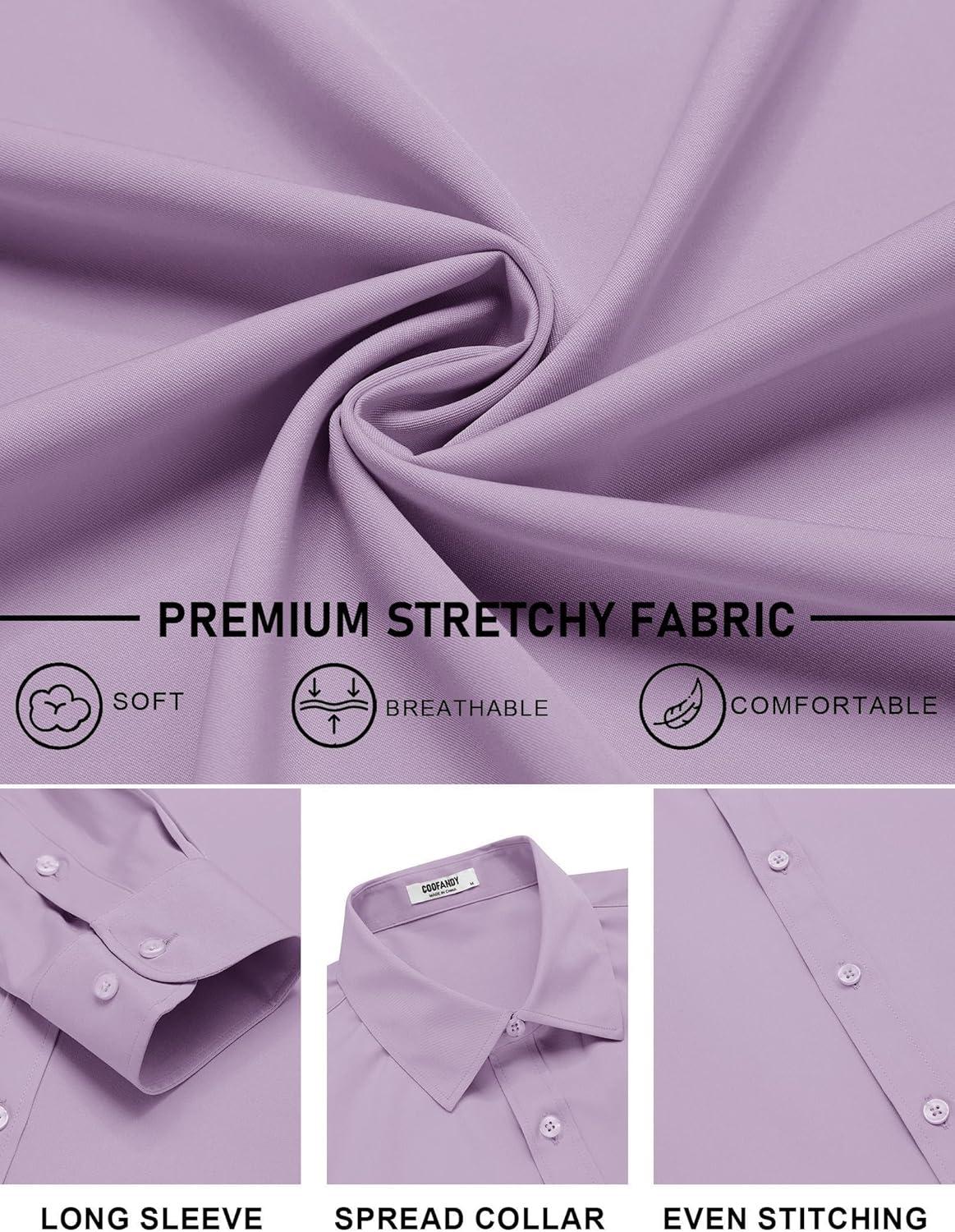COOFANDY Mens Stretch Dress Shirts Long Sleeve Button Down Shirt Regular Fit Formal Business Shirts(Lavender)