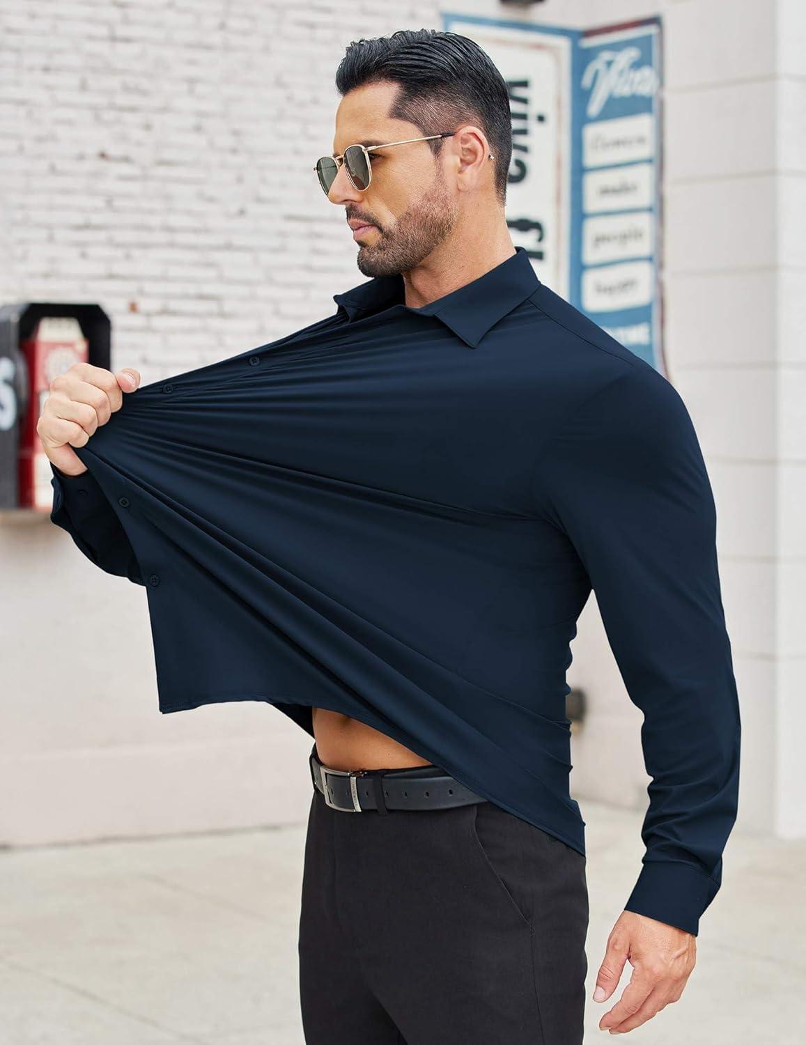 COOFANDY Mens Stretch Dress Shirts Long Sleeve Button Down Shirt Wrinkle Free Formal Business Shirts(Deep Blue)