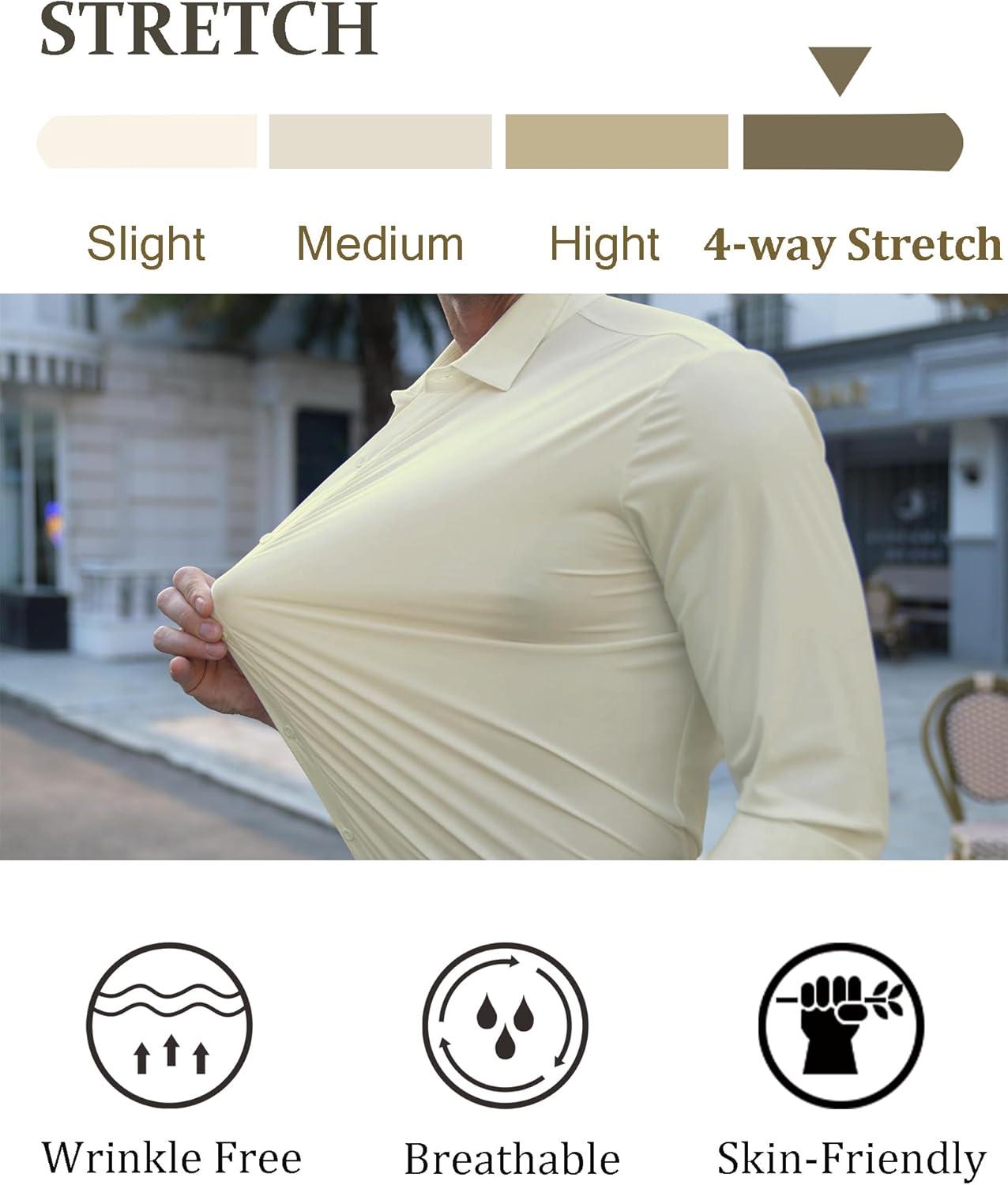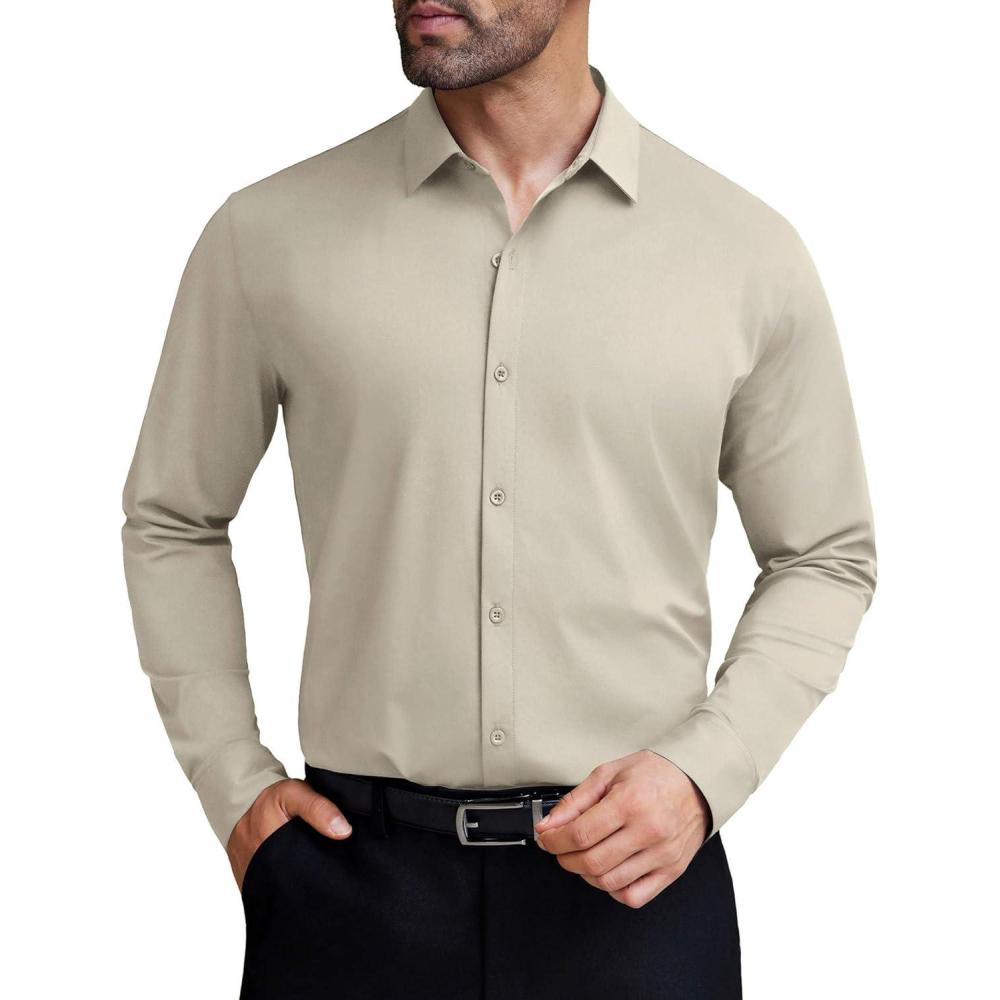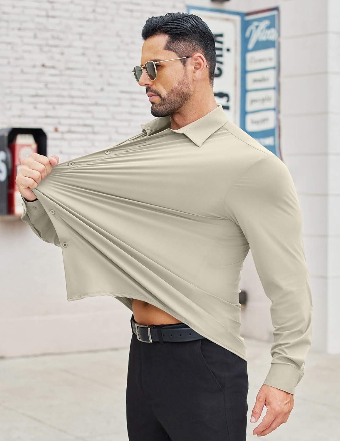COOFANDY Mens Stretch Dress Shirts Long Sleeve Button Down Shirt Wrinkle Free Formal Business Shirts(Khaki)