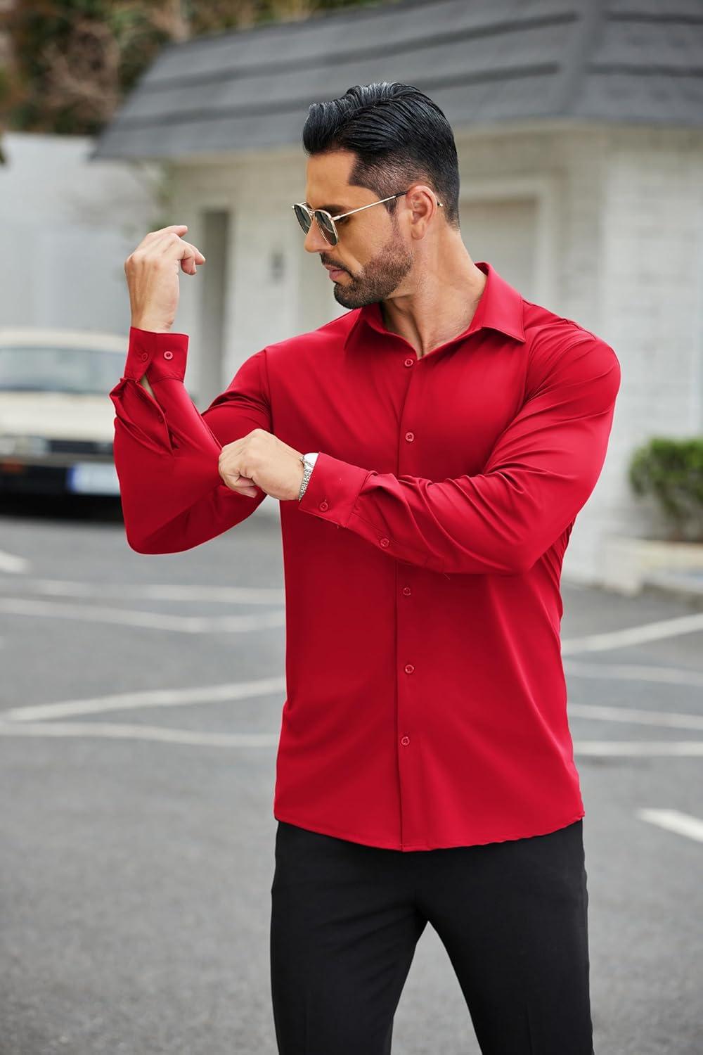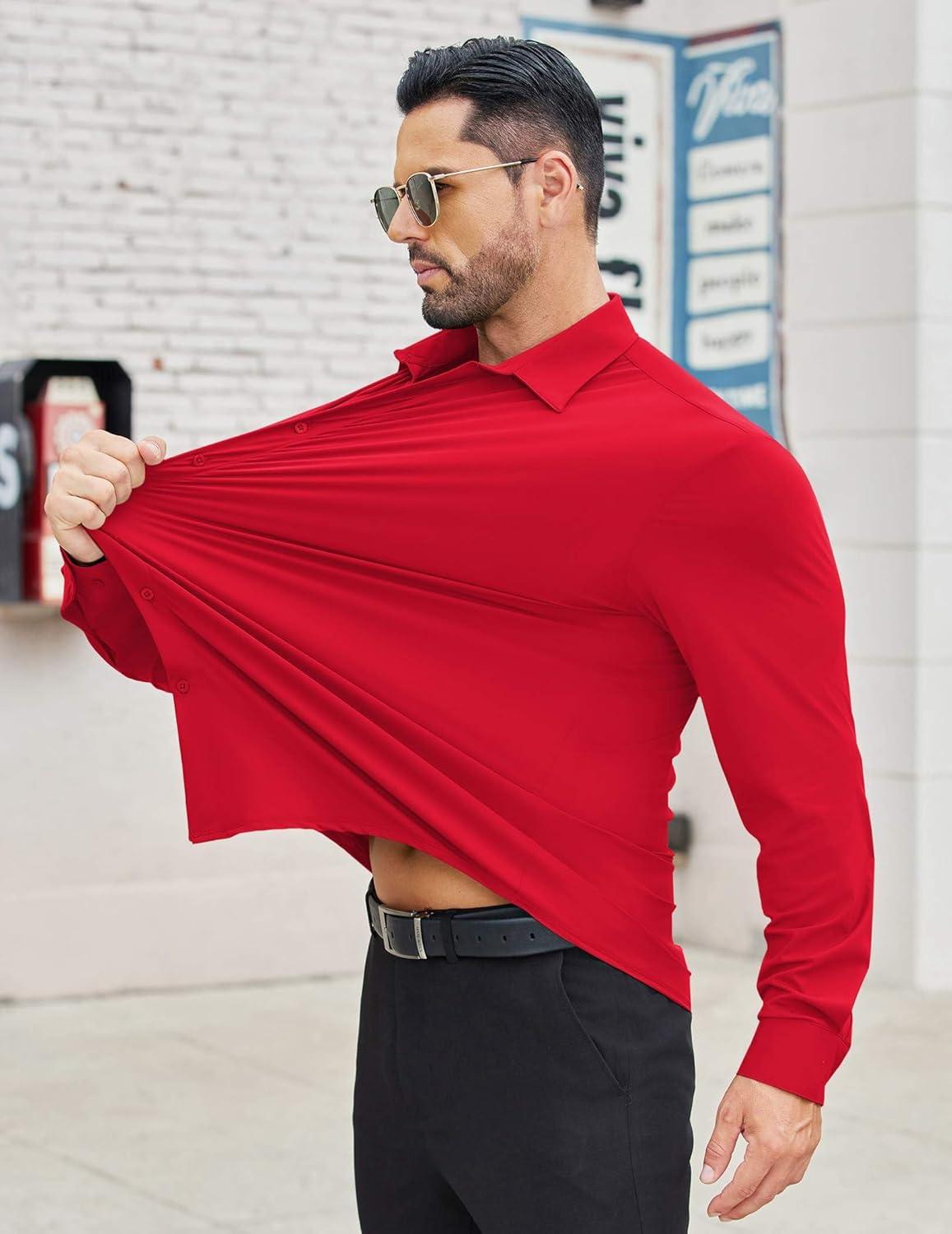 COOFANDY Mens Stretch Dress Shirts Long Sleeve Button Down Shirt Wrinkle Free Formal Business Shirts(Red)