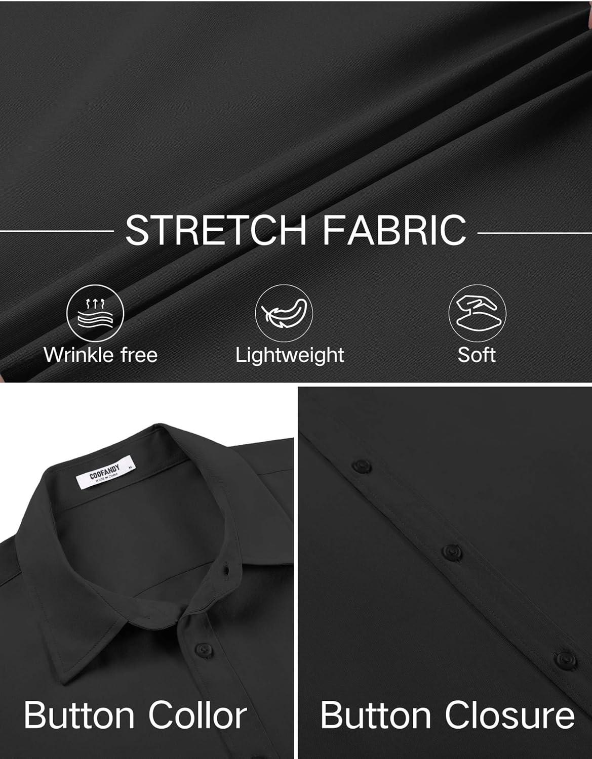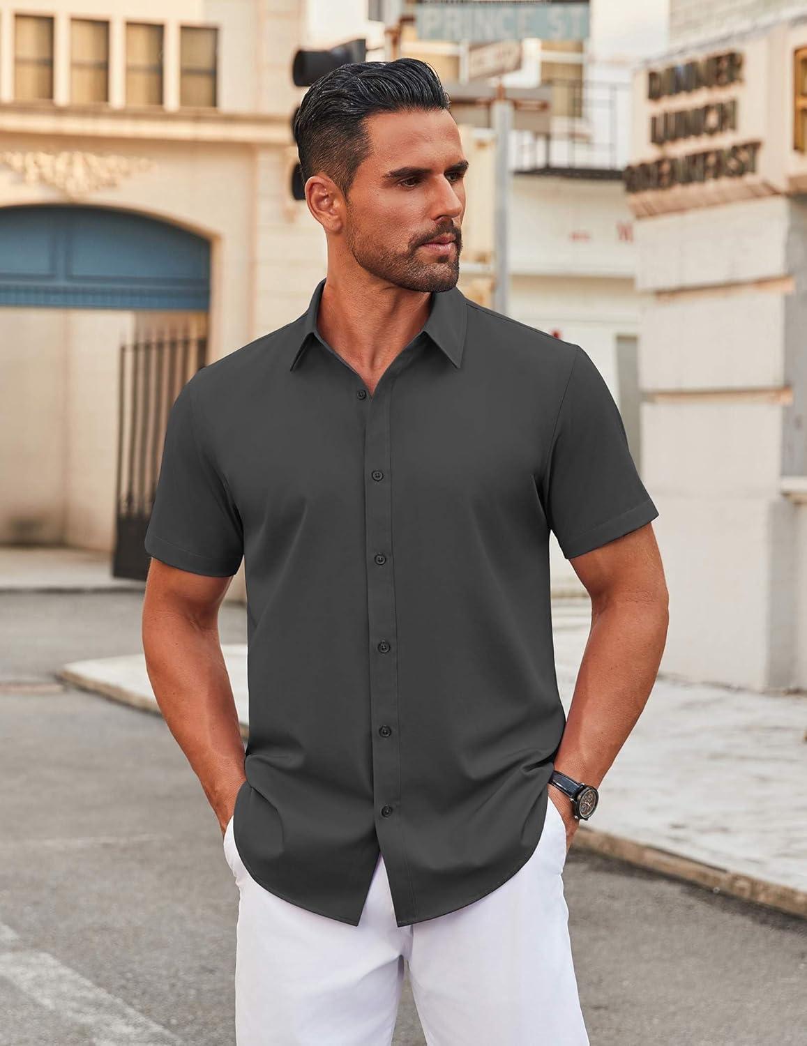 COOFANDY Men's Stretch Dress Shirts Short Sleeve Wrinkle Free Casual Button Down Shirts(Dark Grey)