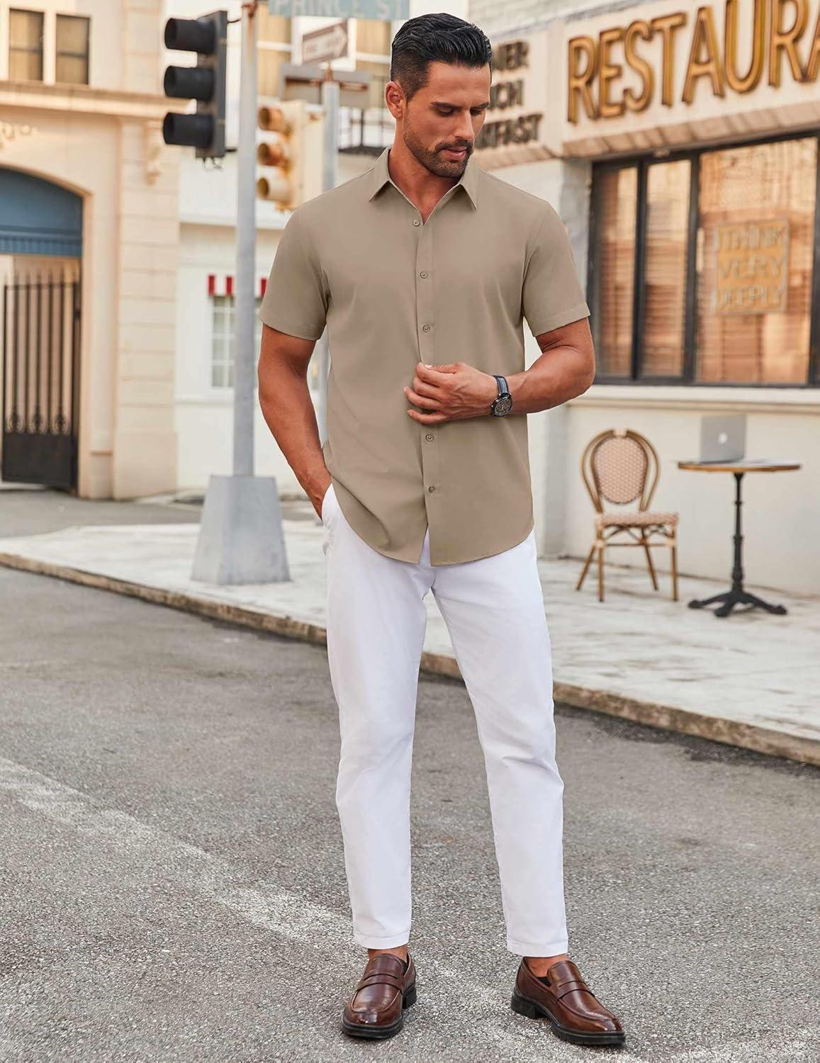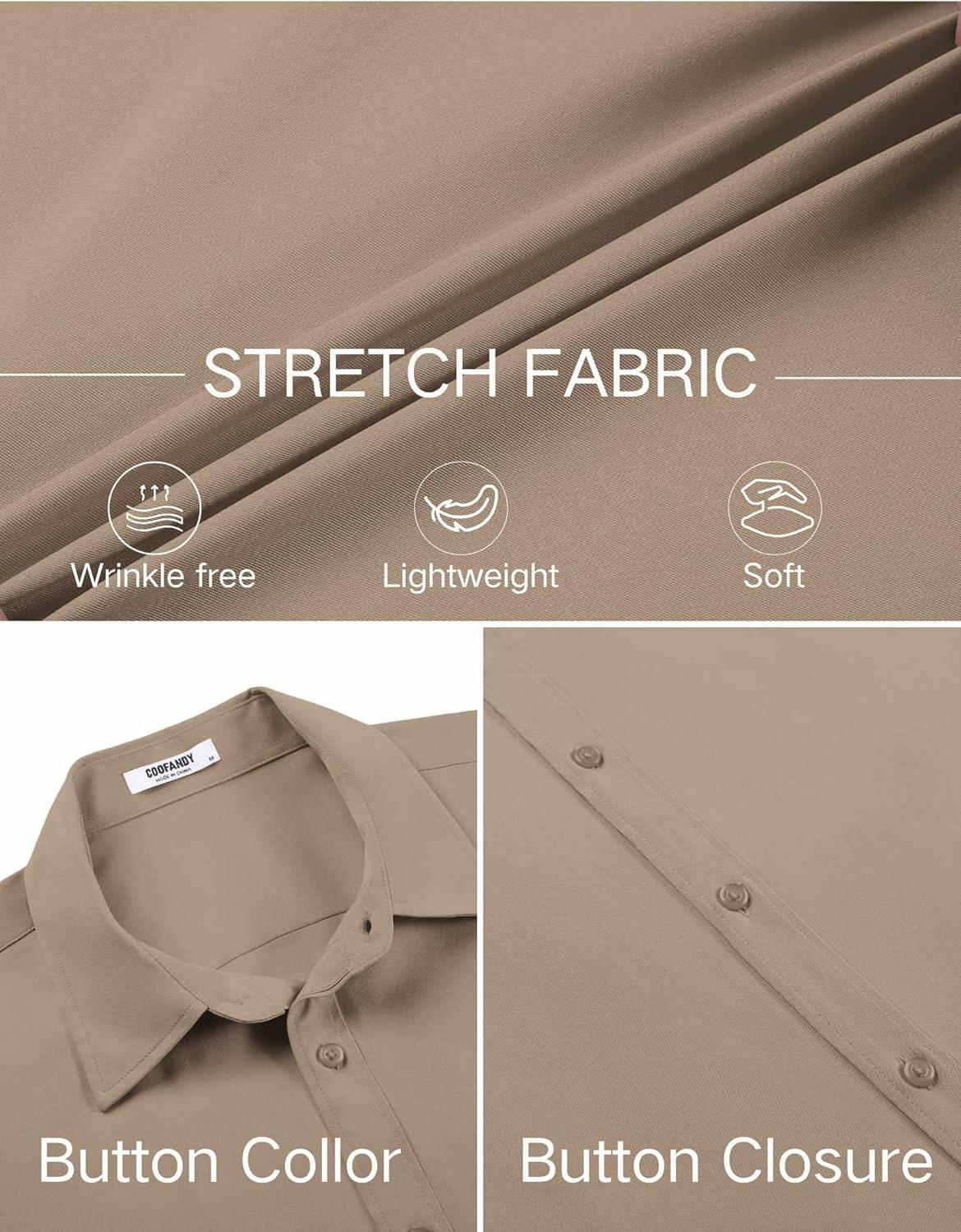 COOFANDY Men's Stretch Dress Shirts Short Sleeve Wrinkle Free Casual Button Down Shirts(Khaki)