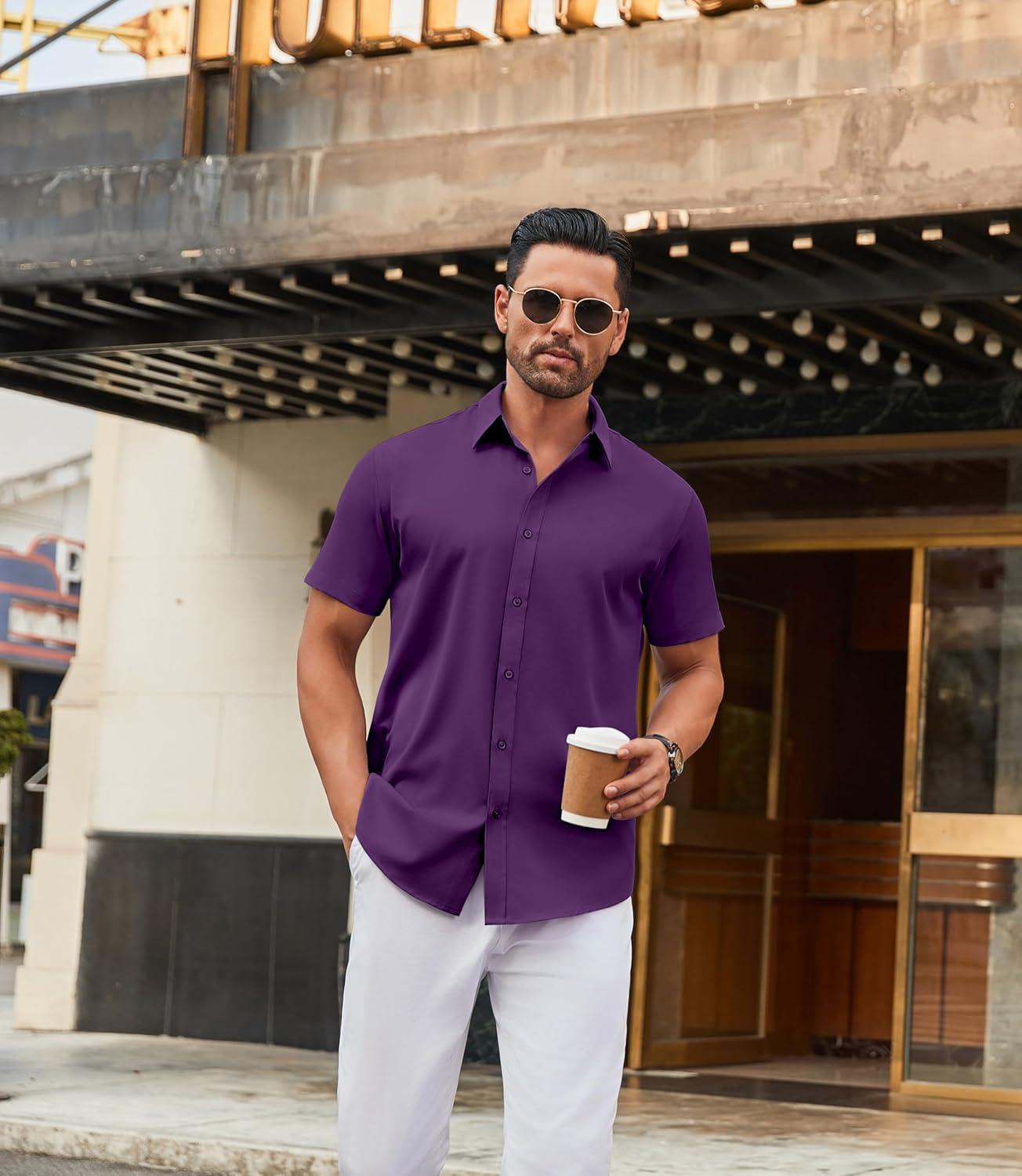 Don’t wait, get up to 50% off on COOFANDY Men’s Stretch Dress Shirts Short Sleeve Wrinkle Free Casual Button Down Shirts(Purple) during our end-of-season sale event.