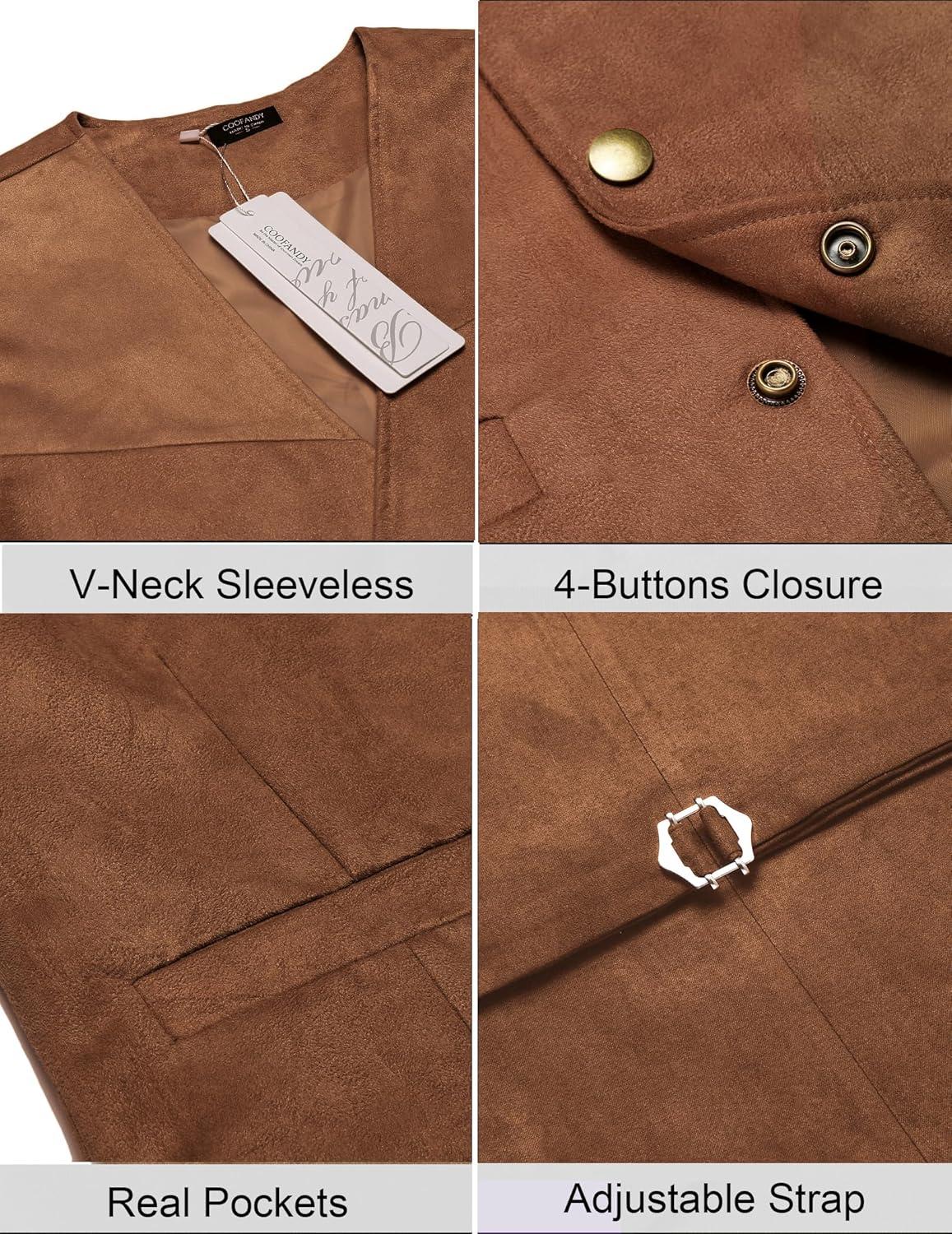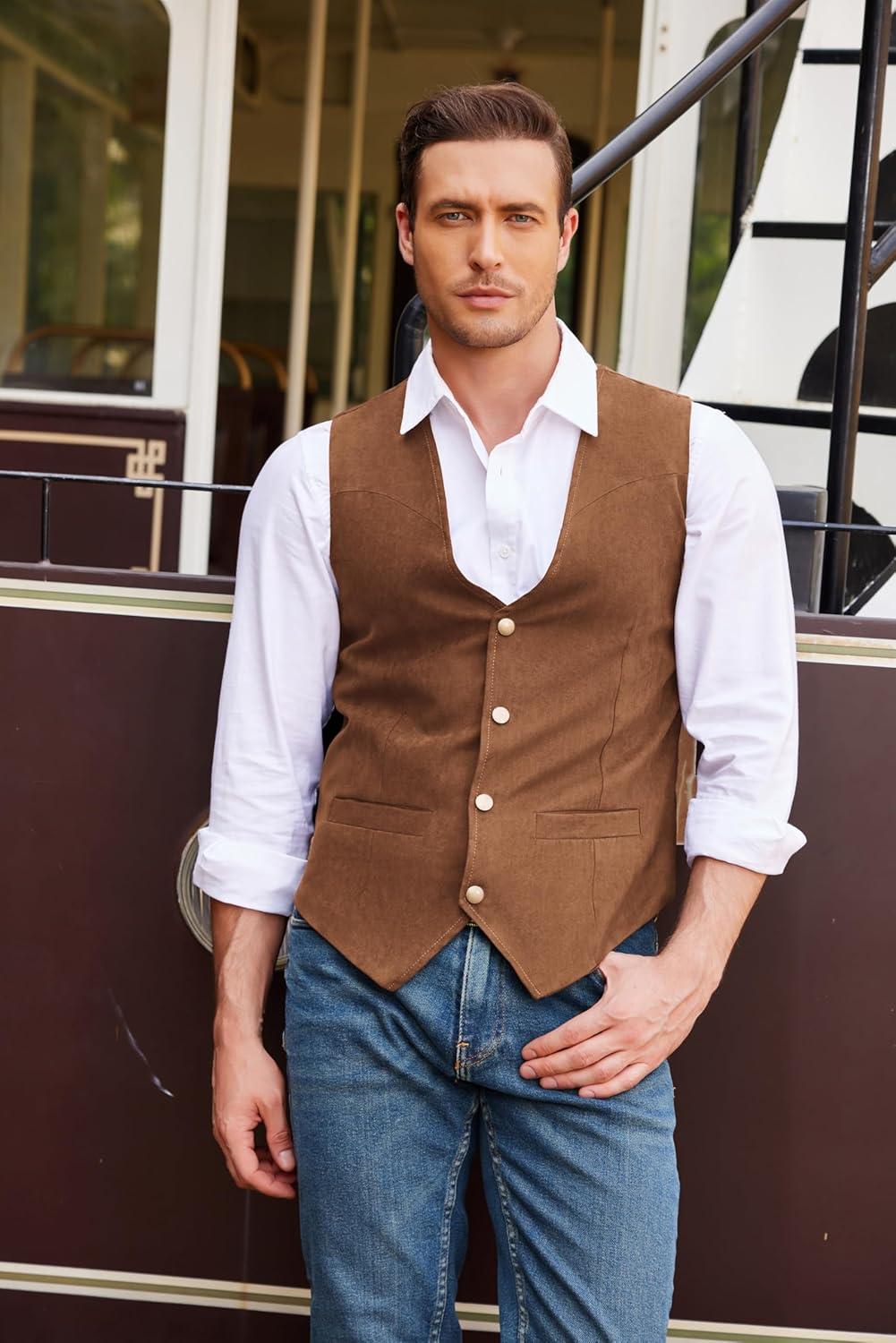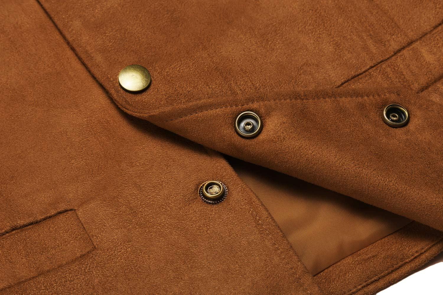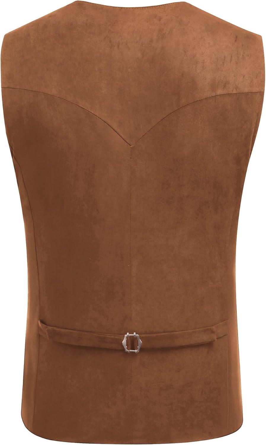 COOFANDY Men's Suede Leather Vest Cowboy Western Waistcoat Casual Slim Fit Suit Vest(Brown)