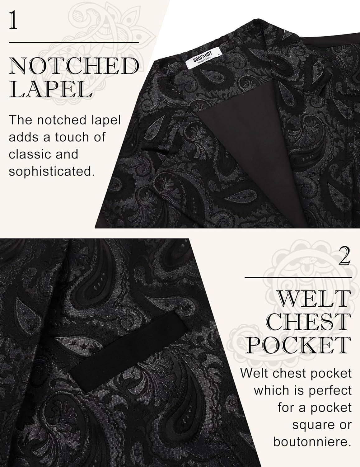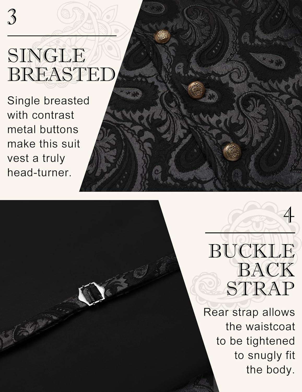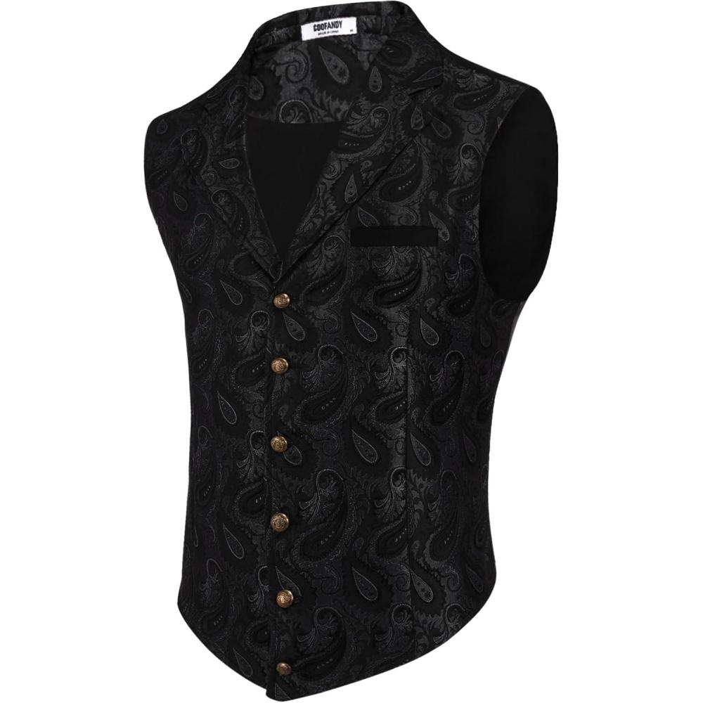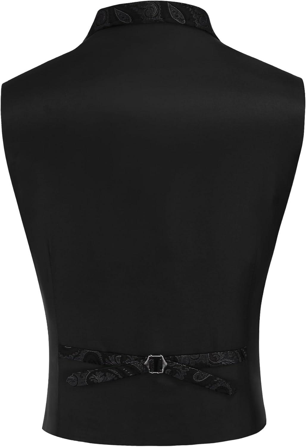 COOFANDY Mens Suit Vest Paisley Floral Victorian Vests Gothic Steampunk Formal Waistcoat Tuxedo Vests with Notched Lapels(Black Paisley)