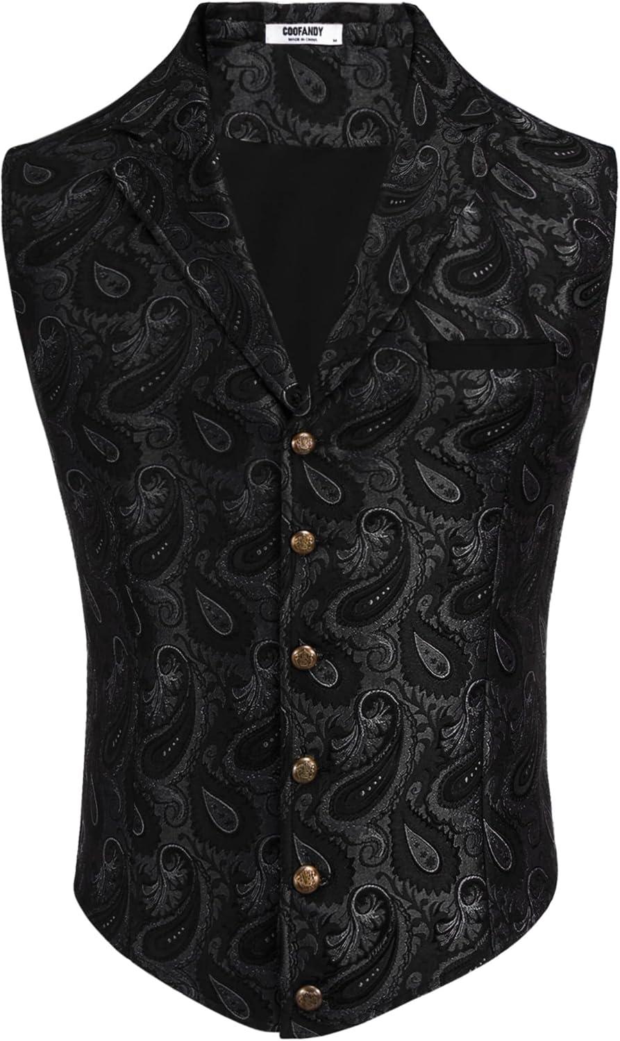 imageCOOFANDY Mens Suit Vest Paisley Floral Victorian Vests Gothic Steampunk Formal Waistcoat Tuxedo Vests with Notched LapelsBlack Paisley