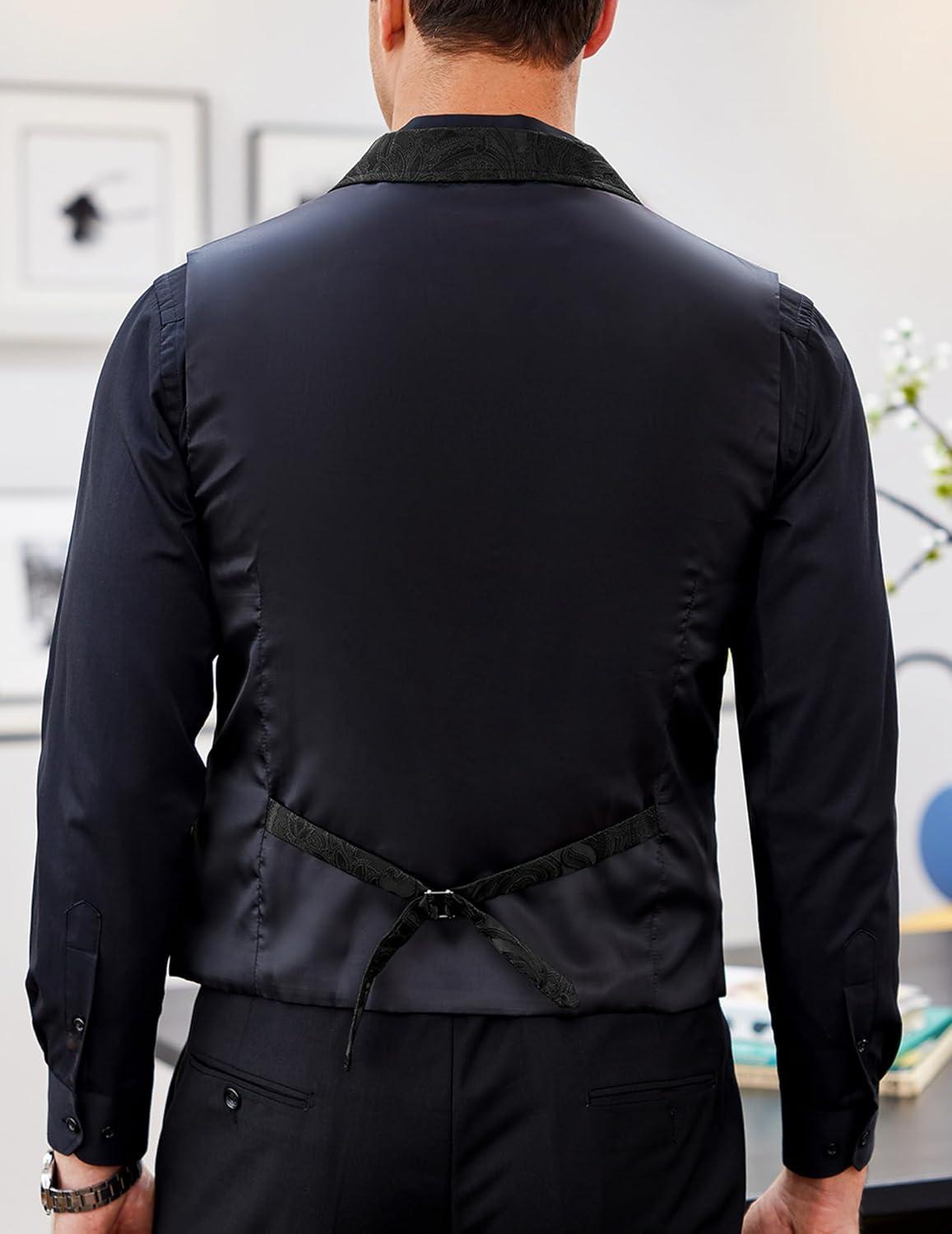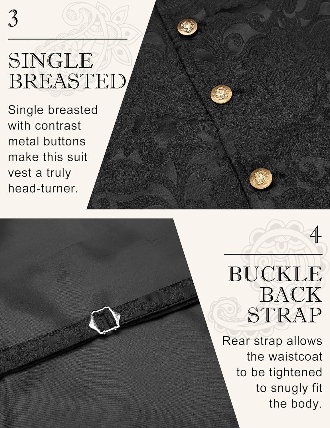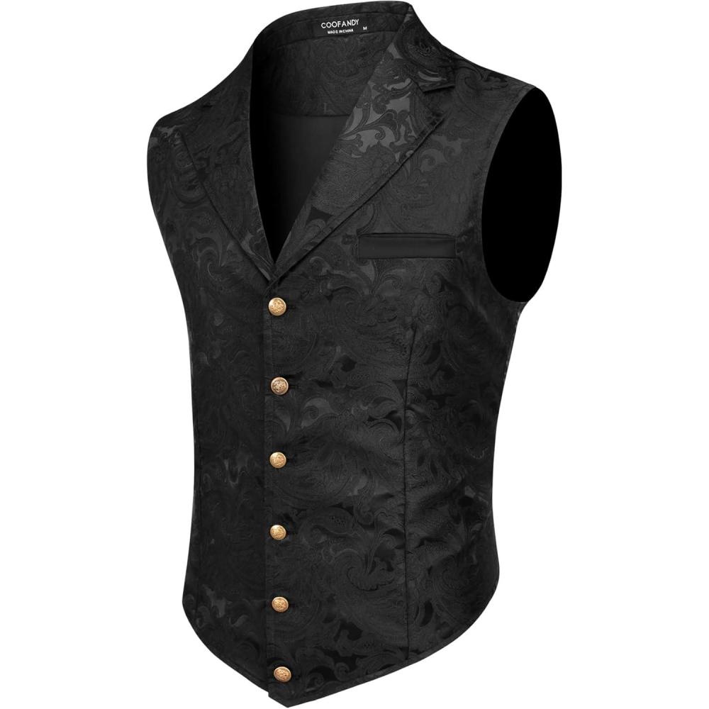 COOFANDY Mens Suit Vest Paisley Floral Victorian Vests Gothic Steampunk Formal Waistcoat Tuxedo Vests with Notched Lapels(Black)