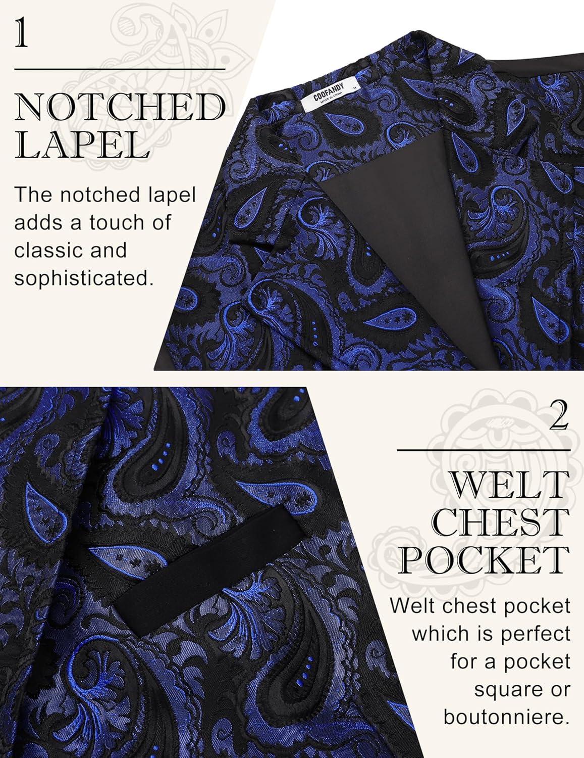 COOFANDY Mens Suit Vest Paisley Floral Victorian Vests Gothic Steampunk Formal Waistcoat Tuxedo Vests with Notched Lapels(Blue Paisley)