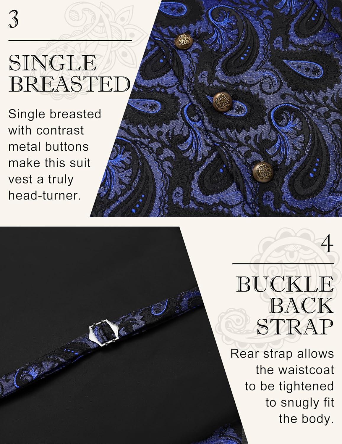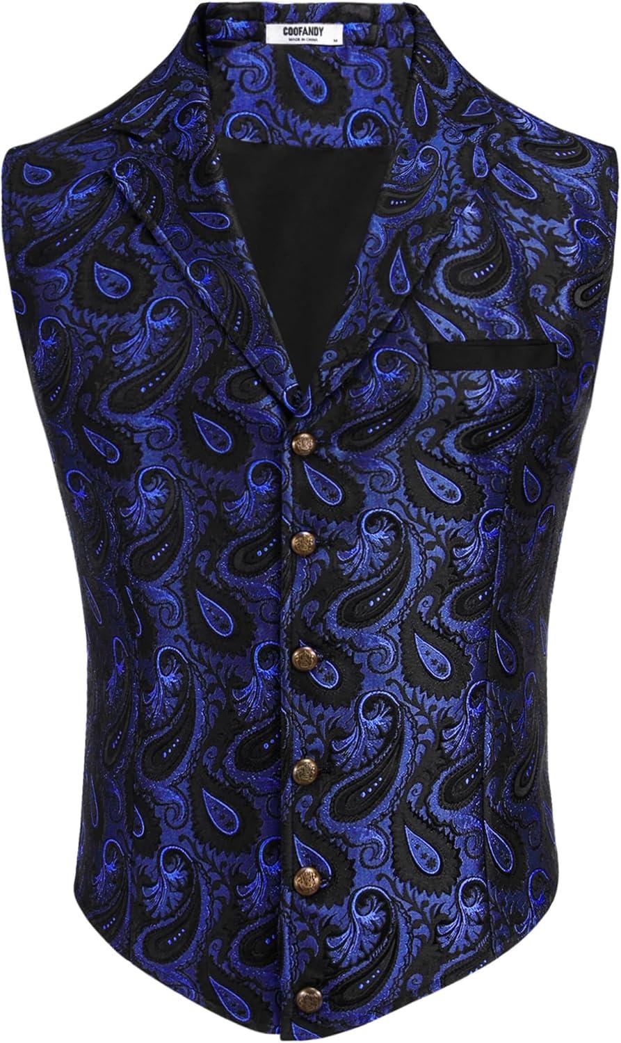 imageCOOFANDY Mens Suit Vest Paisley Floral Victorian Vests Gothic Steampunk Formal Waistcoat Tuxedo Vests with Notched LapelsBlue Paisley