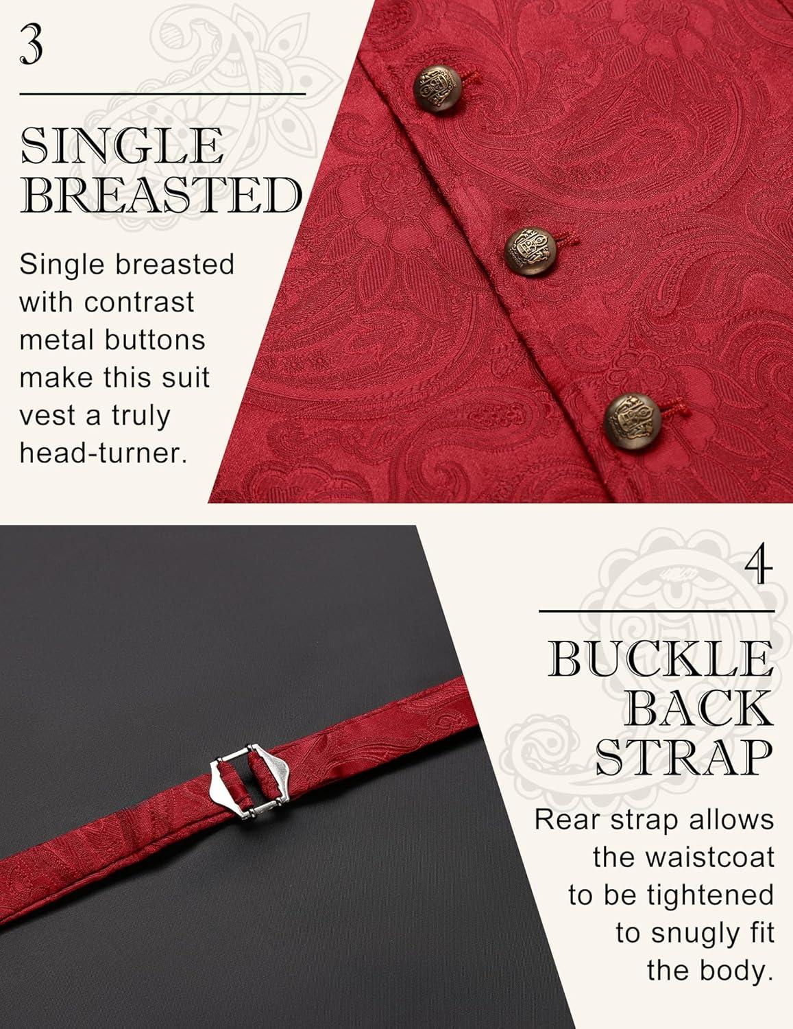 imageCOOFANDY Mens Suit Vest Paisley Floral Victorian Vests Gothic Steampunk Formal Waistcoat Tuxedo Vests with Notched LapelsBright Red Paisley