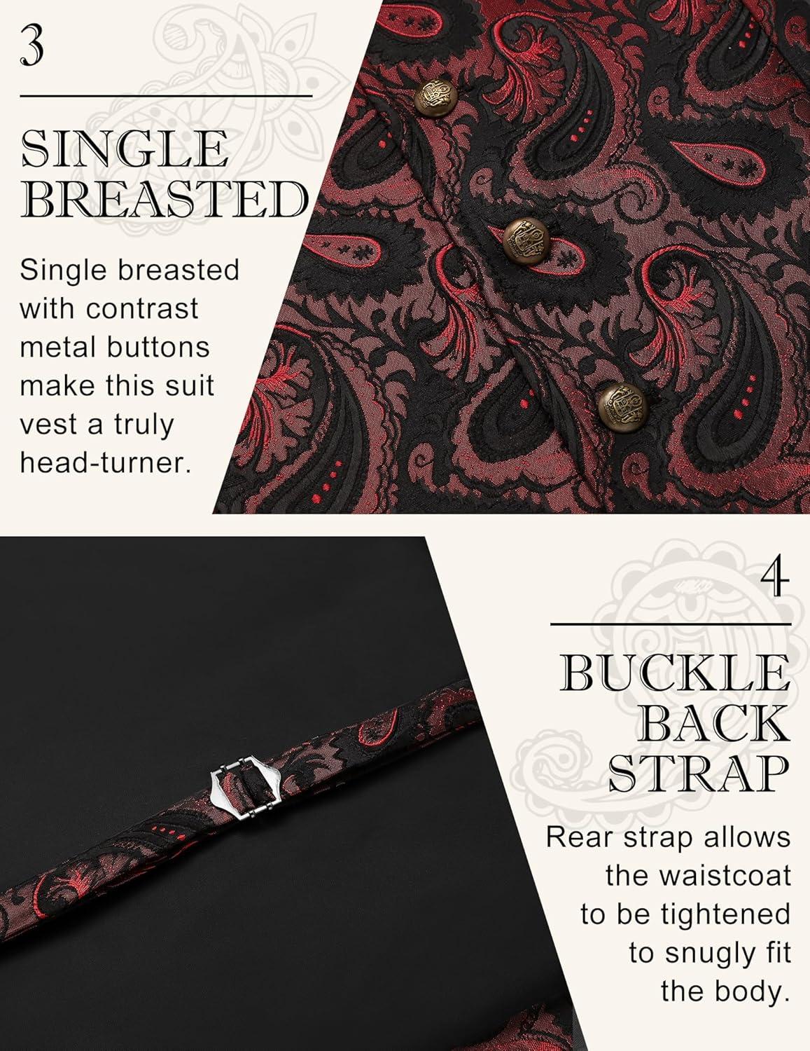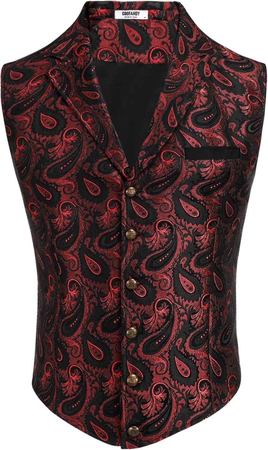 Don’t miss out on our limited-time offer: buy COOFANDY Mens Suit Vest Paisley Floral Victorian Vests Gothic Steampunk Formal Waistcoat Tuxedo Vests with Notched Lapels(Red Paisley), get {accessory} 50% off!