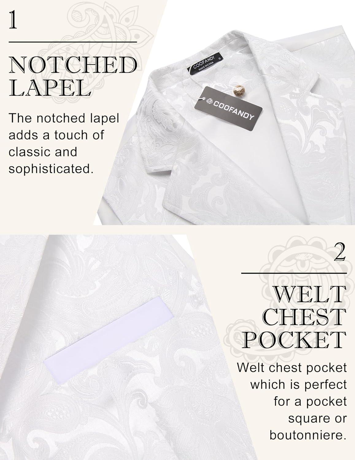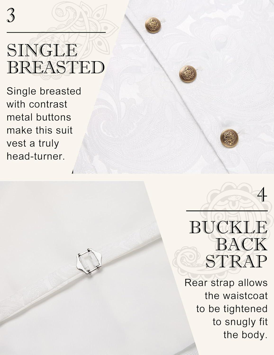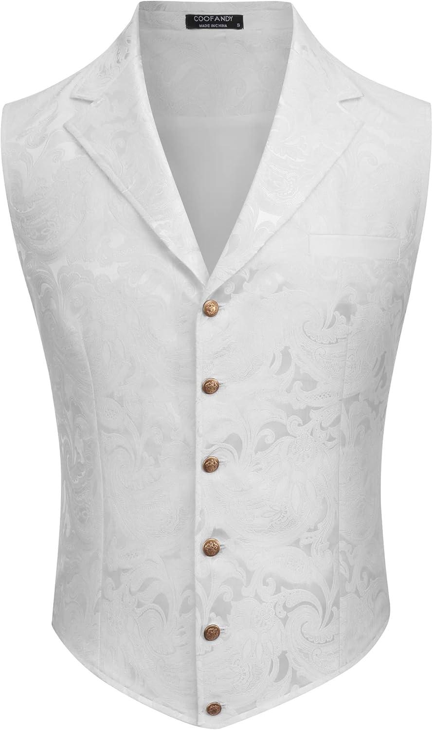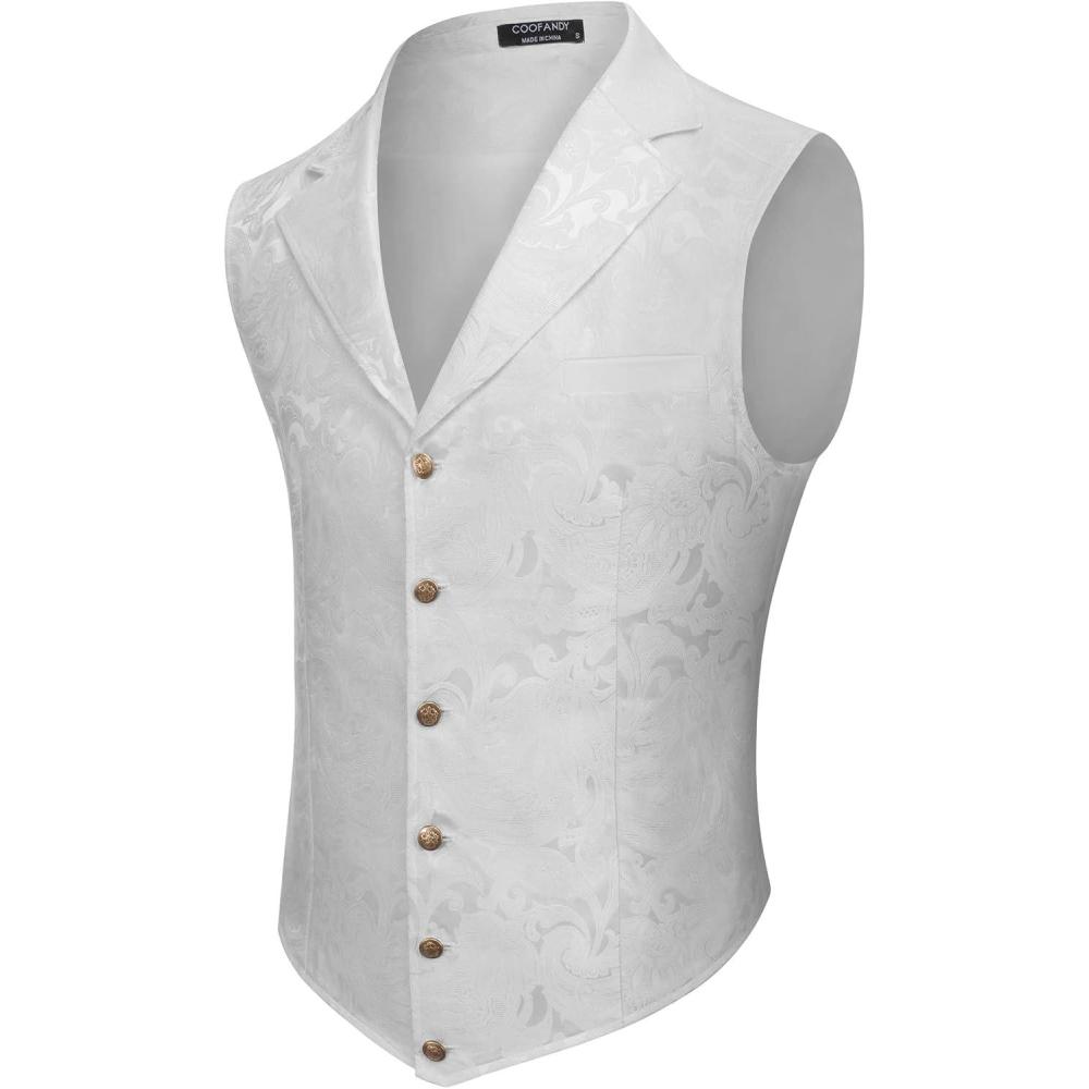 COOFANDY Mens Suit Vest Paisley Floral Victorian Vests Gothic Steampunk Formal Waistcoat Tuxedo Vests with Notched Lapels(White)