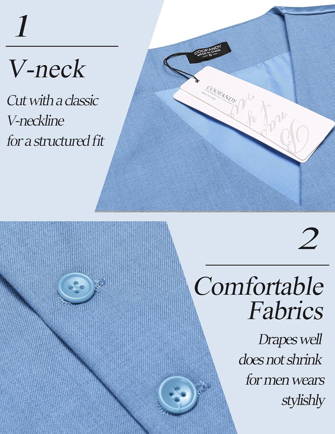 COOFANDY Men’s Suit Vest Slim Fit Business Formal Waistcoat Casual Dress Vest(Light Blue)