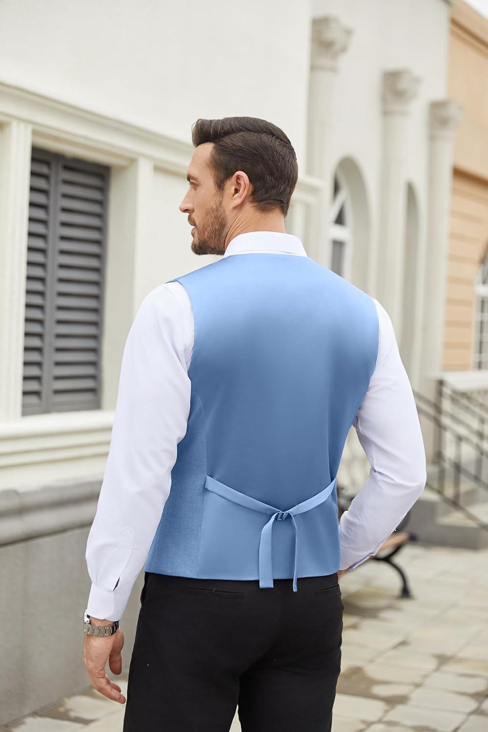 COOFANDY Men's Suit Vest Slim Fit Business Formal Waistcoat Casual Dress Vest(Light Blue)