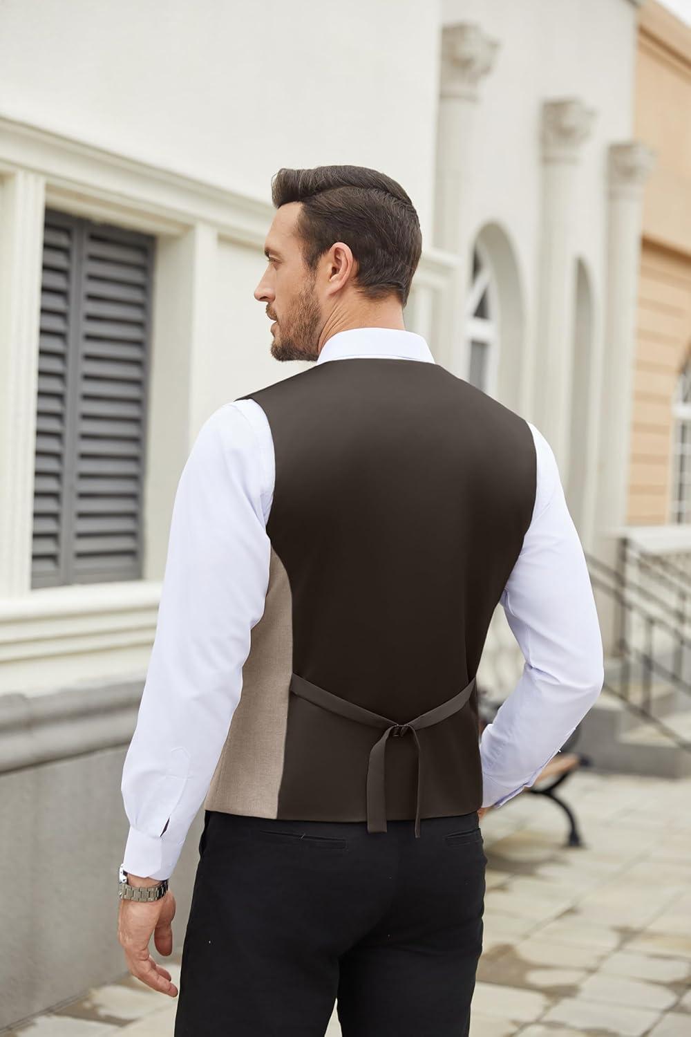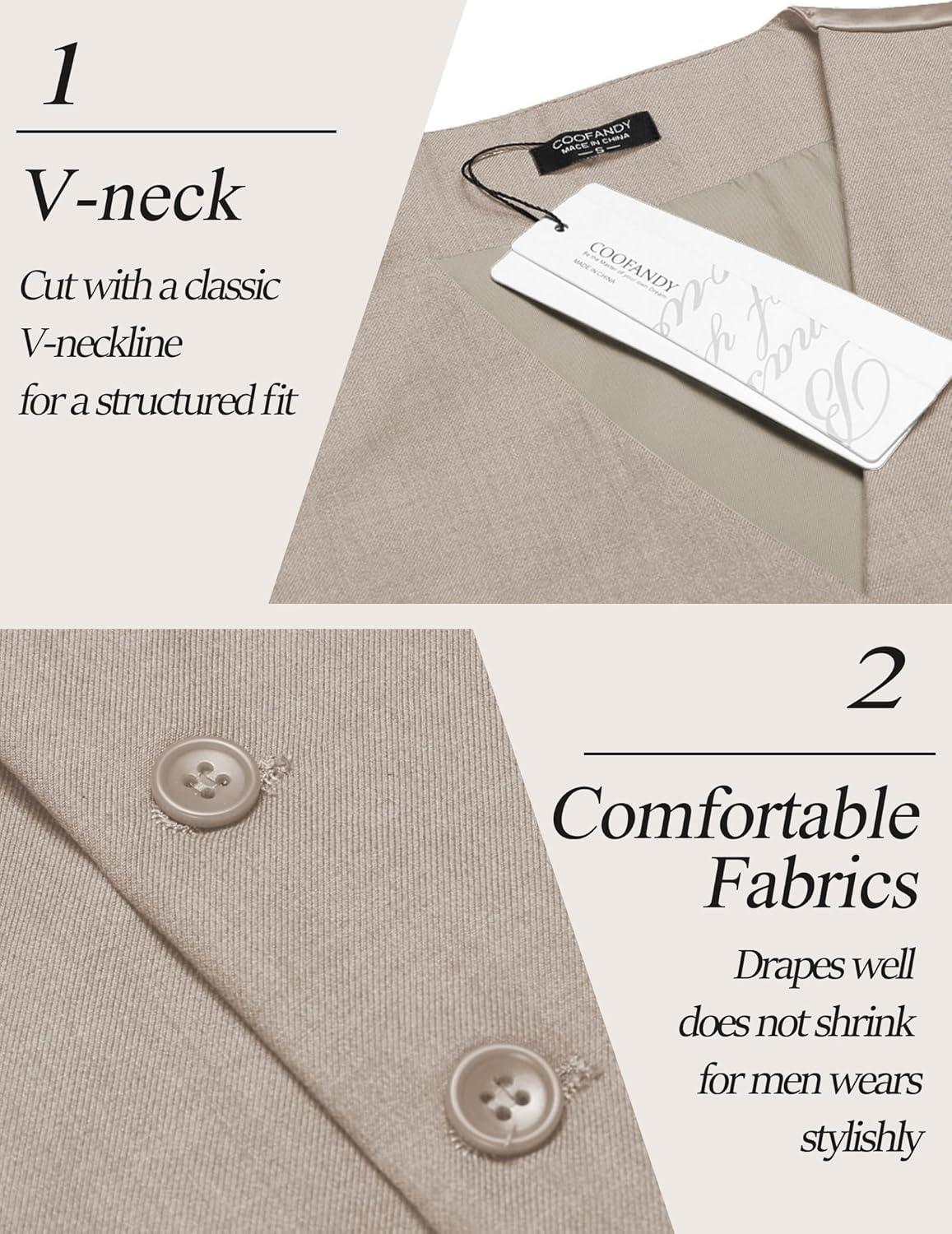 COOFANDY Men’s Suit Vest Slim Fit Business Formal Waistcoat Casual Dress Vest(Light Khaki)