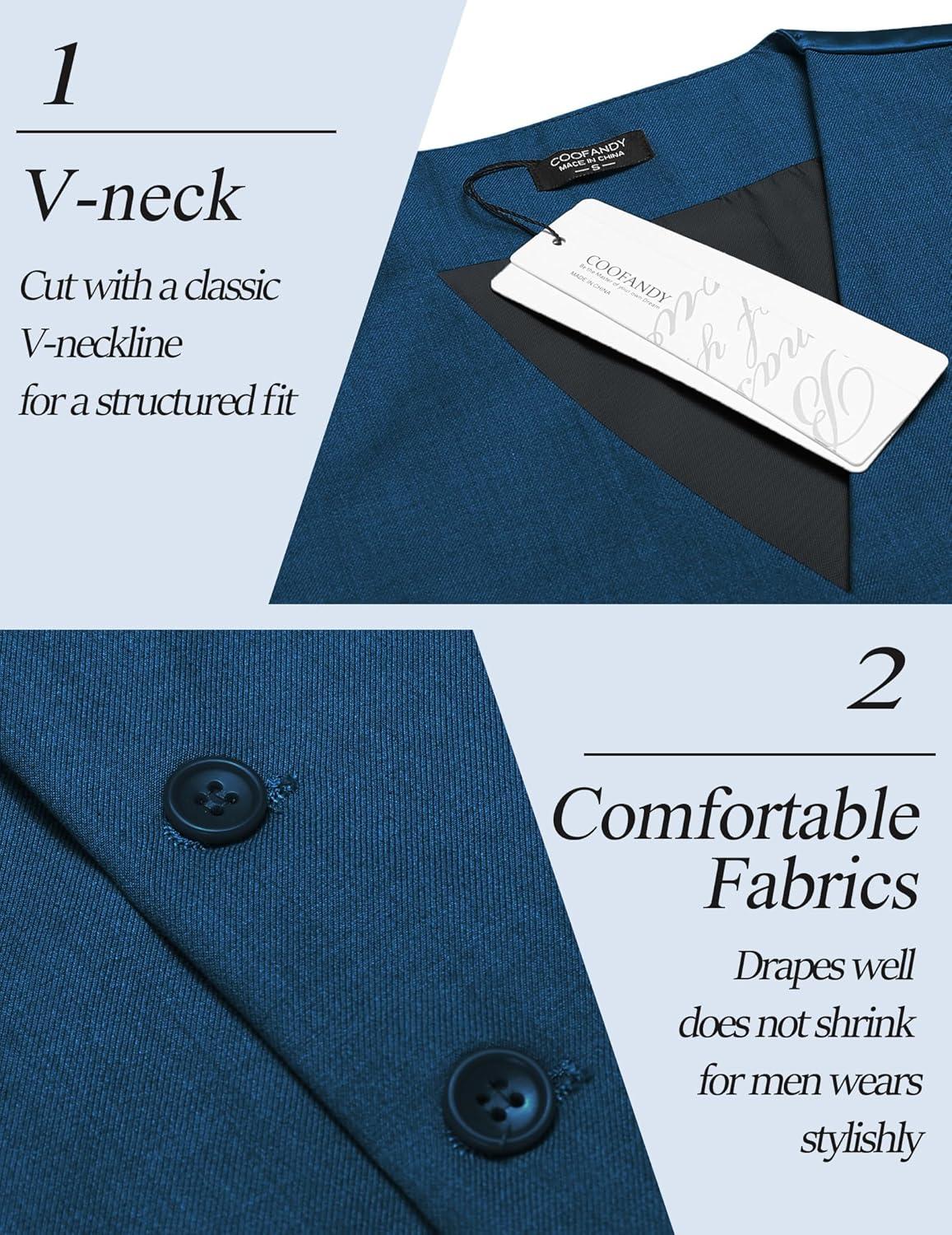 COOFANDY Men’s Suit Vest Slim Fit Business Formal Waistcoat Casual Dress Vest(Navy Blue)