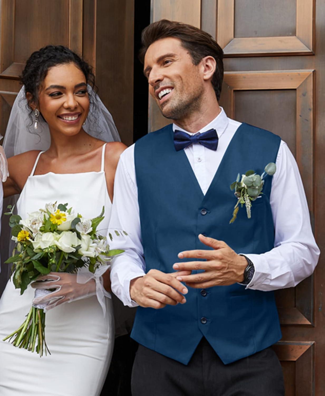 imageCOOFANDY Mens Suit Vest Slim Fit Business Formal Waistcoat Casual Dress VestNavy Blue