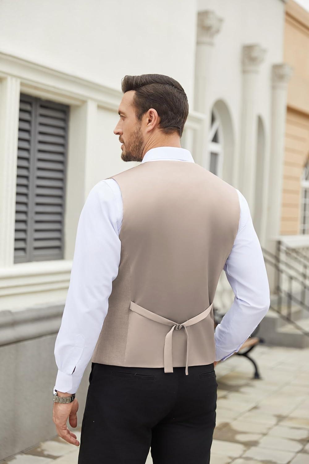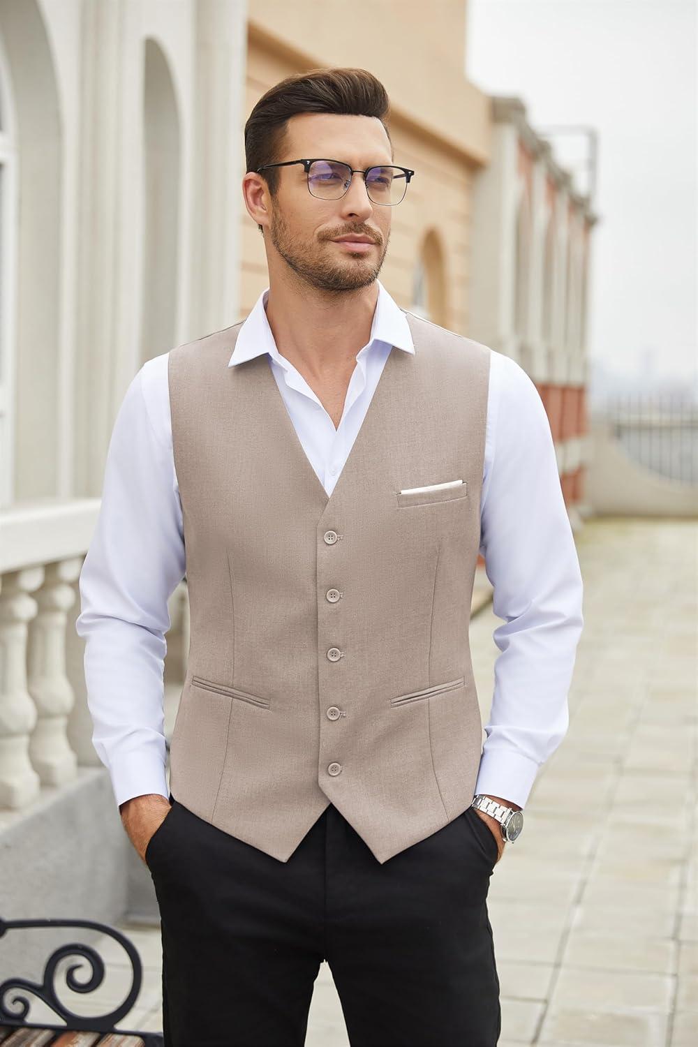 COOFANDY Men’s Suit Vest Slim Fit Business Formal Waistcoat Casual Dress Vest(Camel)
