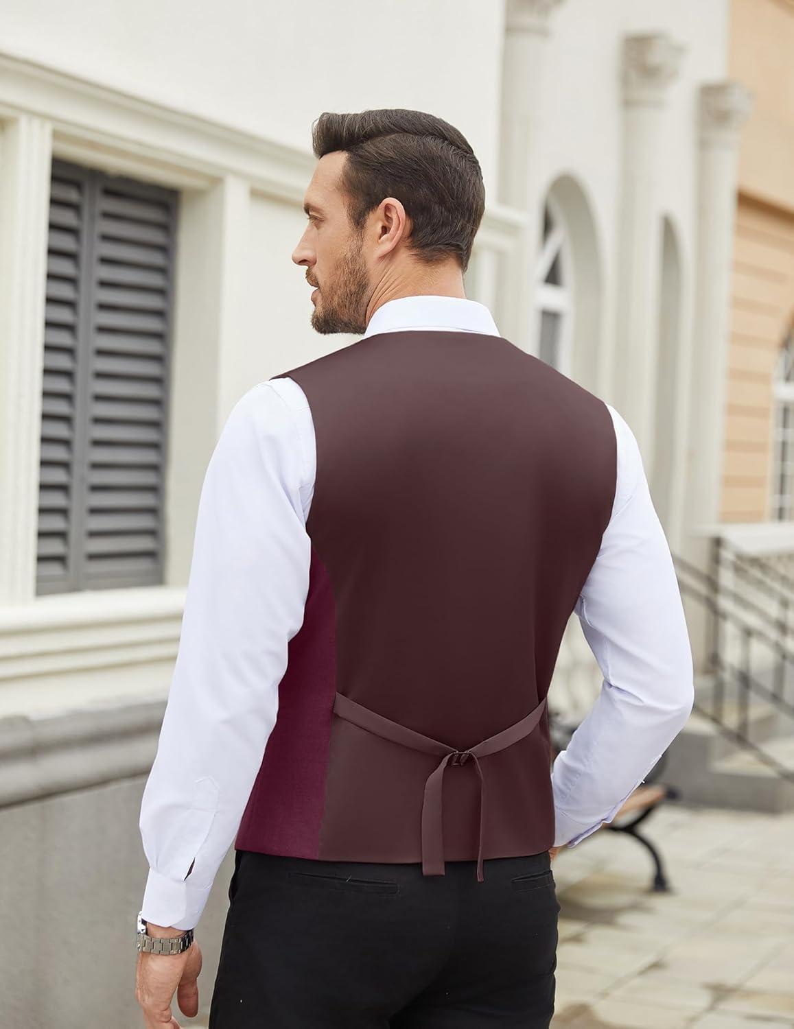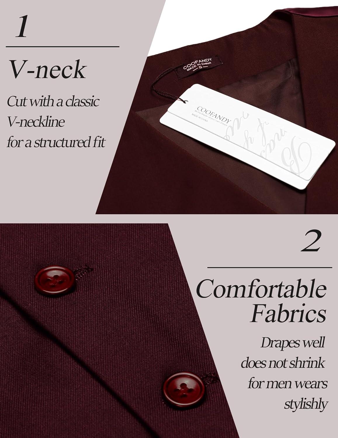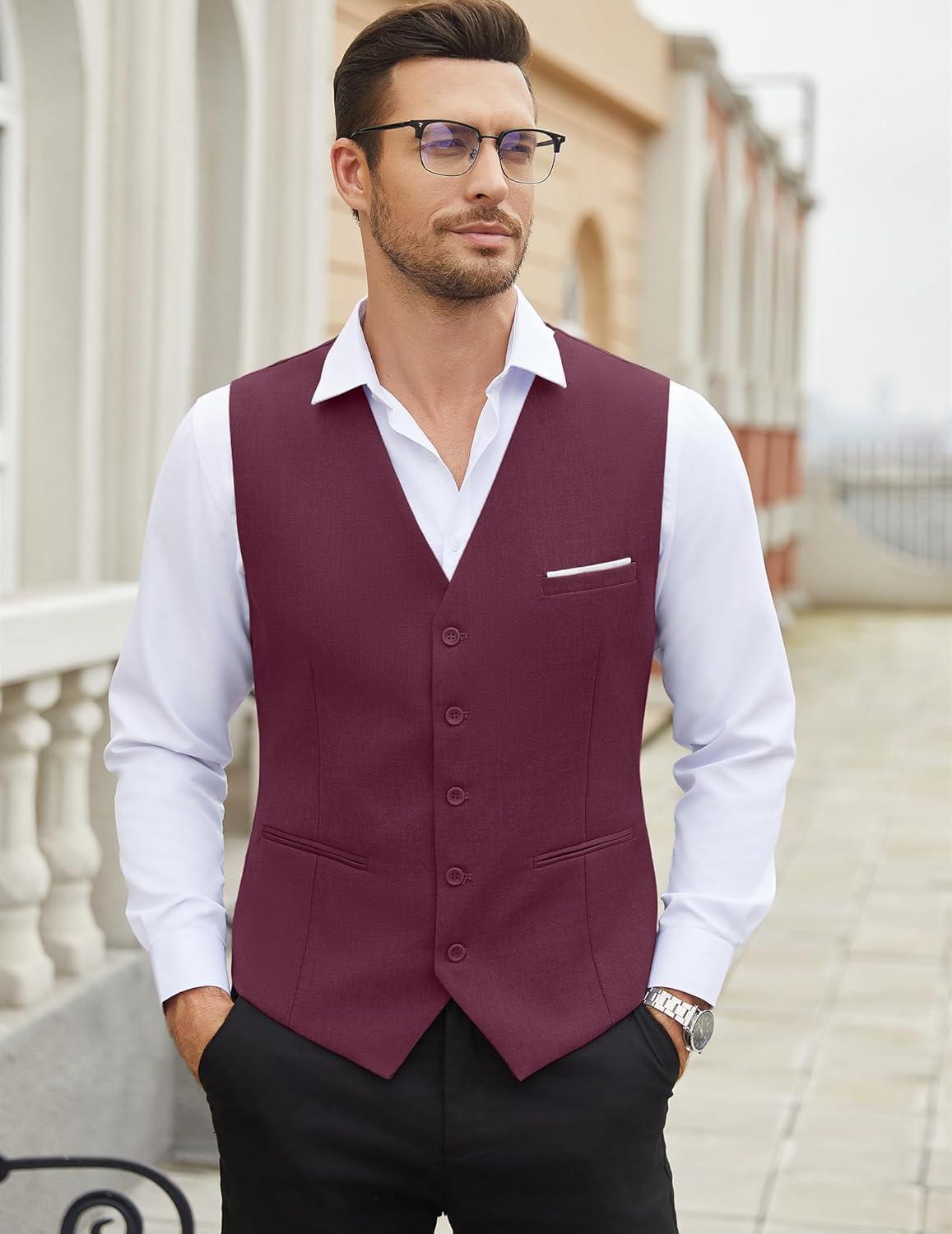 COOFANDY Men's Suit Vest Slim Fit Business Formal Waistcoat Casual Dress Vest(Wine Red)