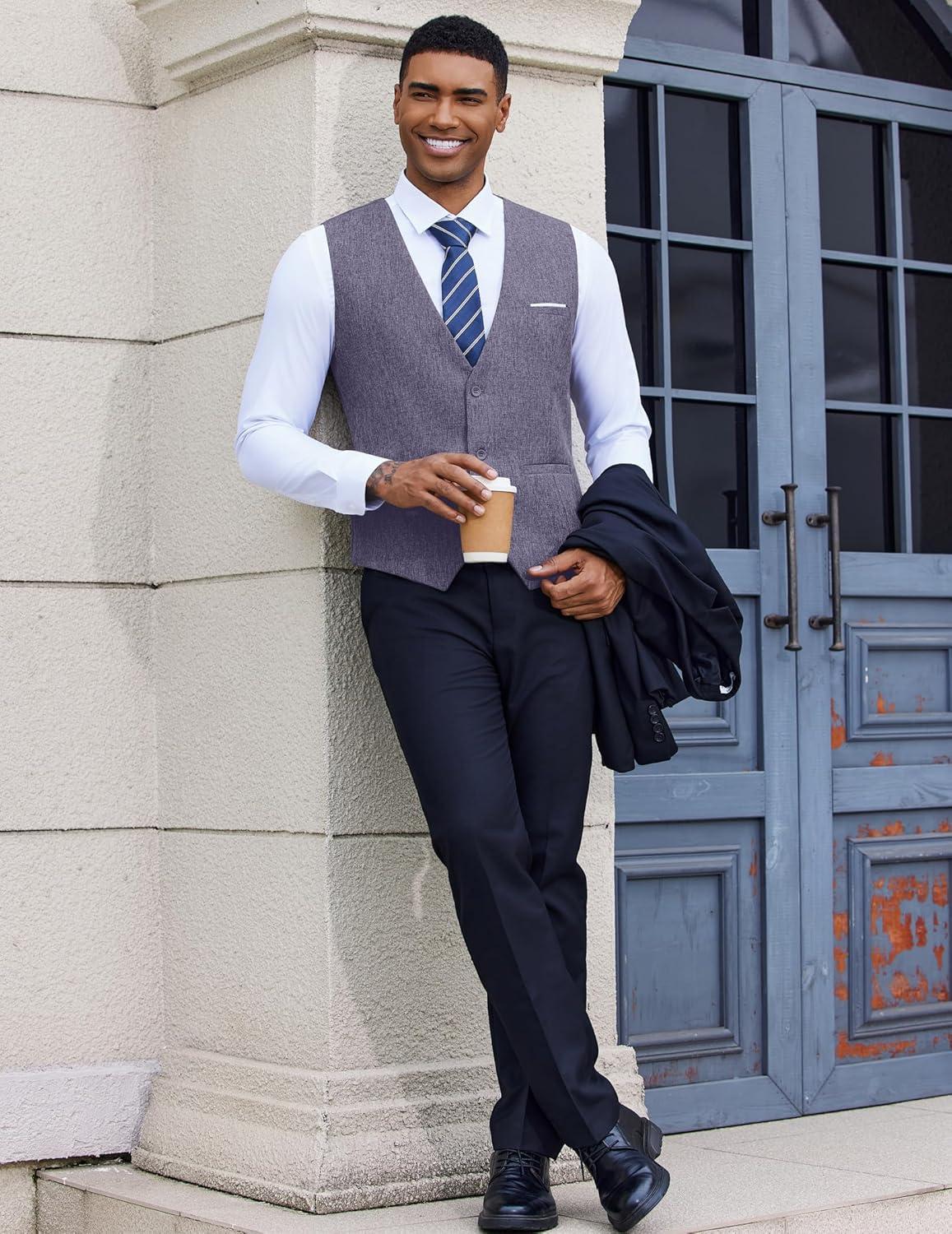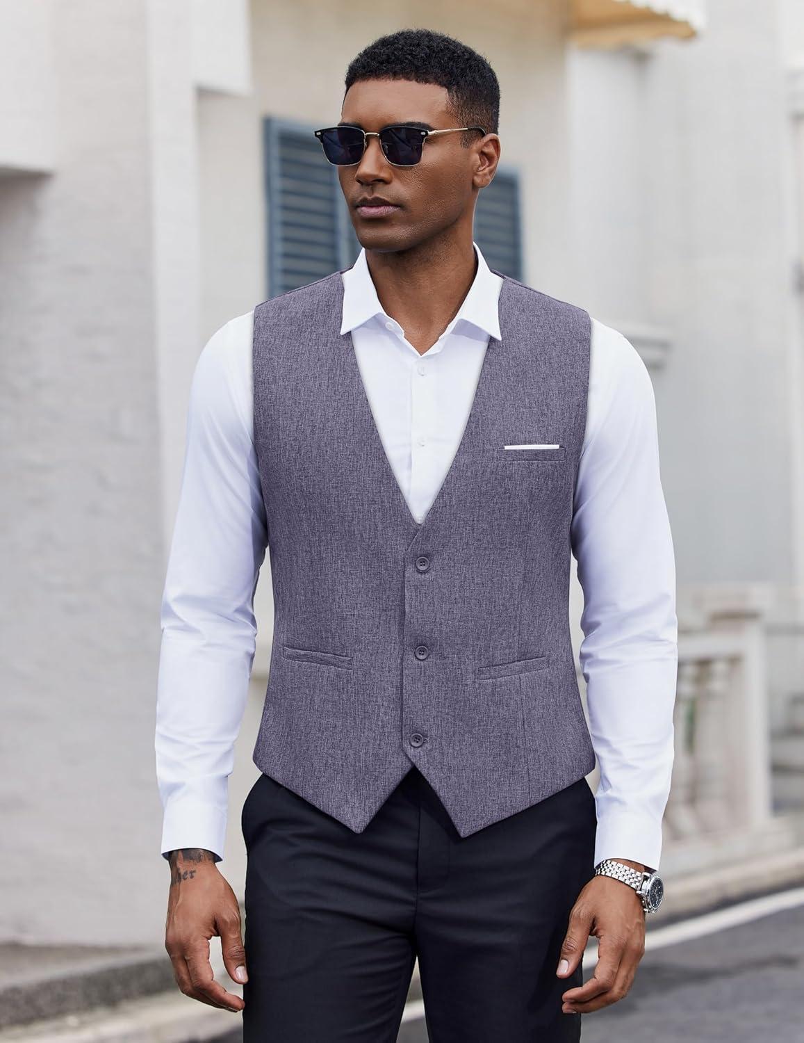COOFANDY Men’s Suit Vest Slim Fit Casual Business Vests Lightweight V-Neck Formal Dress Waistcoat for Wedding Prom(Brown)