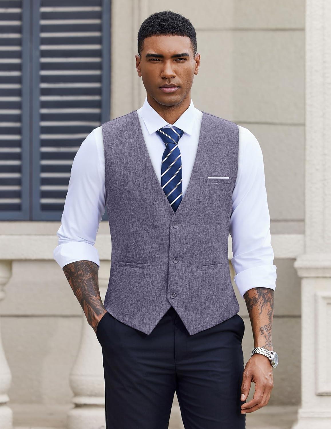 COOFANDY Men's Suit Vest Slim Fit Casual Business Vests Lightweight V-Neck Formal Dress Waistcoat for Wedding Prom(Blue)