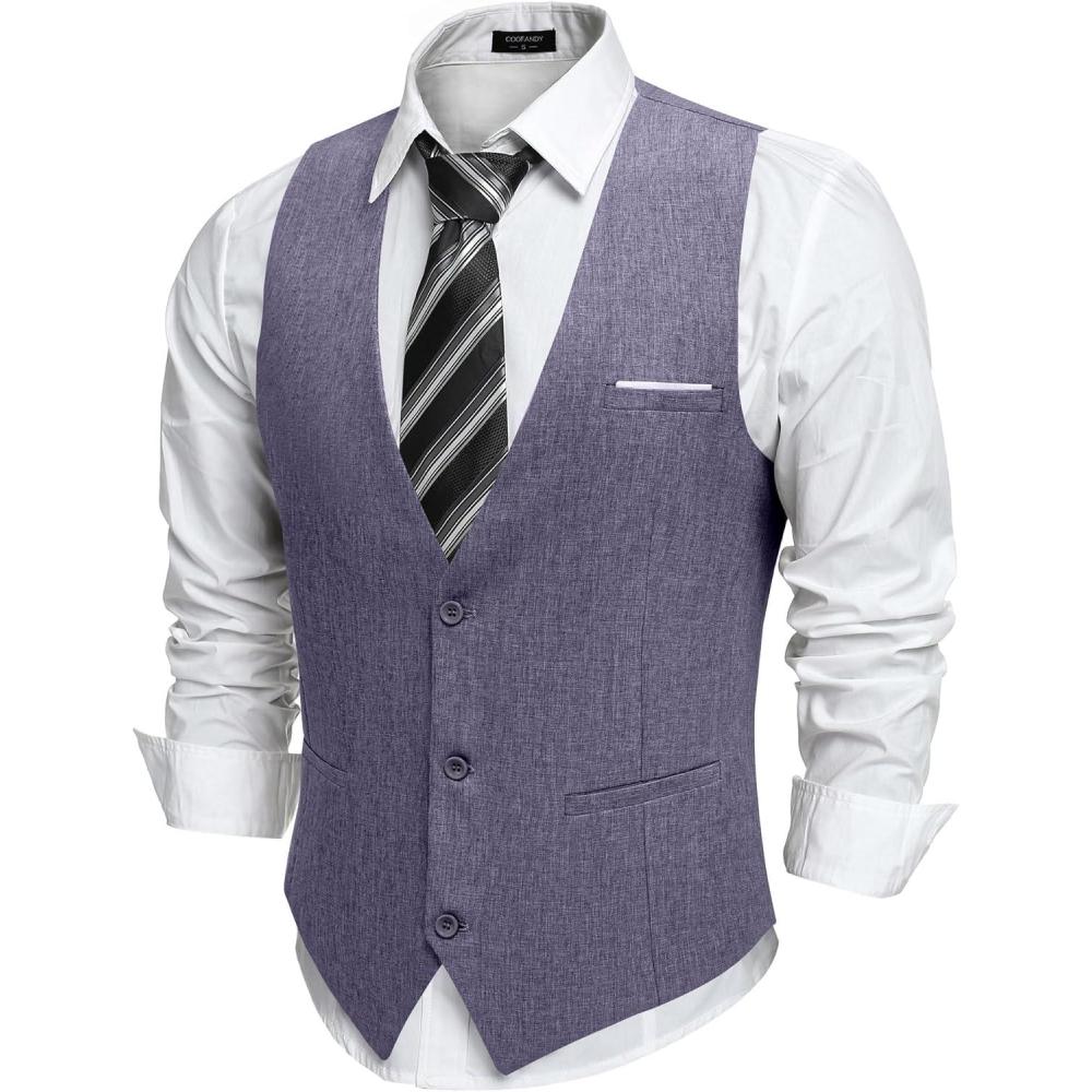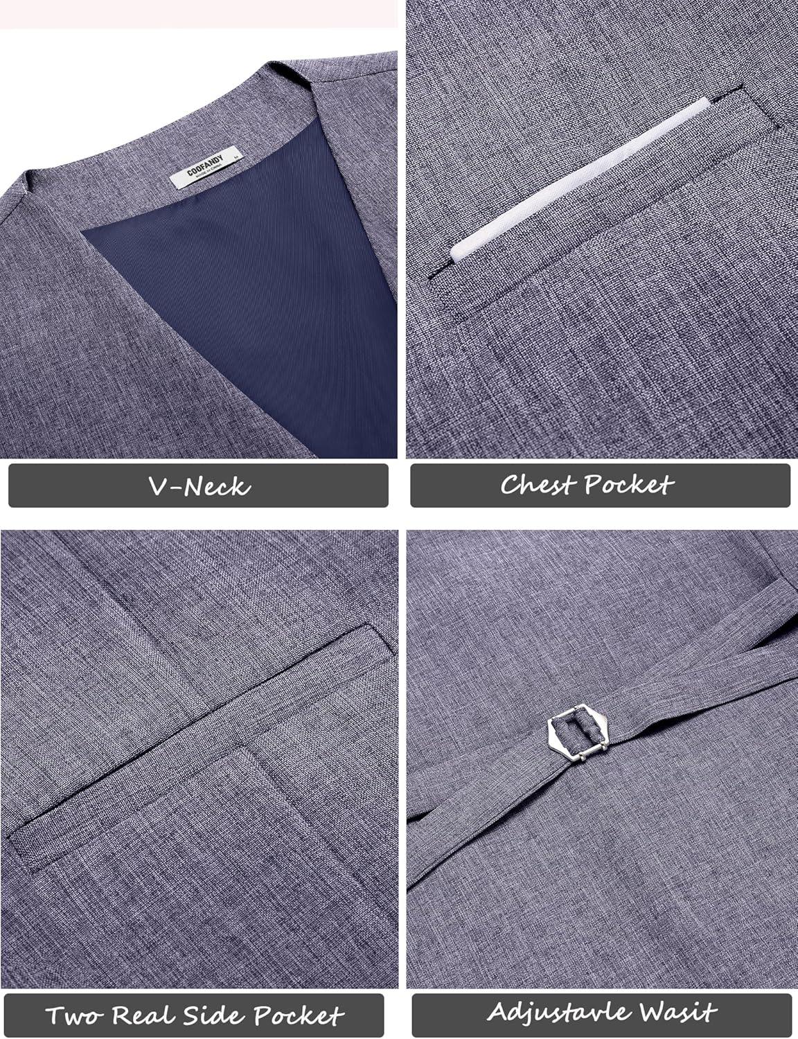 COOFANDY Men’s Suit Vest Slim Fit Casual Business Vests Lightweight V-Neck Formal Dress Waistcoat for Wedding Prom(Blue)