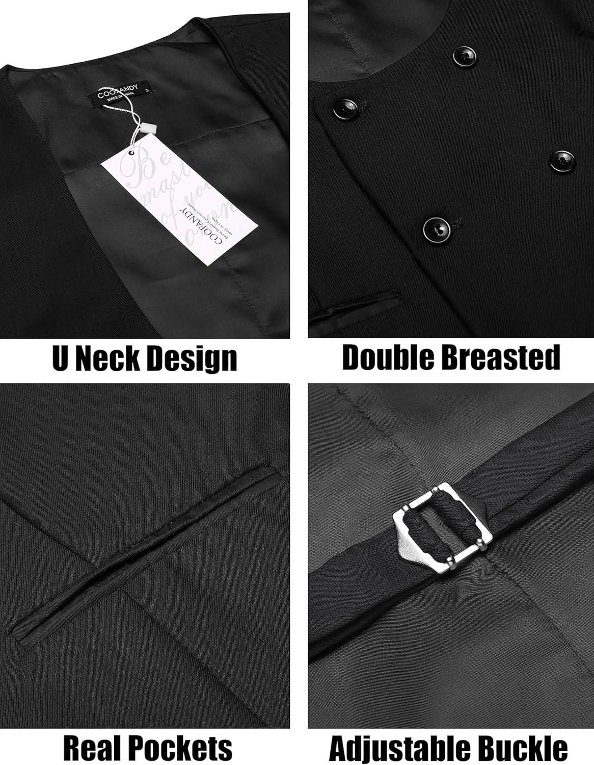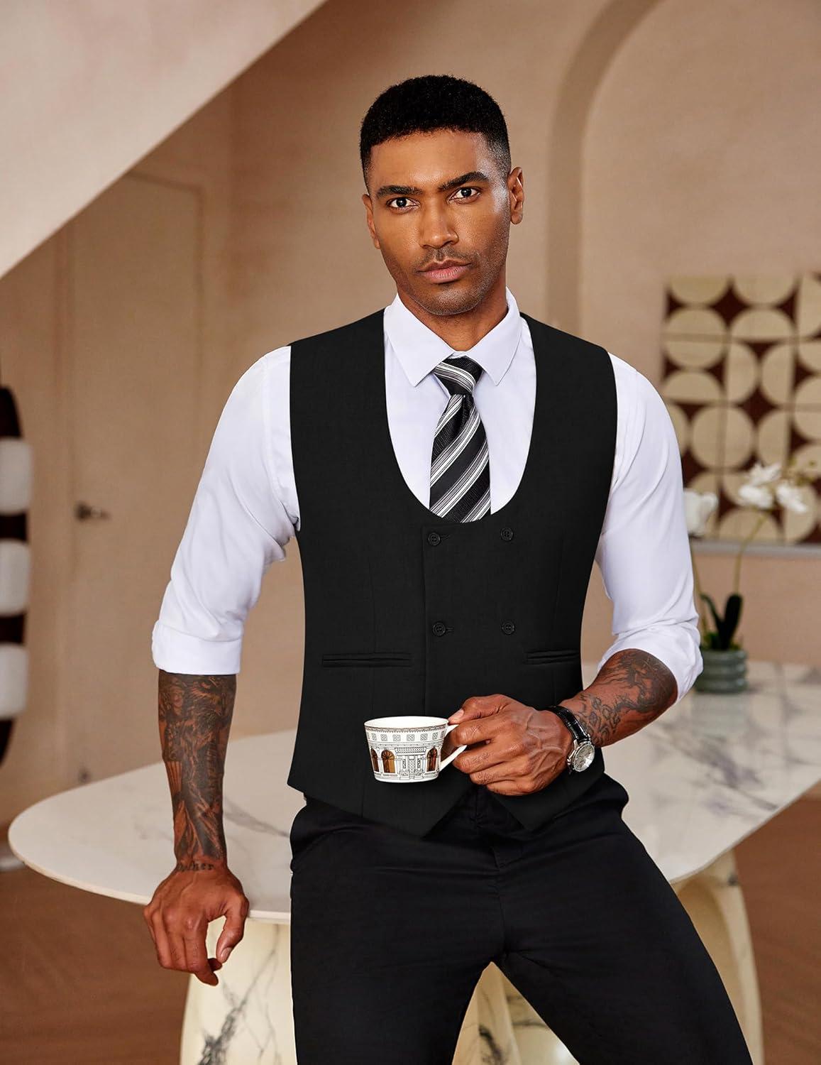 COOFANDY Men's Suit Vest Slim Fit Double Breasted Dress Vest Casual Business Formal Waistcoat(Black)