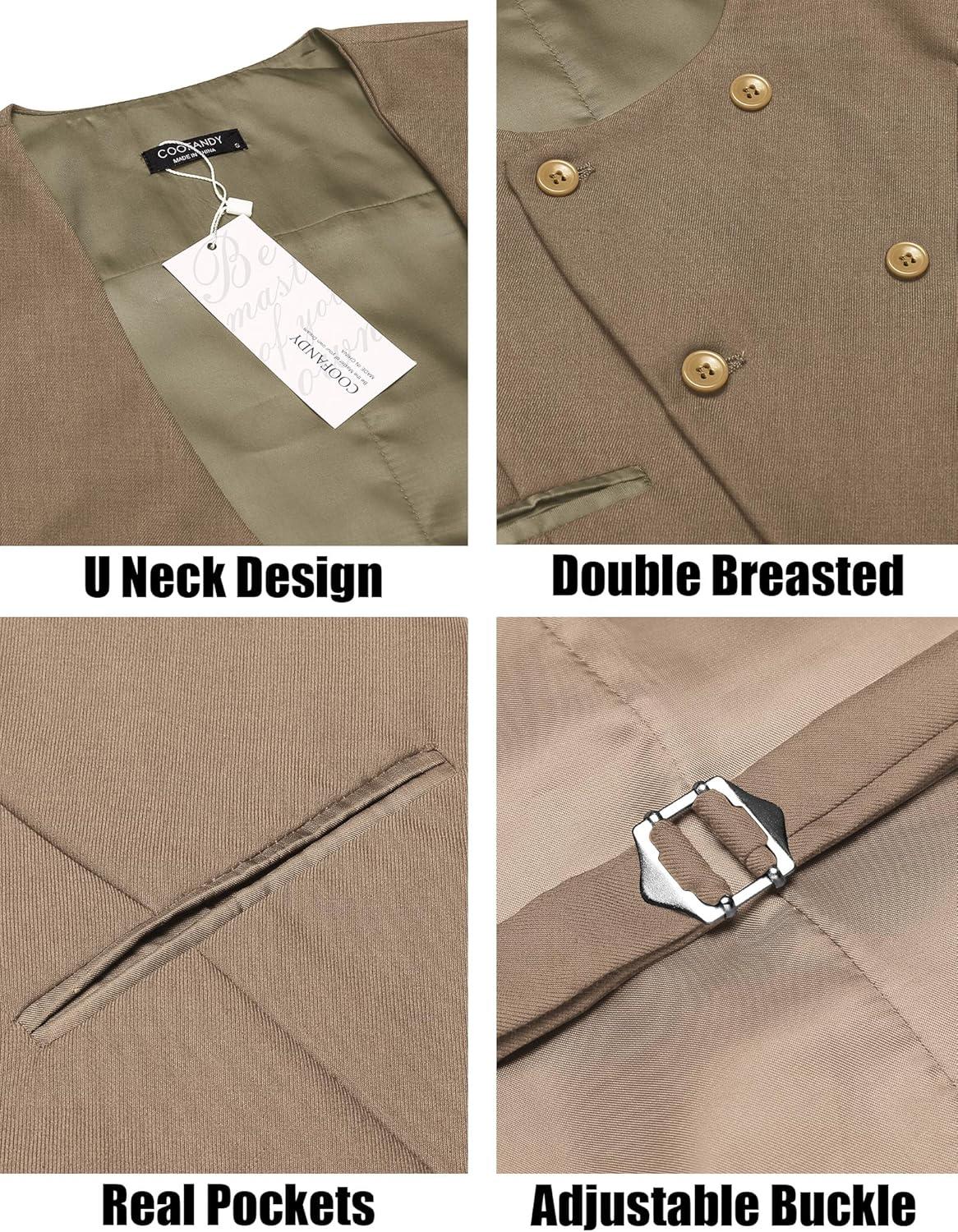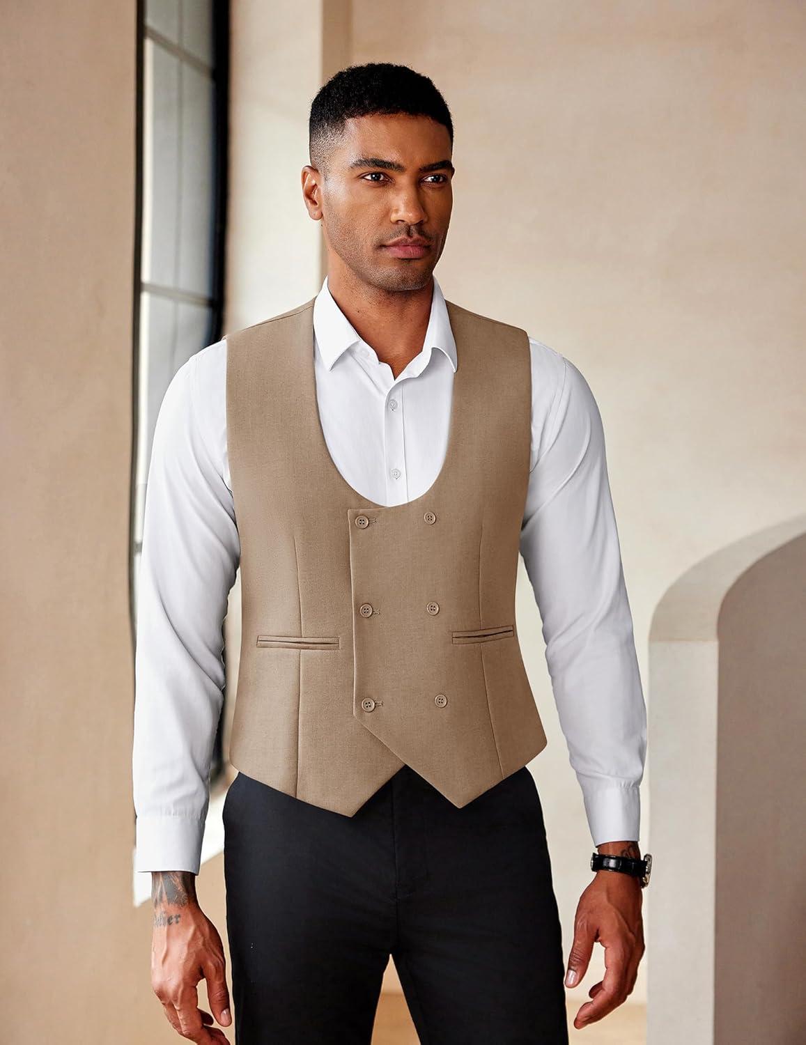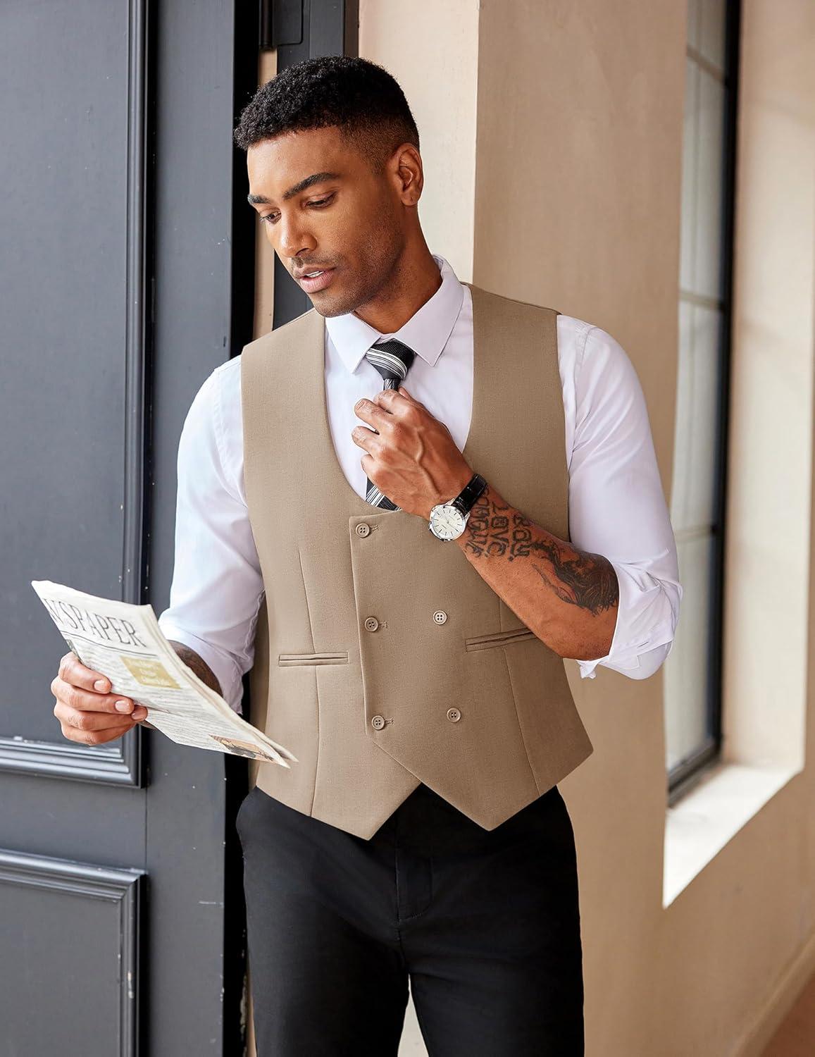 COOFANDY Men's Suit Vest Slim Fit Double Breasted Dress Vest Casual Business Formal Waistcoat(Khaki)