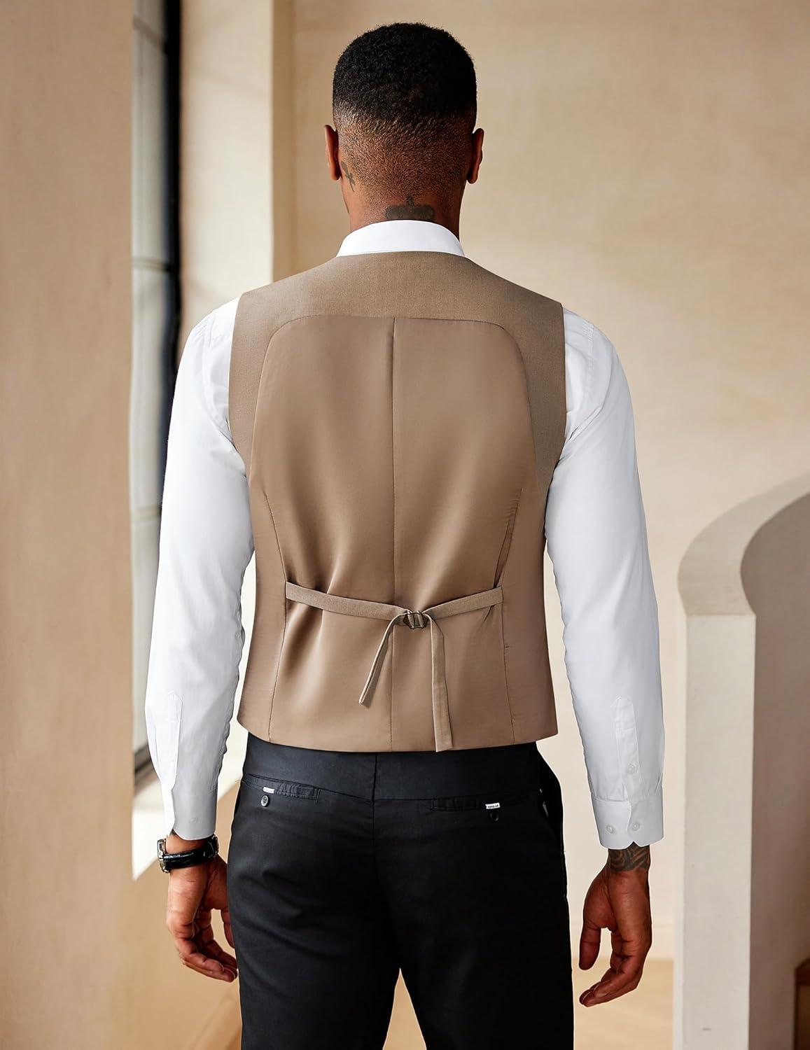 COOFANDY Men’s Suit Vest Slim Fit Double Breasted Dress Vest Casual Business Formal Waistcoat(Khaki)