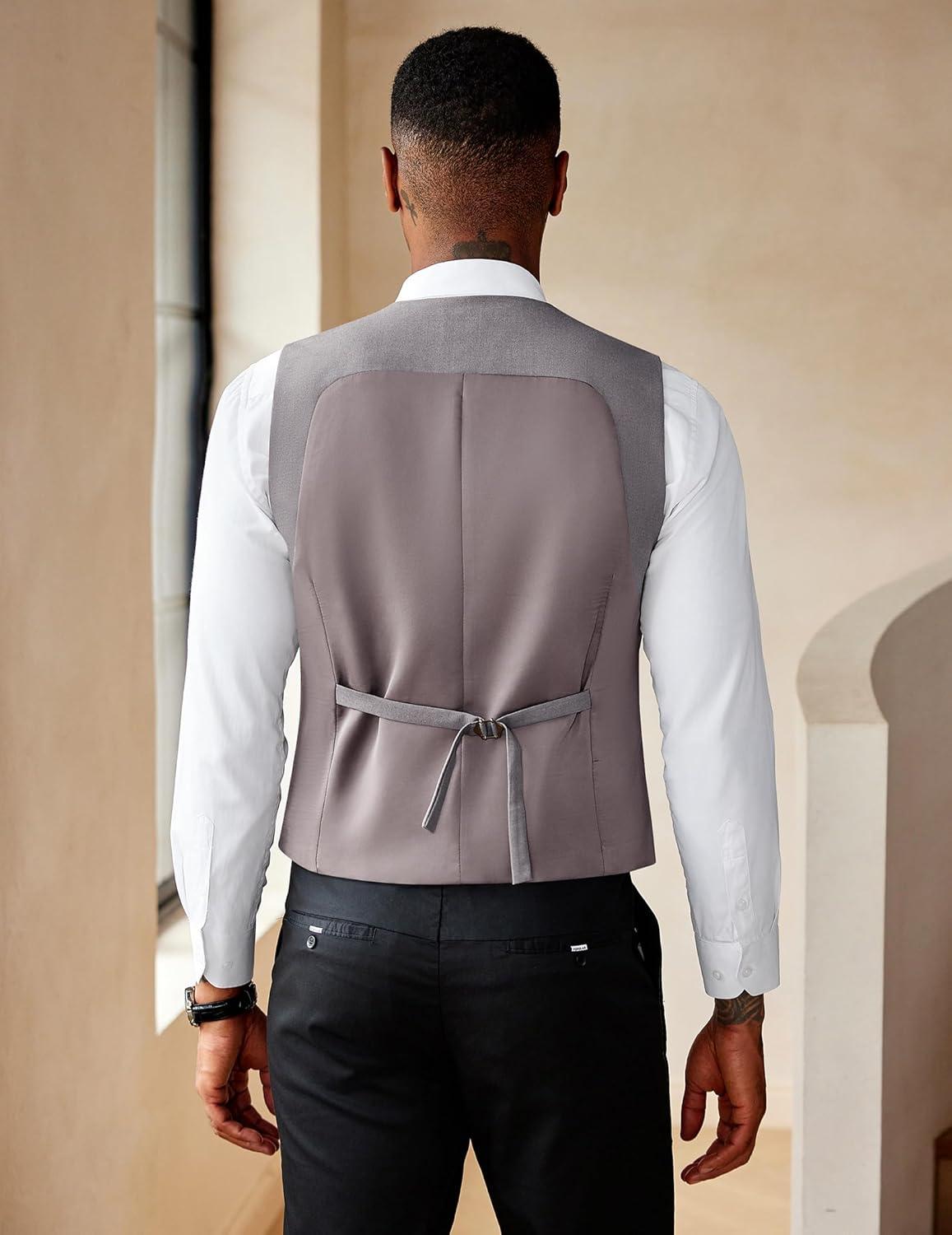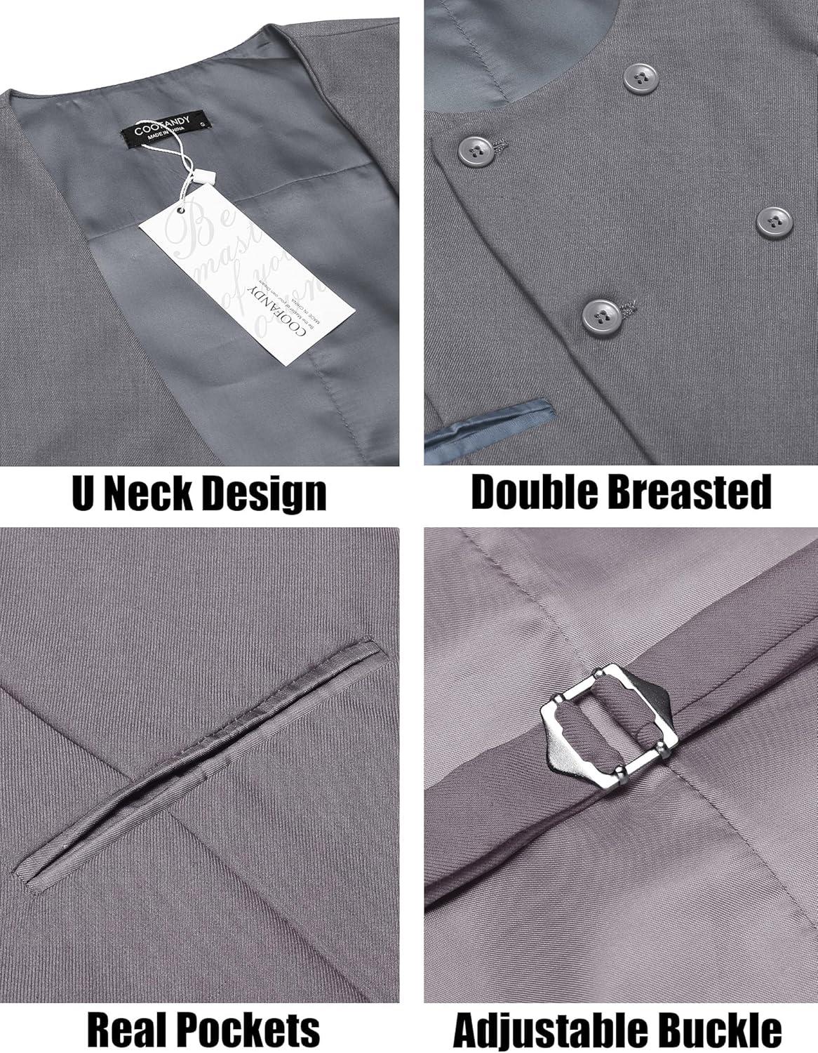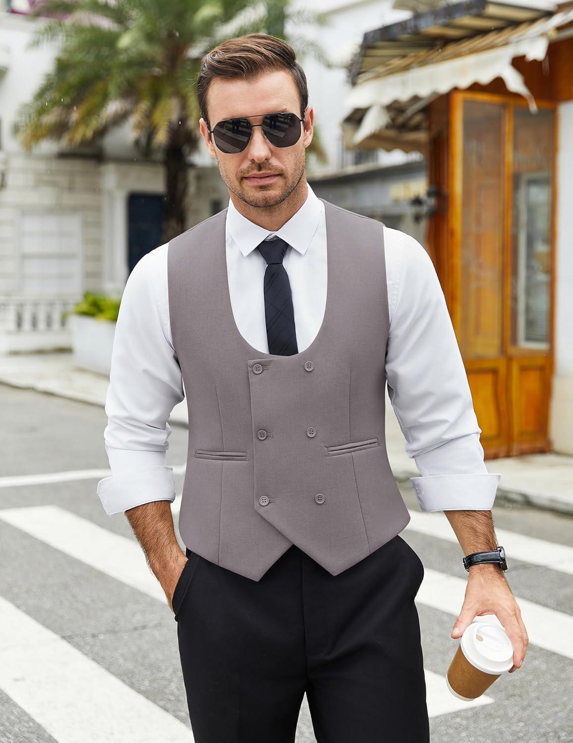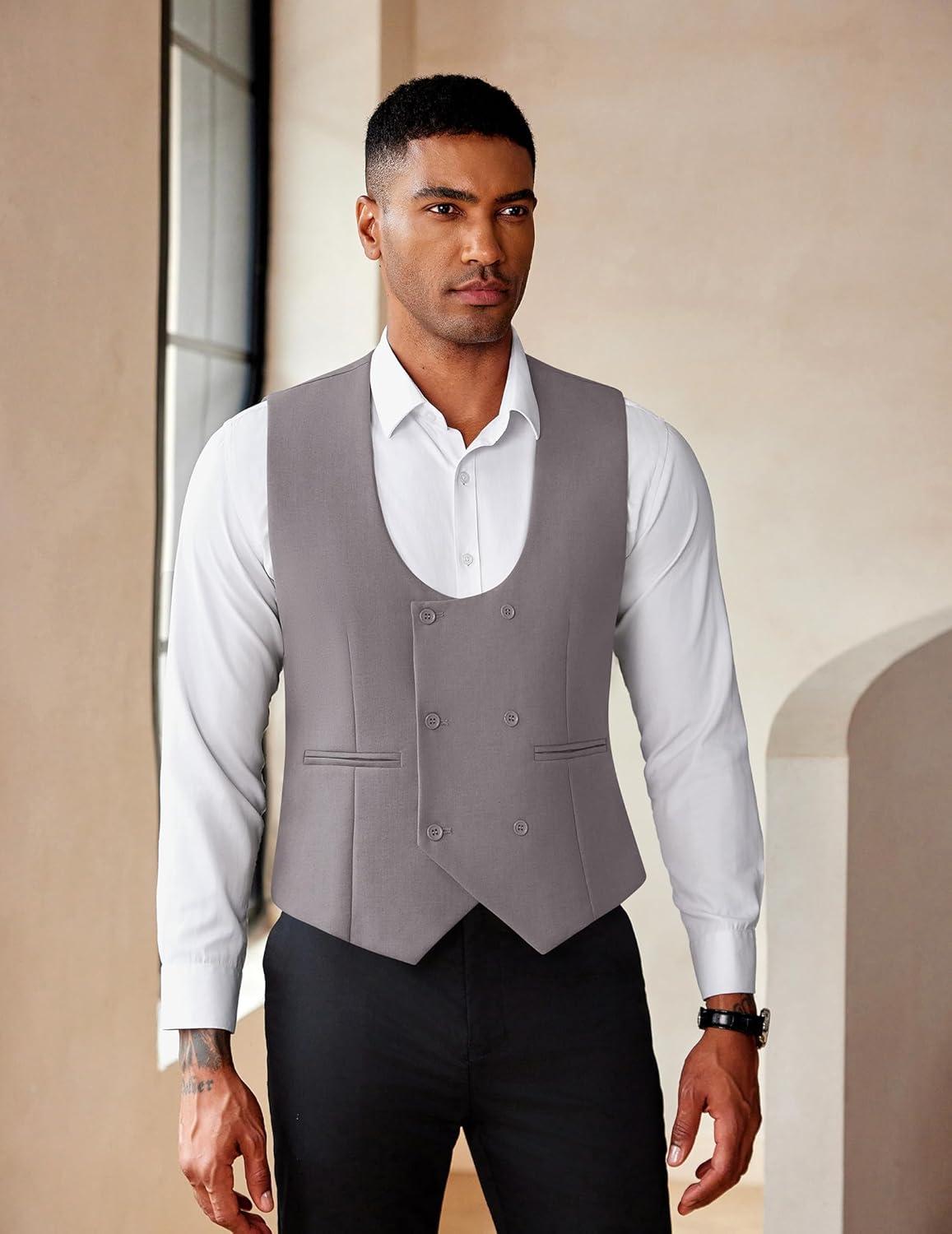 COOFANDY Men's Suit Vest Slim Fit Double Breasted Dress Vest Casual Business Formal Waistcoat(Light Grey)