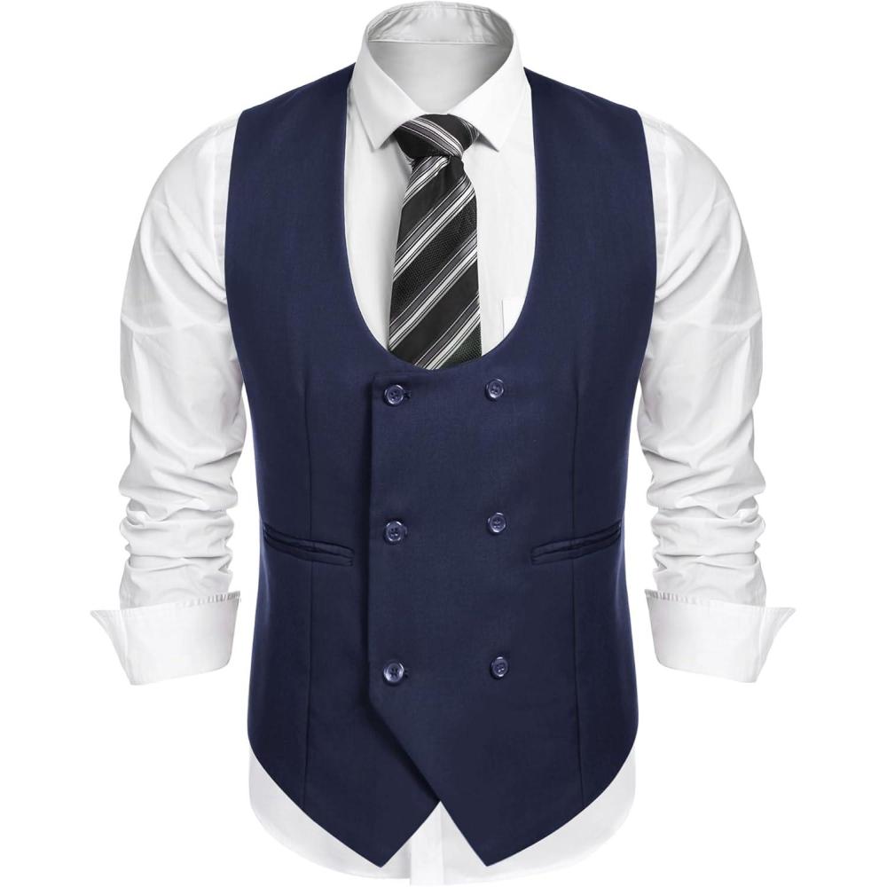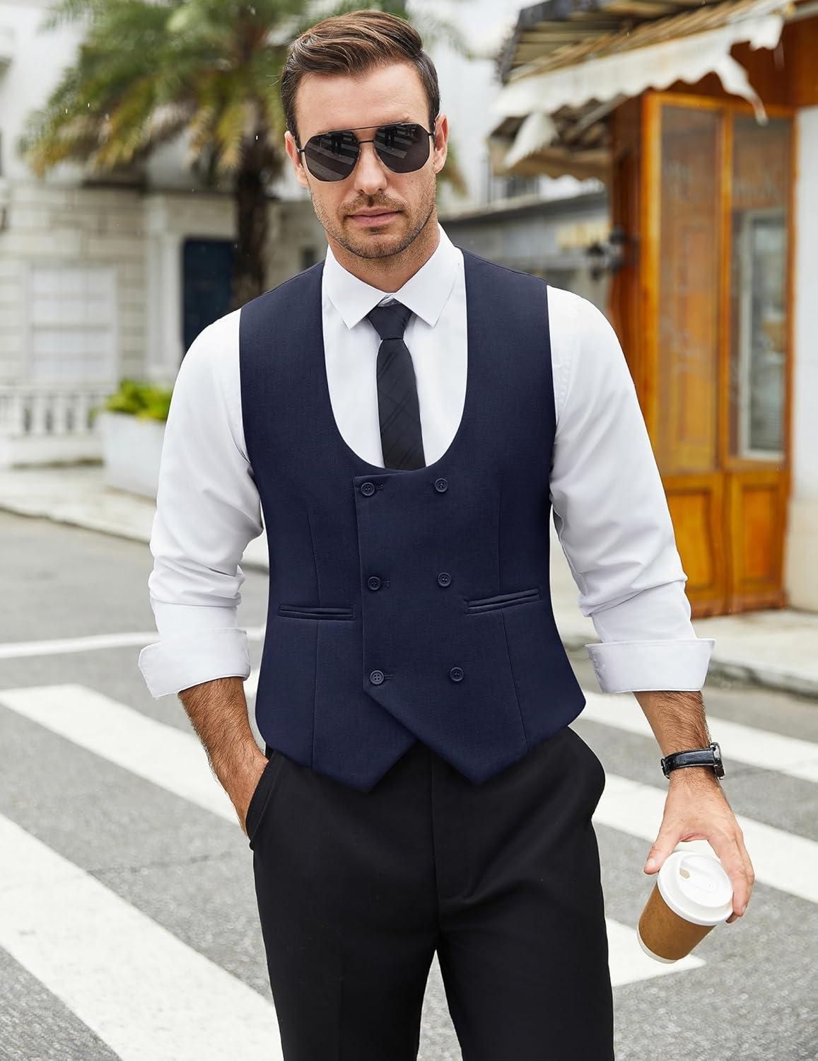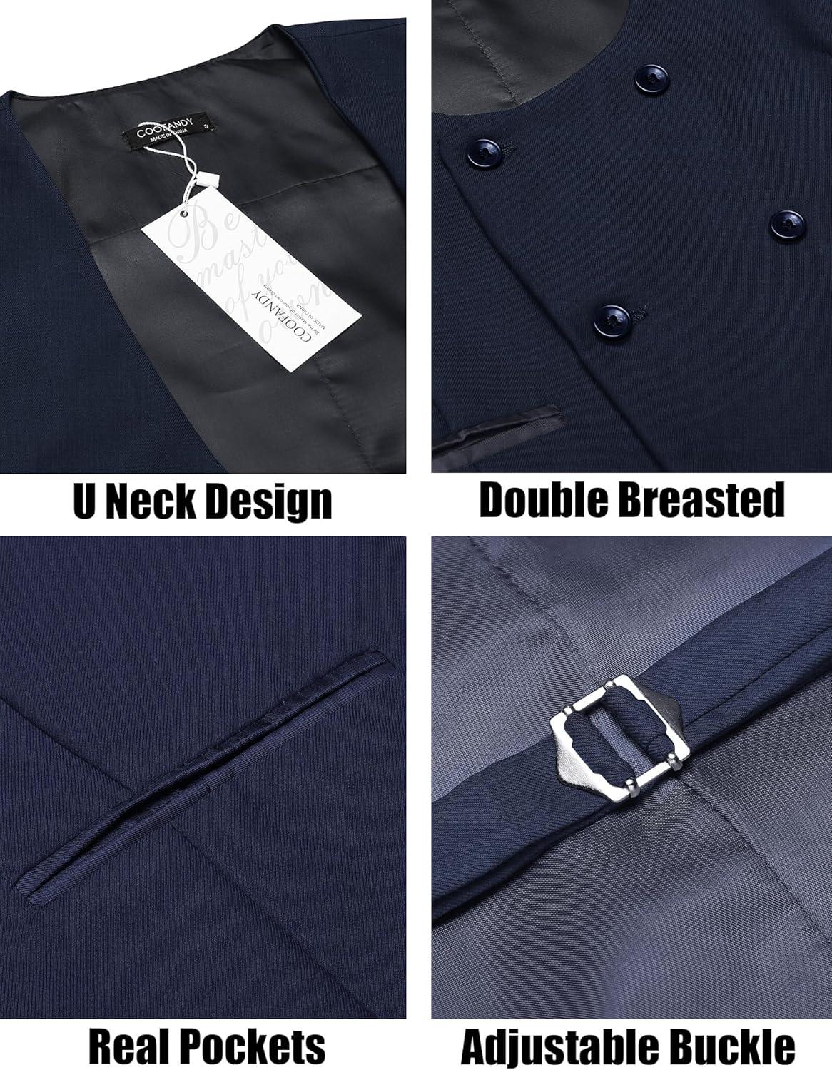 COOFANDY Men's Suit Vest Slim Fit Double Breasted Dress Vest Casual Business Formal Waistcoat(Navy Blue)