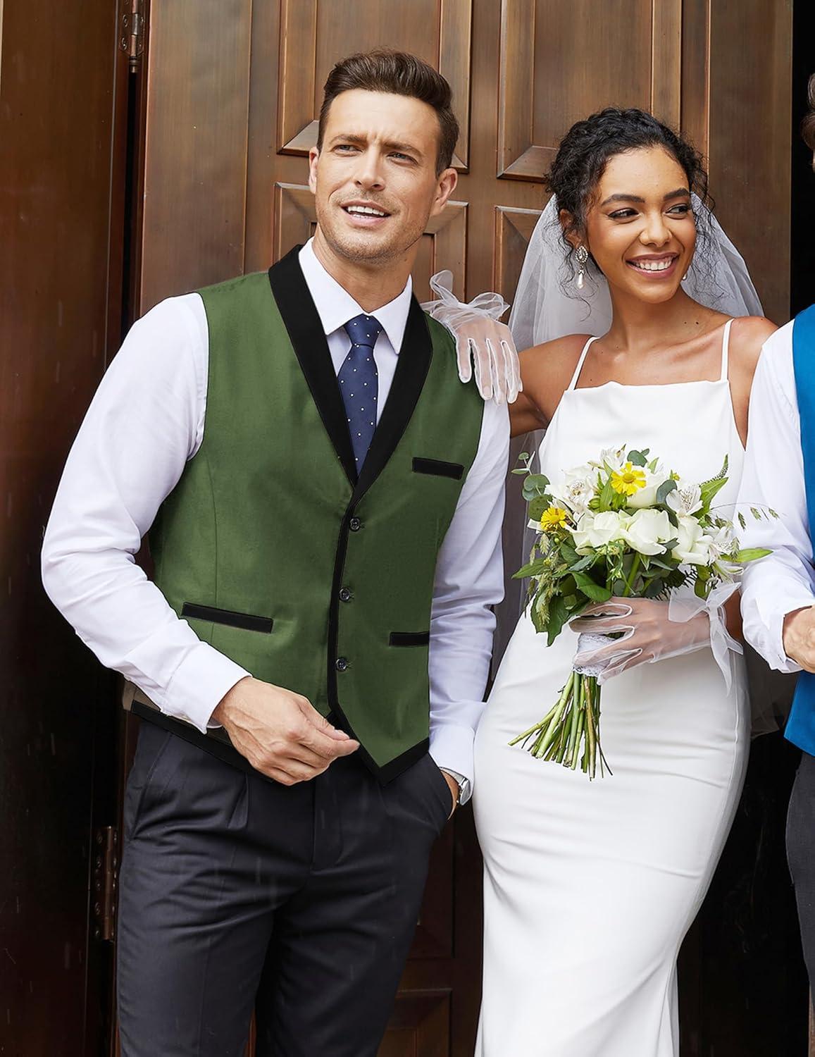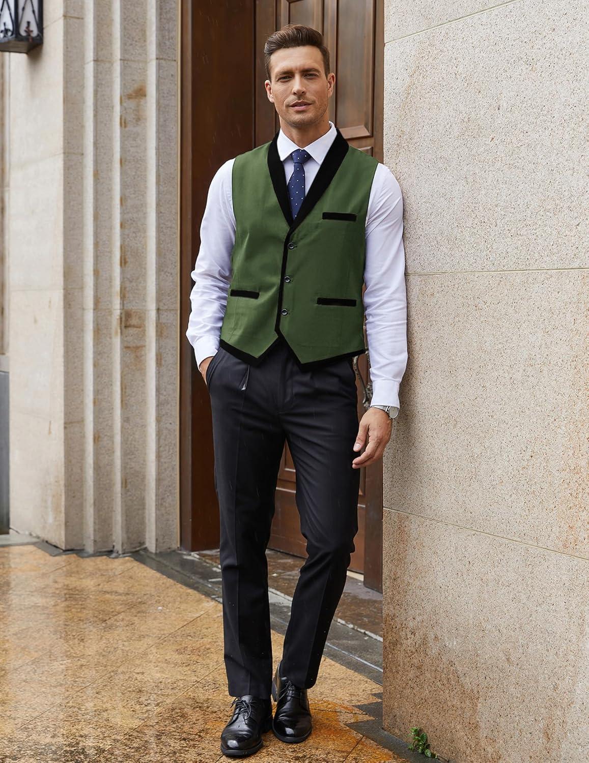 COOFANDY Men's Suit Vest Slim Fit Formal Business Dress Vest Casual Wedding Waistcoat(Army Green)