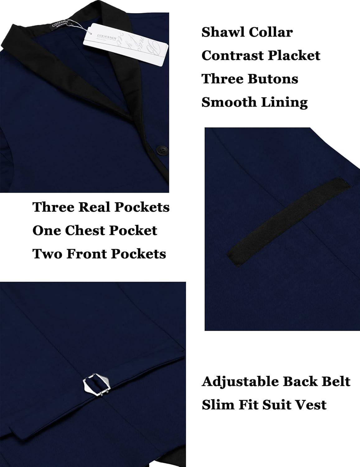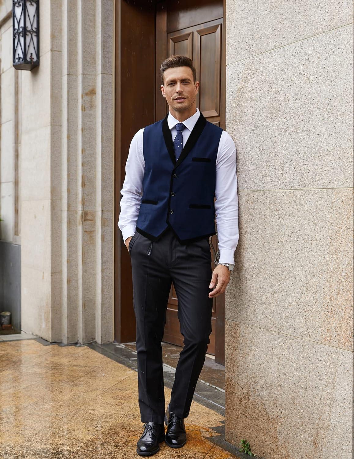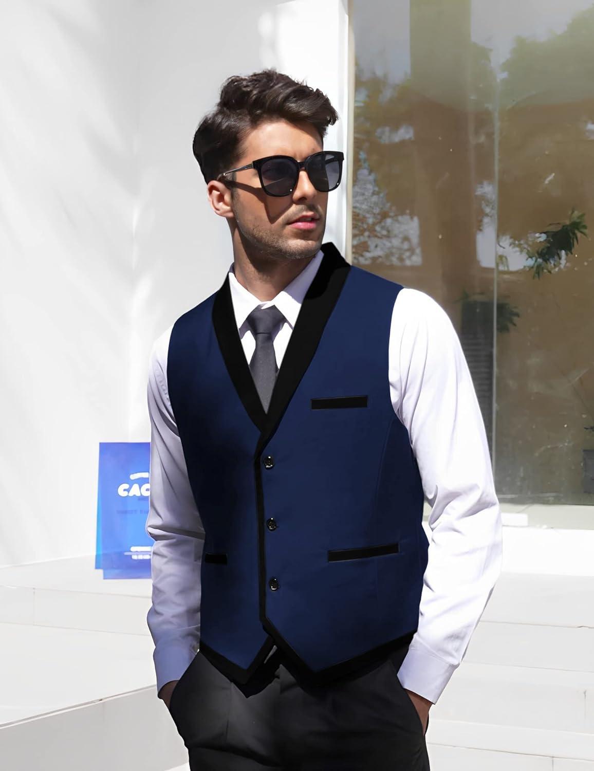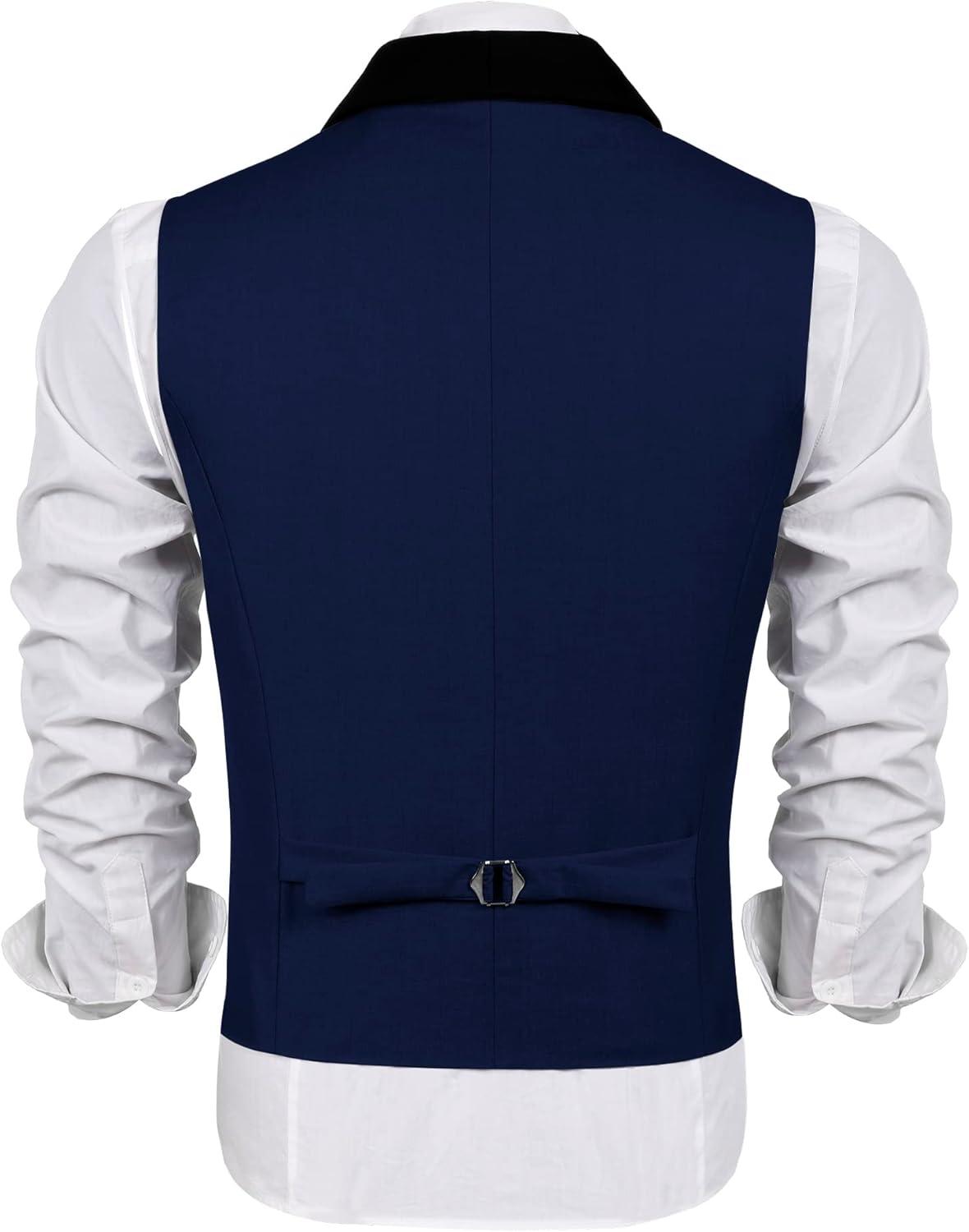 COOFANDY Men's Suit Vest Slim Fit Formal Business Dress Vest Casual Wedding Waistcoat(Blue-black)