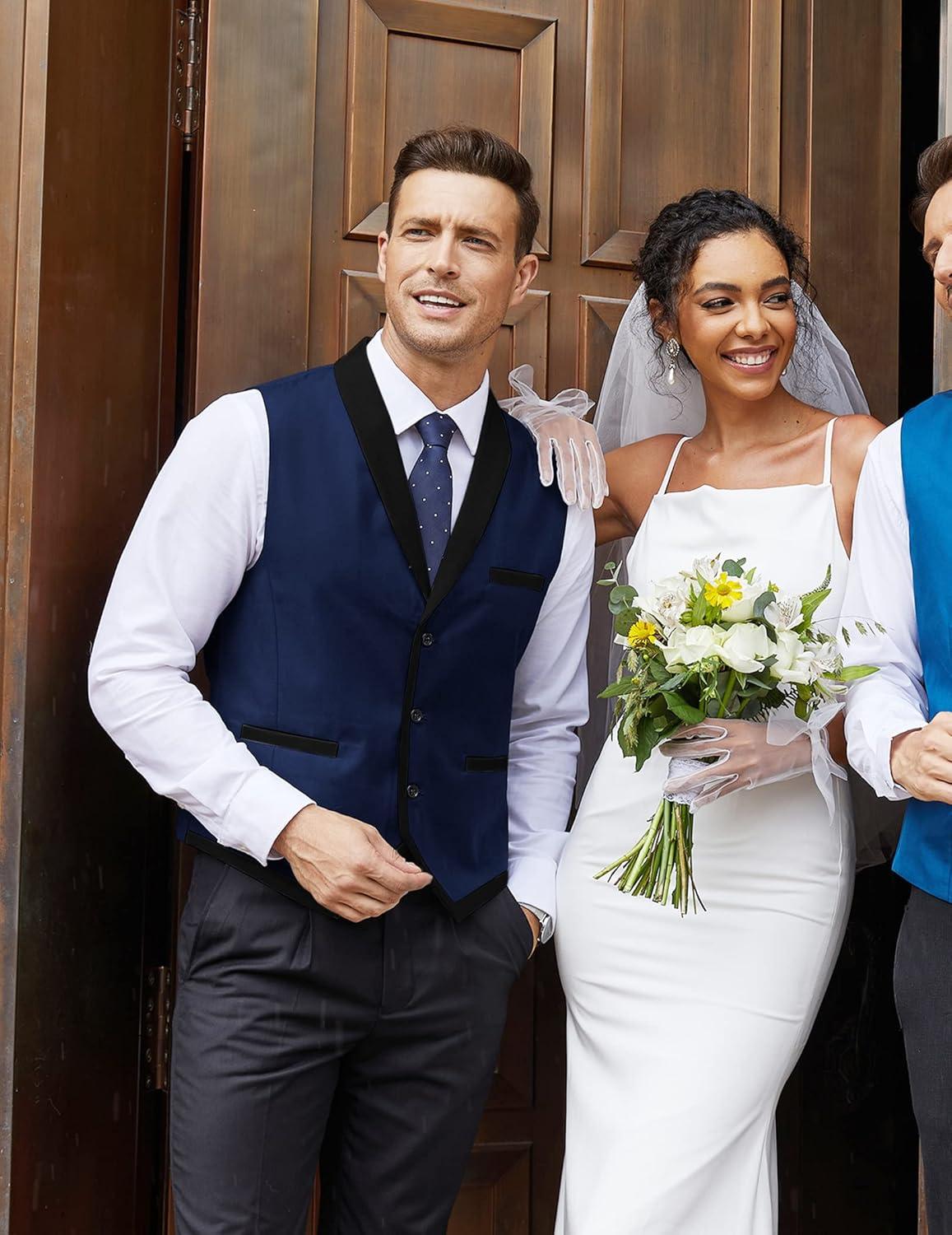COOFANDY Men’s Suit Vest Slim Fit Formal Business Dress Vest Casual Wedding Waistcoat(Blue-black)