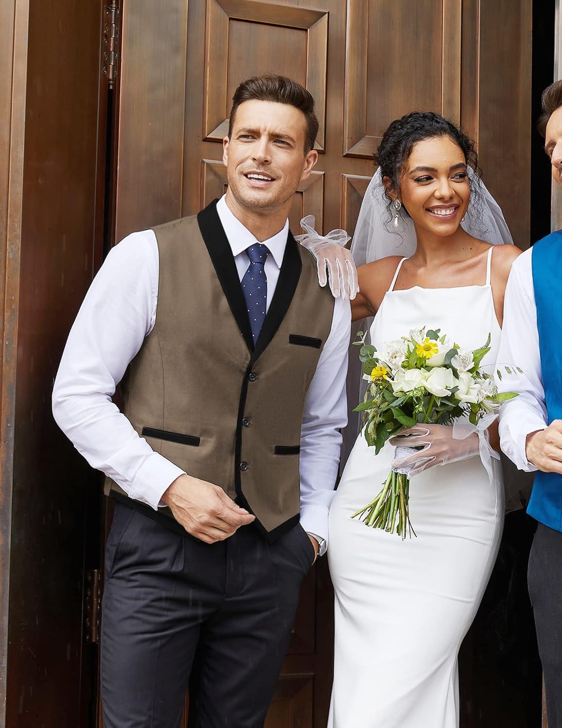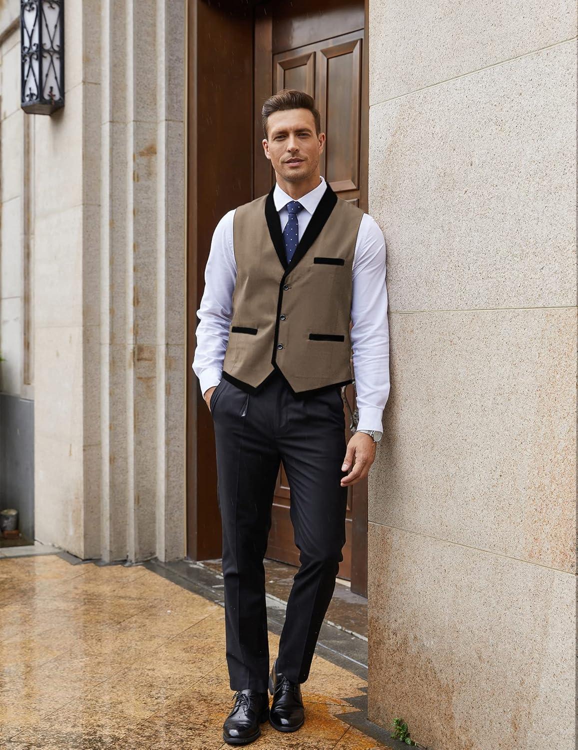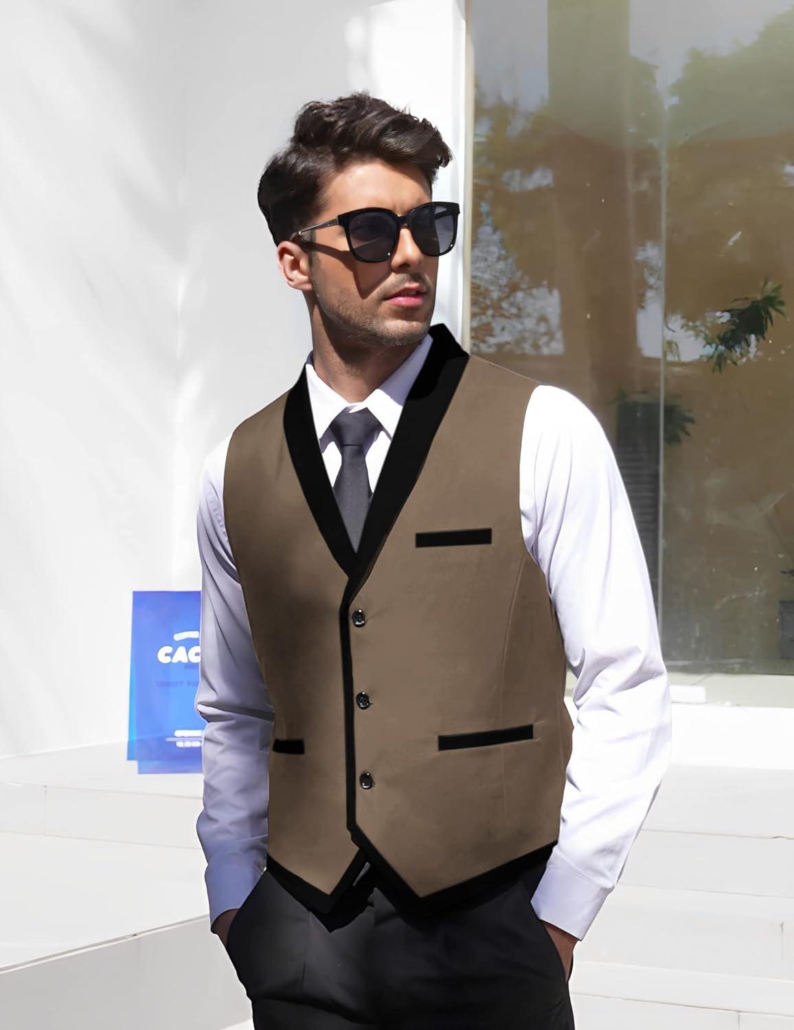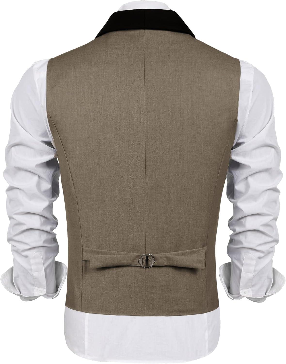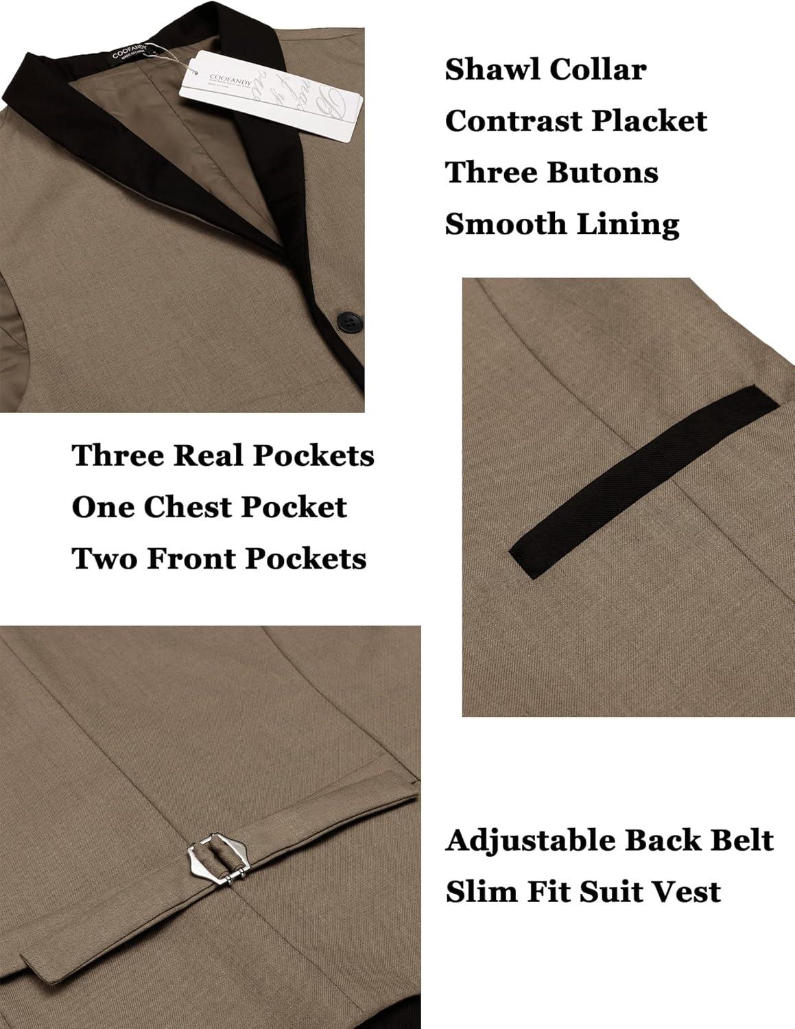COOFANDY Men’s Suit Vest Slim Fit Formal Business Dress Vest Casual Wedding Waistcoat(Khaki)
